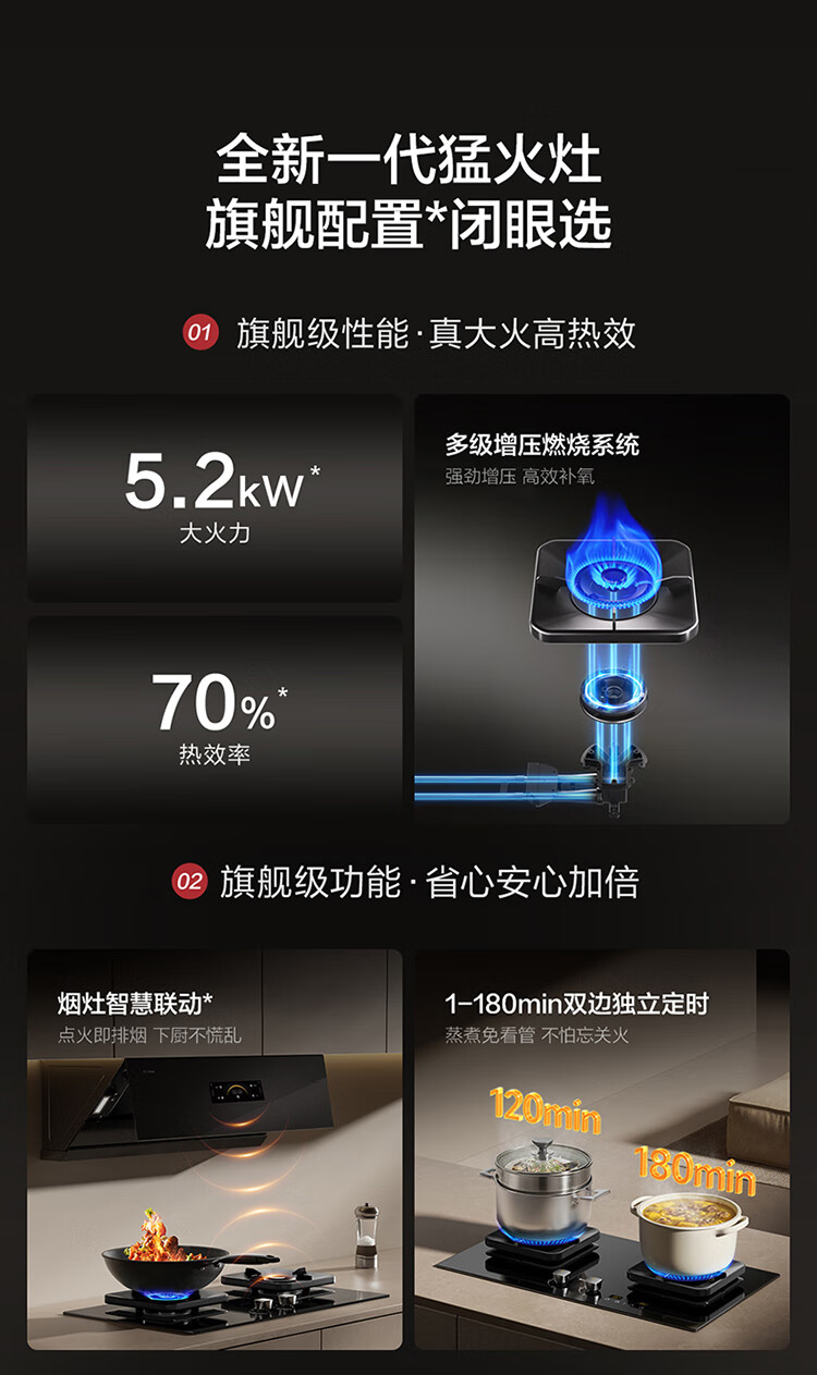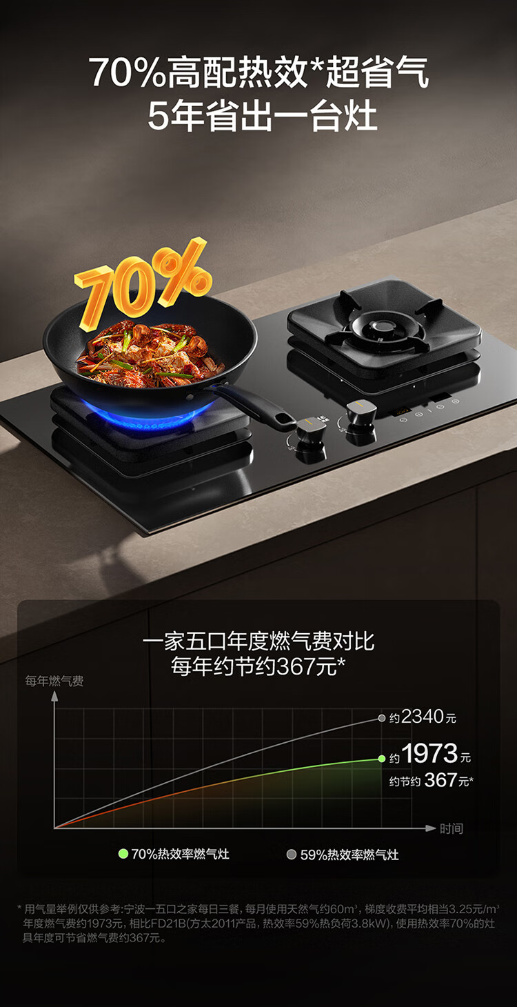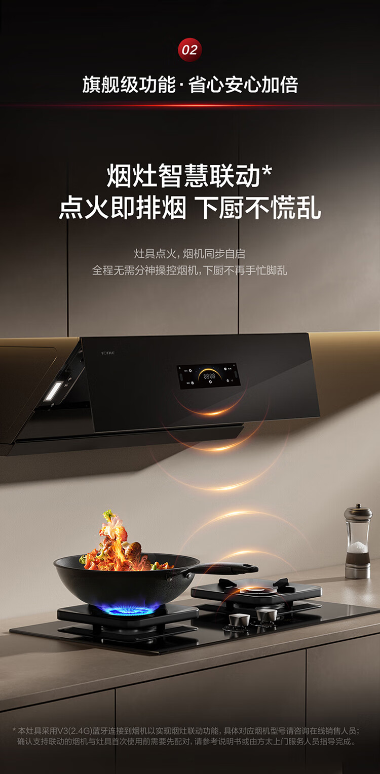 FOTILE thermal efficiency upgrade 70% gas stove natural gas 5.2kW* fierce fire timed gas stove smoke stove linkage TF37B