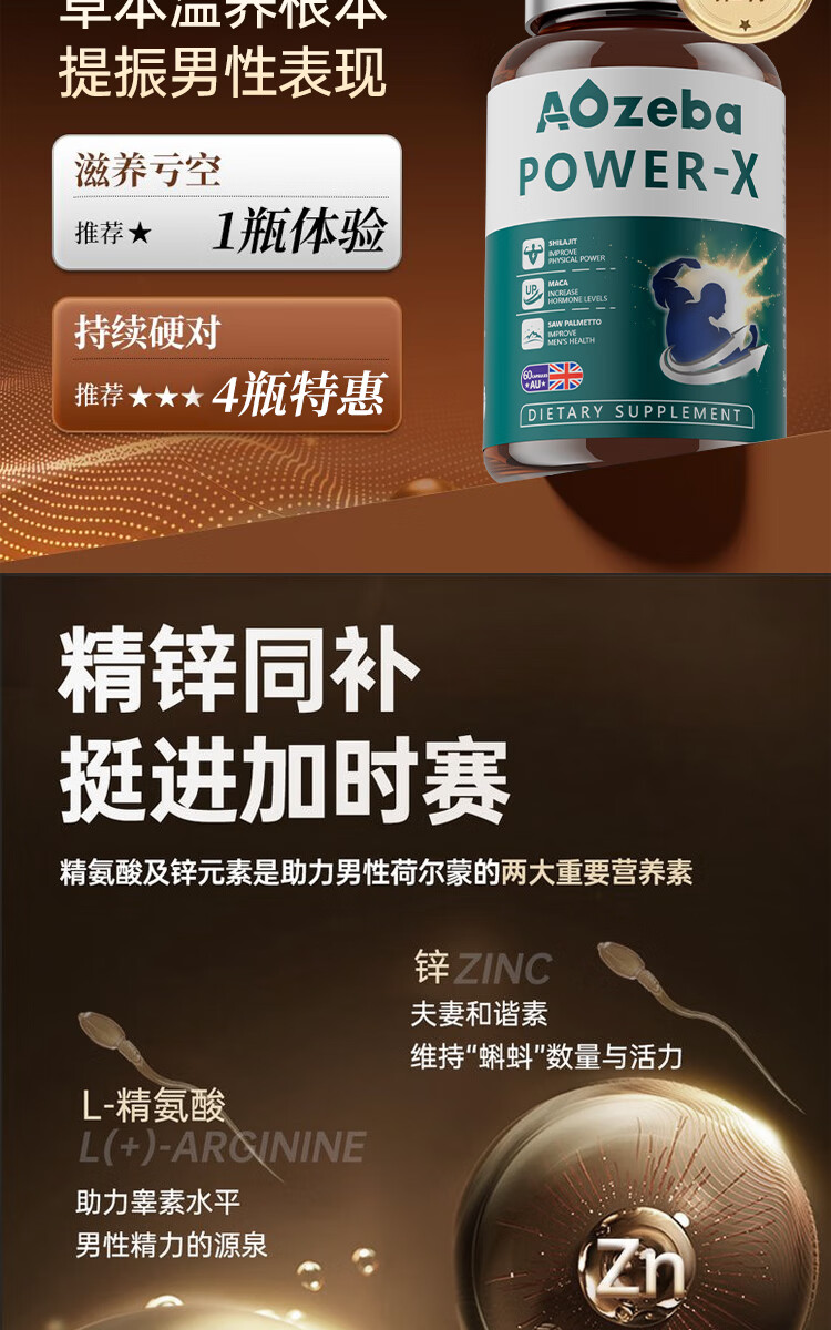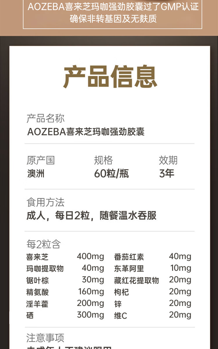 Aozeba imported high-concentration maca, arginine, epimedium and epimedium for men to strengthen yang and nourish kidneys.