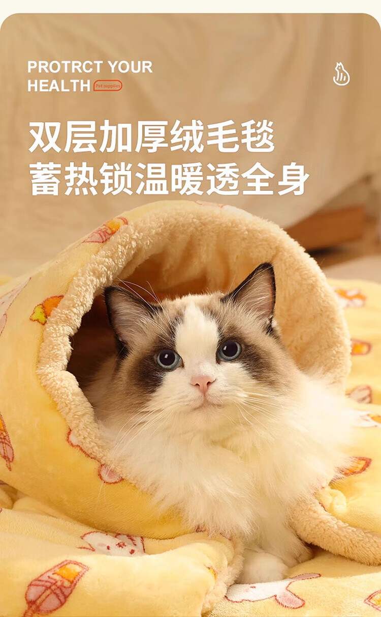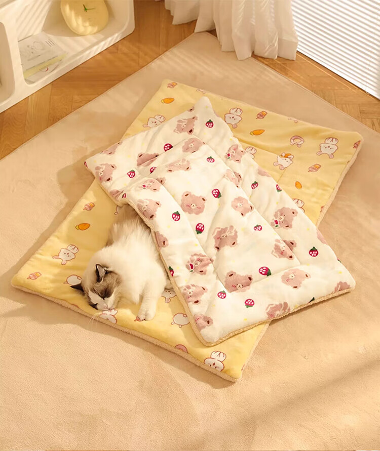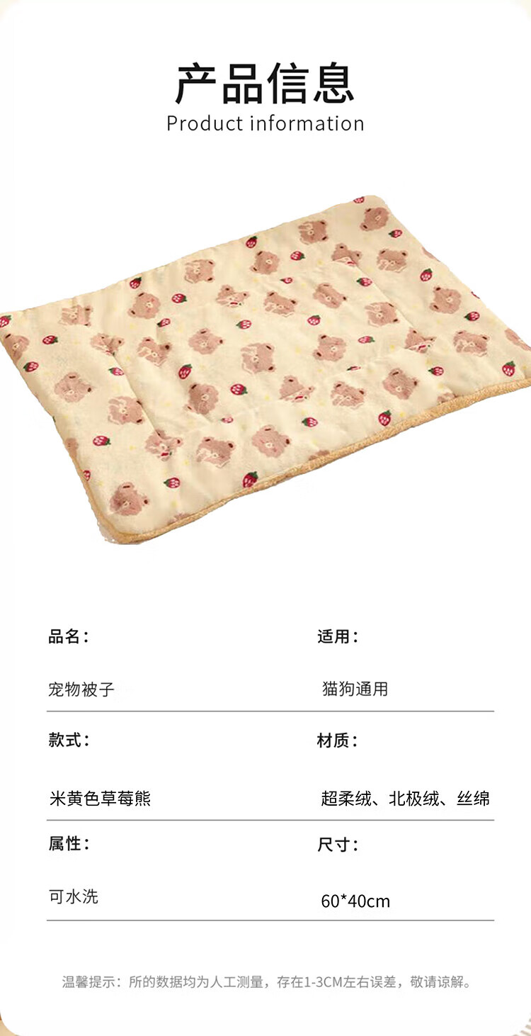 Guangdola Cat Mat Dog Mat 60*40cm Strawberry Little Bear Pet Cat Nest Sleeping Mat Autumn and Winter Cat Arctic Velvet Cotton Blanket