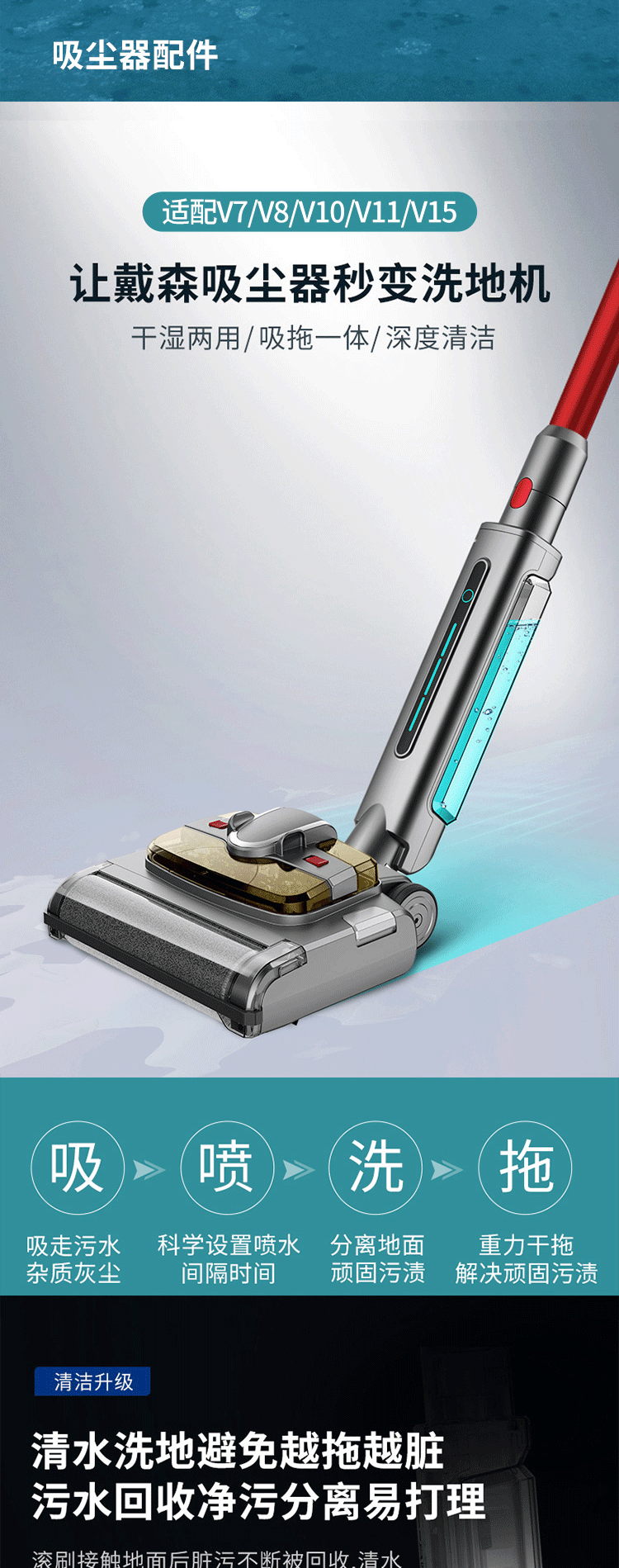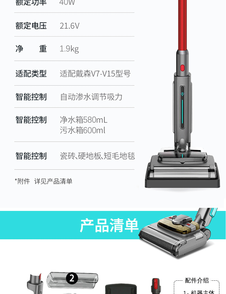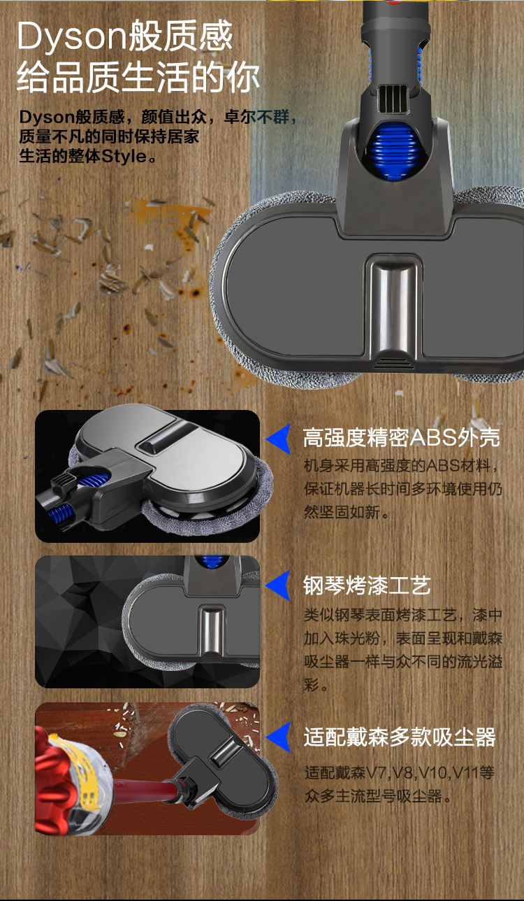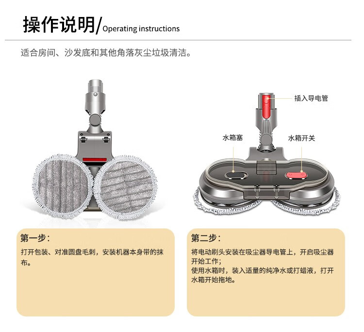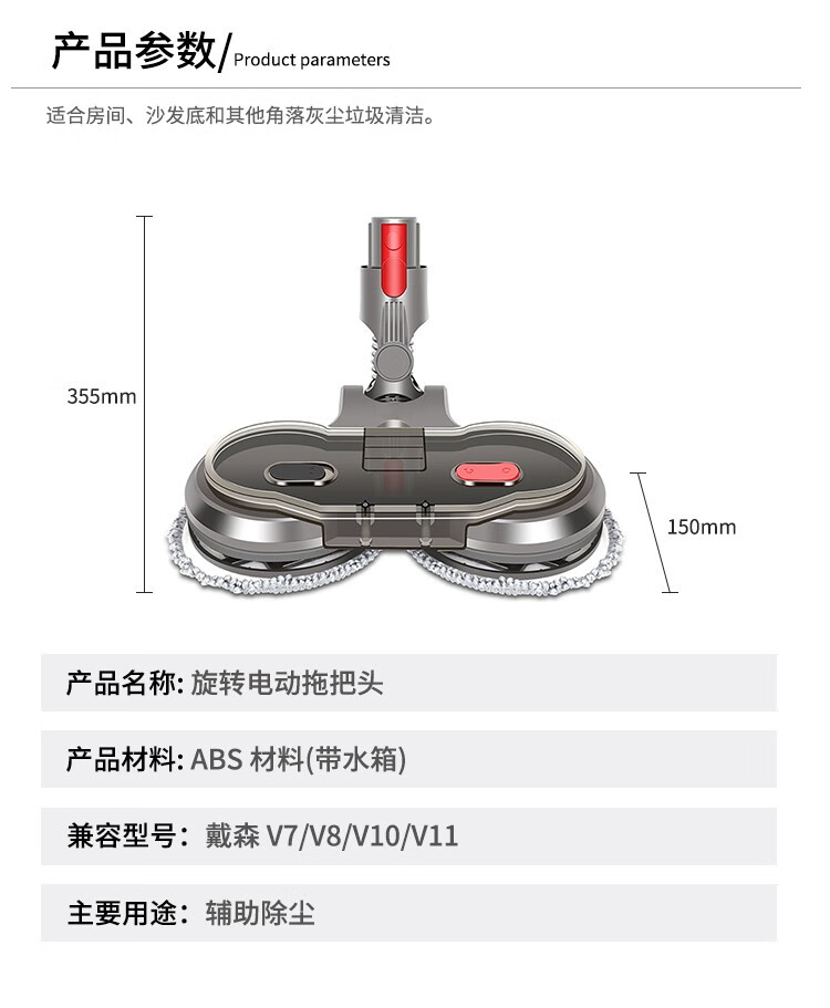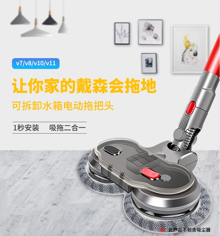 Langshi suitable for Dyson wireless vacuum cleaner electric mop head dry and wet cleaning suction and mopping integrated floor scrubber head V6V7V8V10V11V12 suction head accessories V7/8/10/11 X001 mop head + water tank