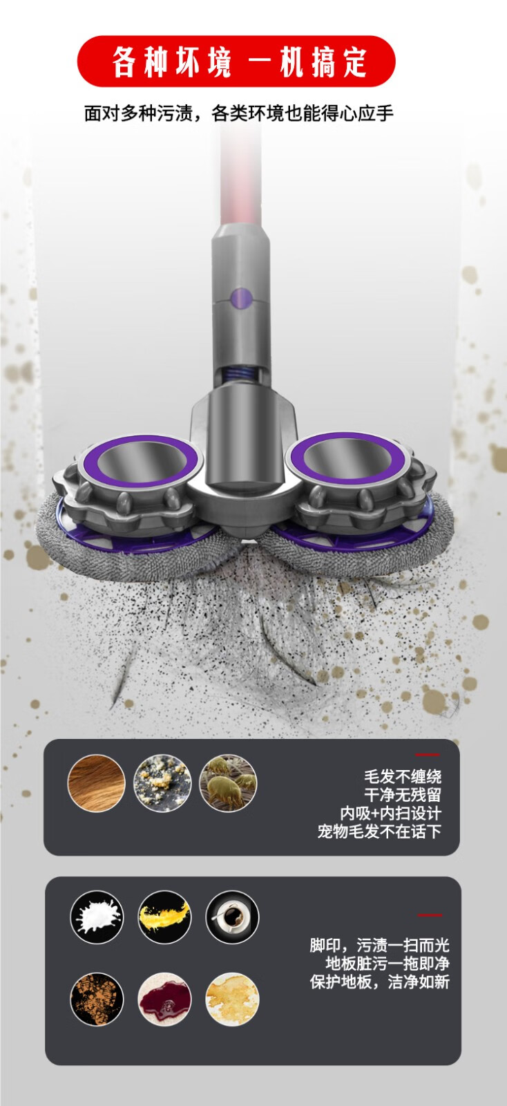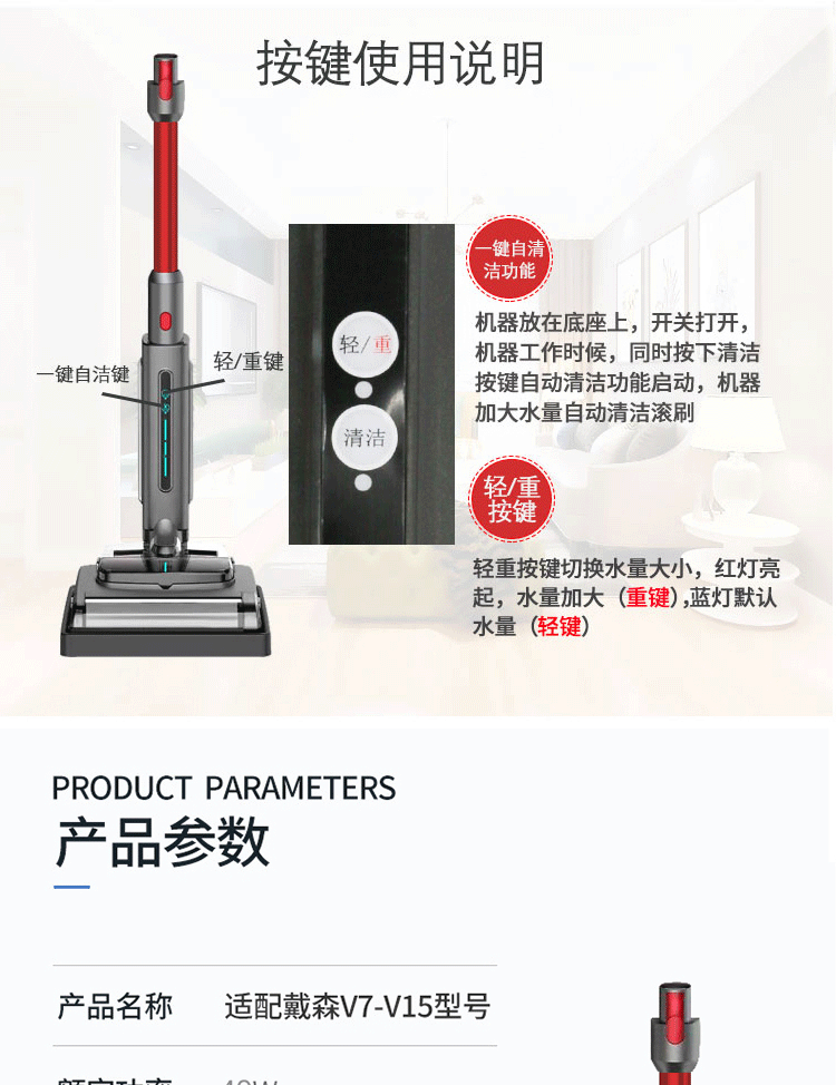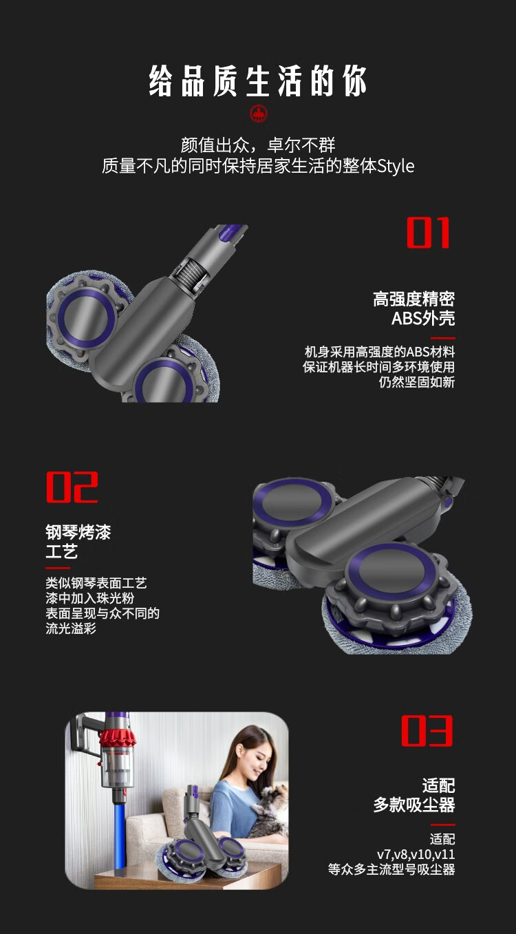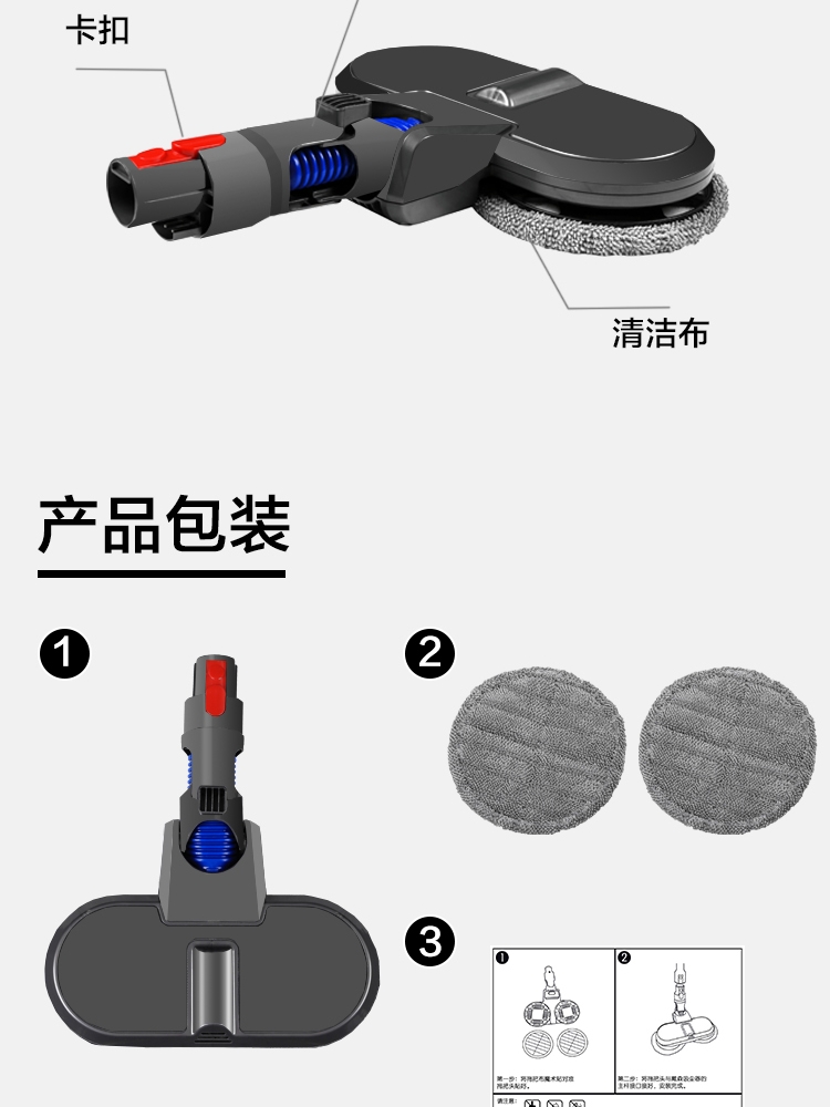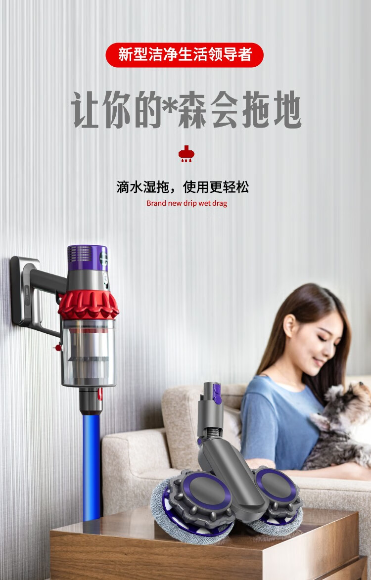 Langshi suitable for Dyson wireless vacuum cleaner electric mop head dry and wet cleaning suction and mopping integrated floor scrubber head V6V7V8V10V11V12 suction head accessories V7/8/10/11 X001 mop head + water tank
