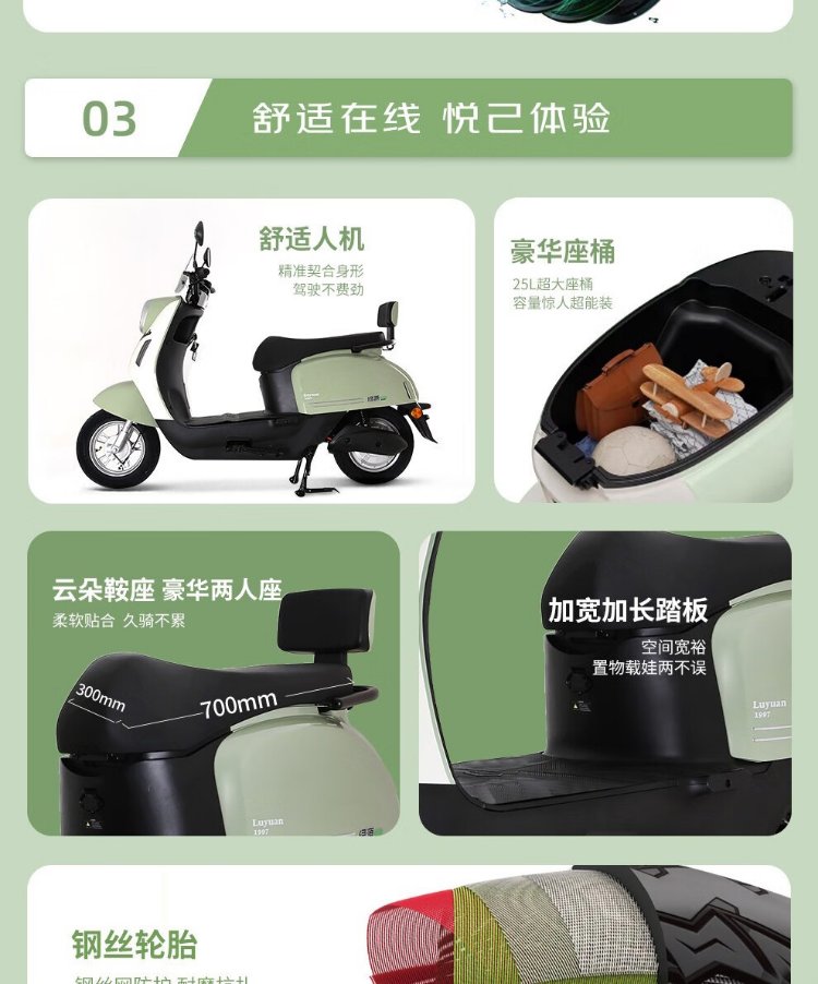 Luyuan electric motorcycle M7UMODA10, 74km range - 60V20AH - 5 lead-acid batteries - 1000W electric battery car Jingdong self-operated cream white tail box version