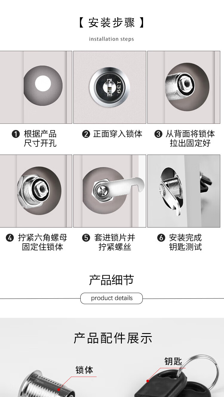 Hesdig HY-391 locker lock, drawer lock, metal file cabinet lock, mailbox turn tongue lock, electric box cabinet door lock, furniture locker lock core, 16mm single opening type (10 pieces), Beijing warehouse flash delivery