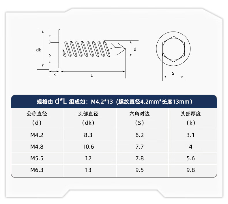 Fengji 304 stainless steel external hexagonal drill tail screw 316 self-tapping self-drilling dovetail nail 3.9 4.2 4.8M5.5 6.3 M4.2*19 50 pcs 304