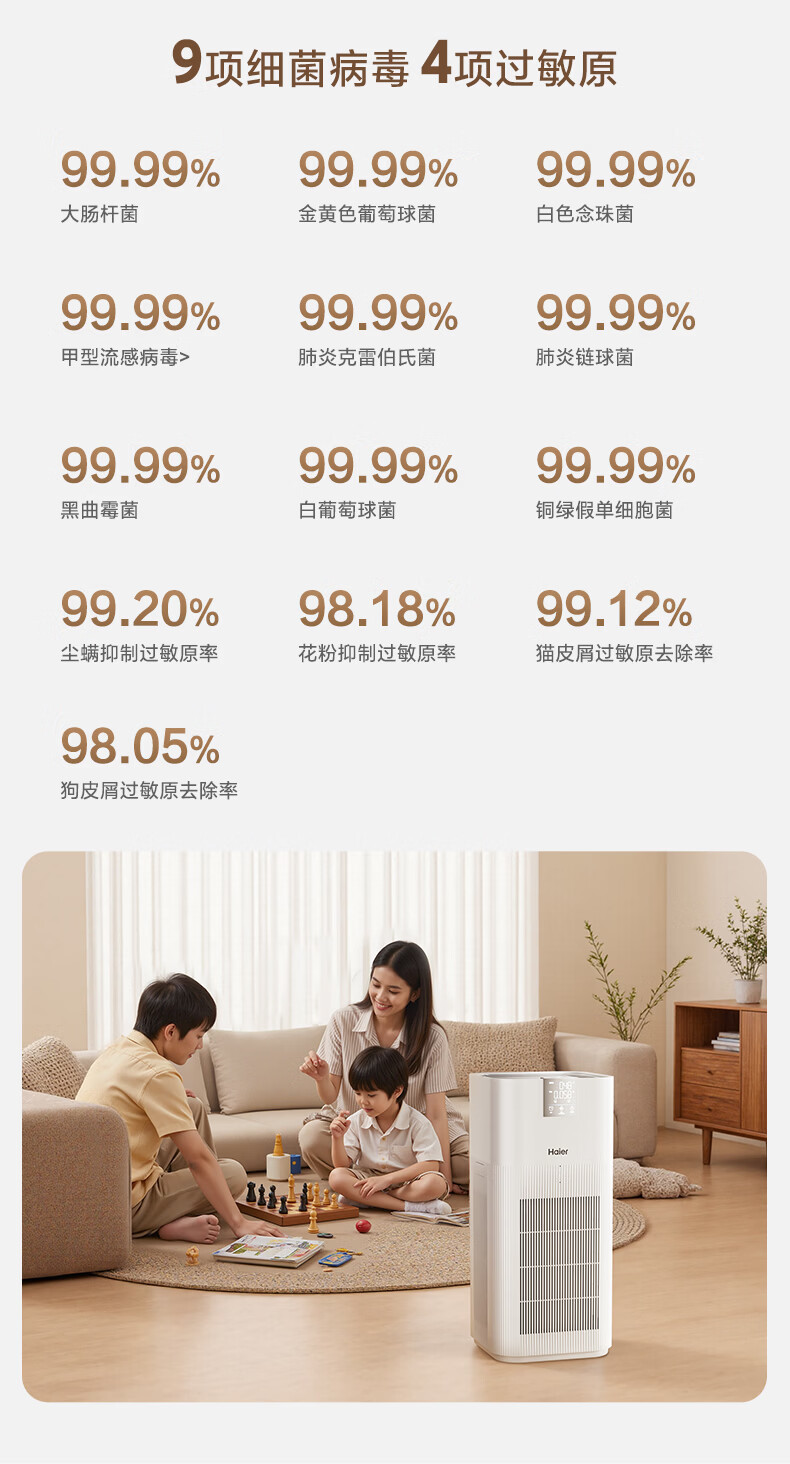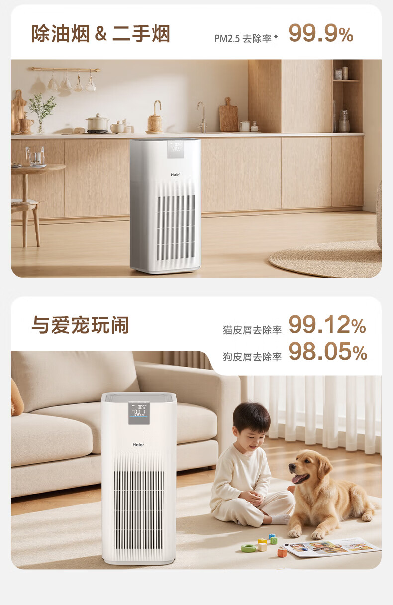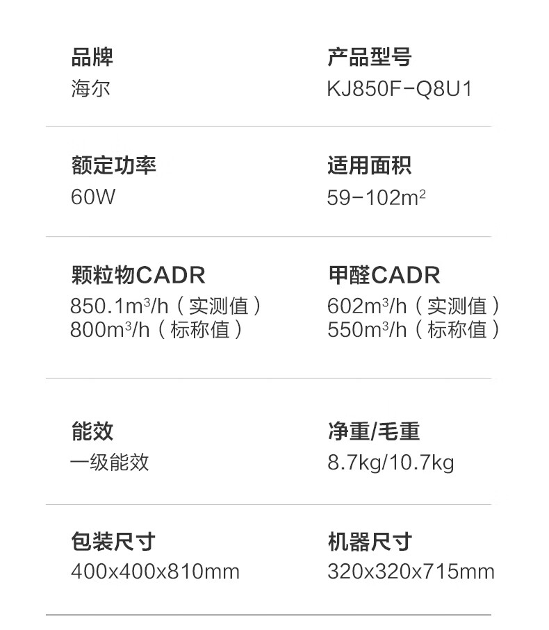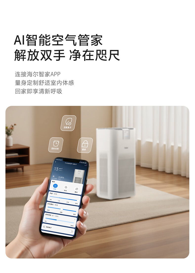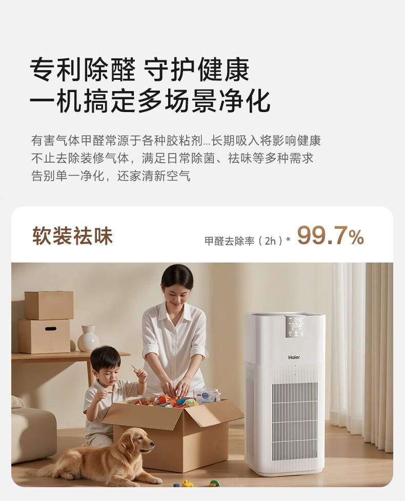 Haier's flagship hot model air purifier removes formaldehyde, removes influenza, removes allergens, prevents haze and dust, maternal and infant certification, removes bacteria, removes pet odors, and second-hand smoke Baiqiao KJ850F