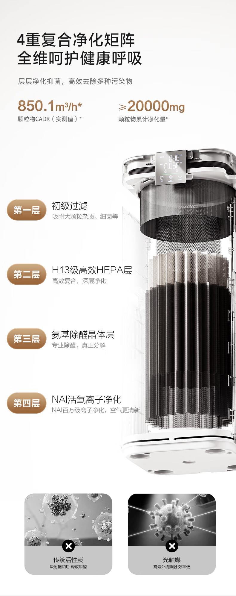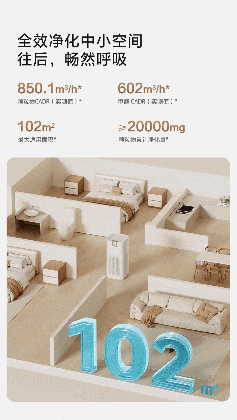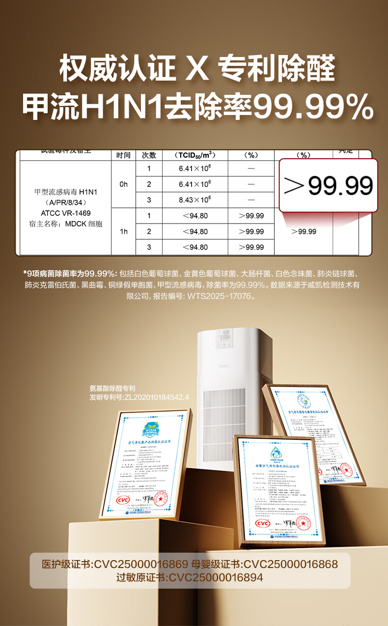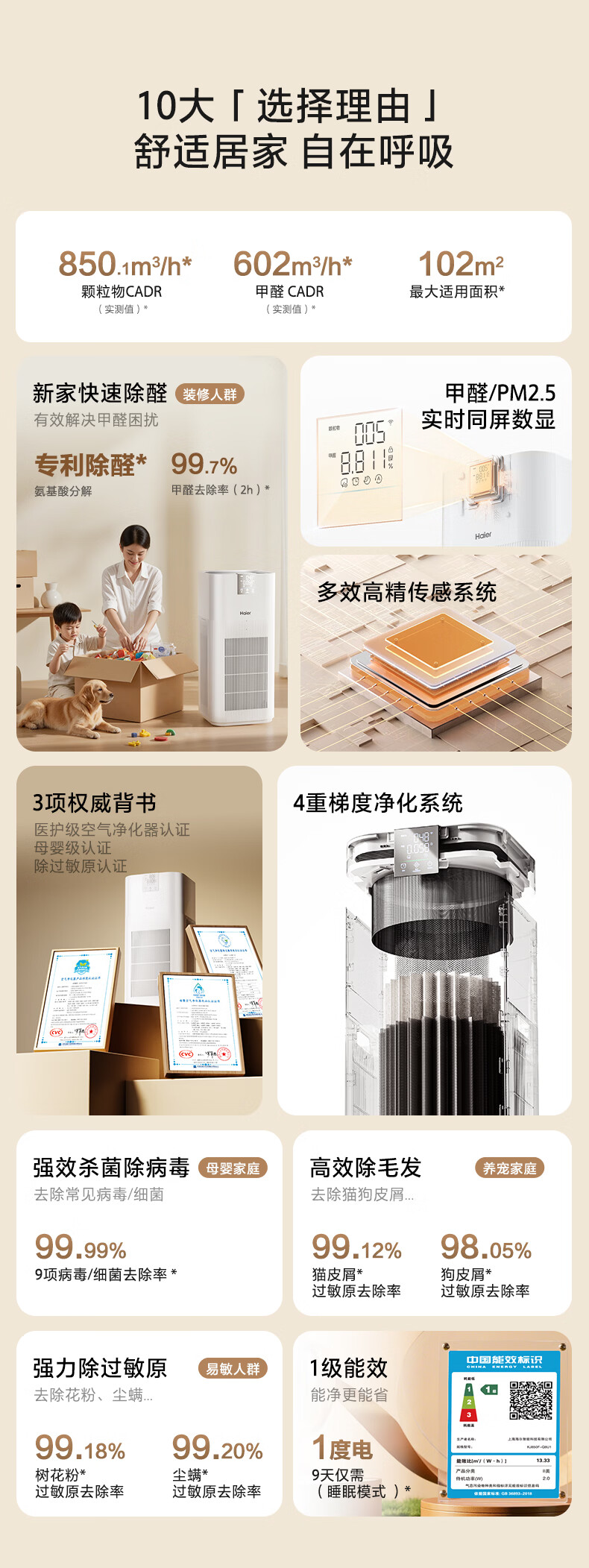 Haier's flagship hot model air purifier removes formaldehyde, removes influenza, removes allergens, prevents haze and dust, maternal and infant certification, removes bacteria, removes pet odors, and second-hand smoke Baiqiao KJ850F