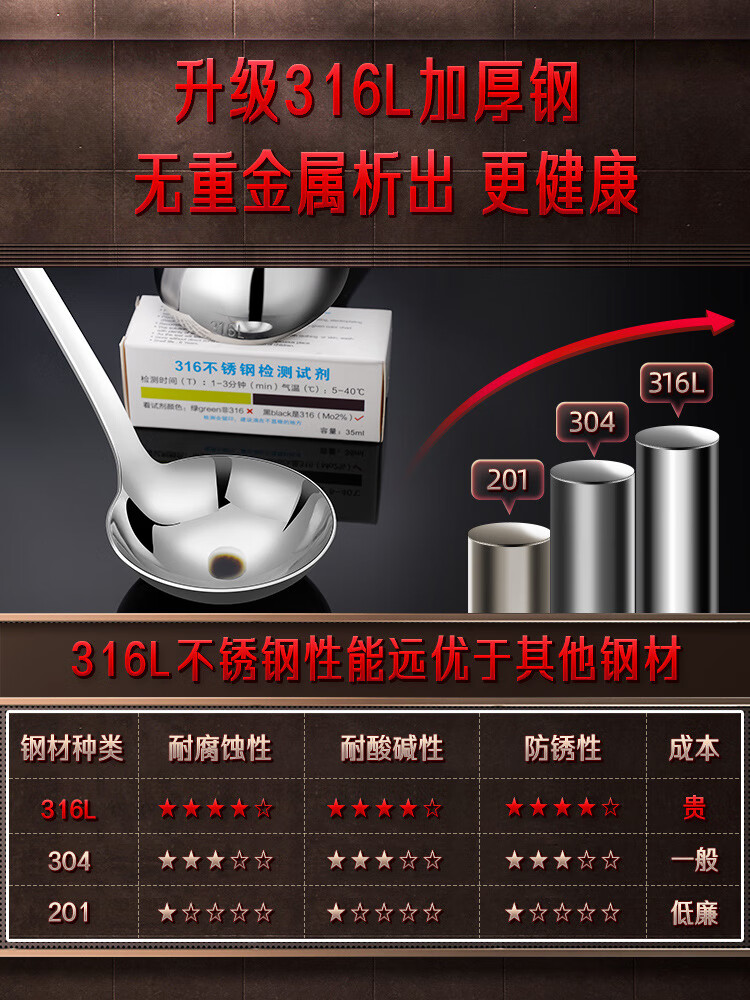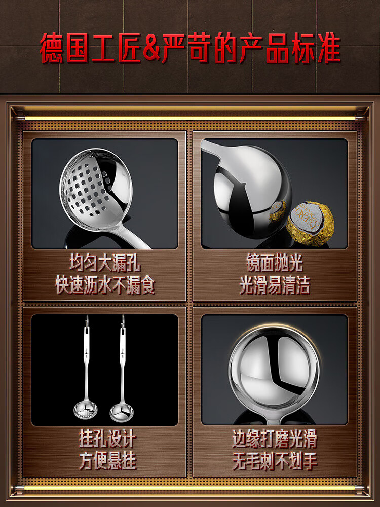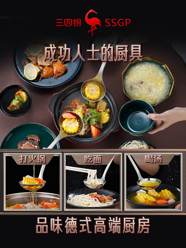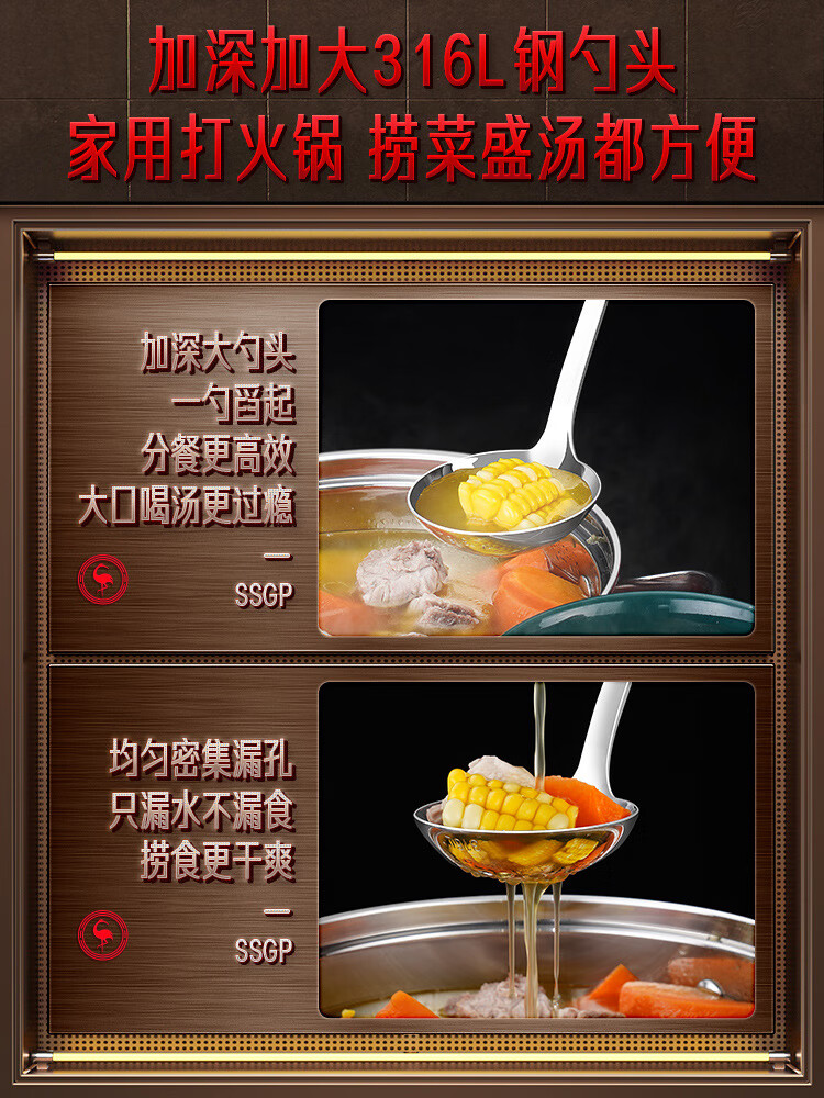 Sansi Steel (SSGP) 316L stainless steel colander, hot pot spoon, filter spoon, noodles, dumplings, drain spoon hole, pepper colander, one set
