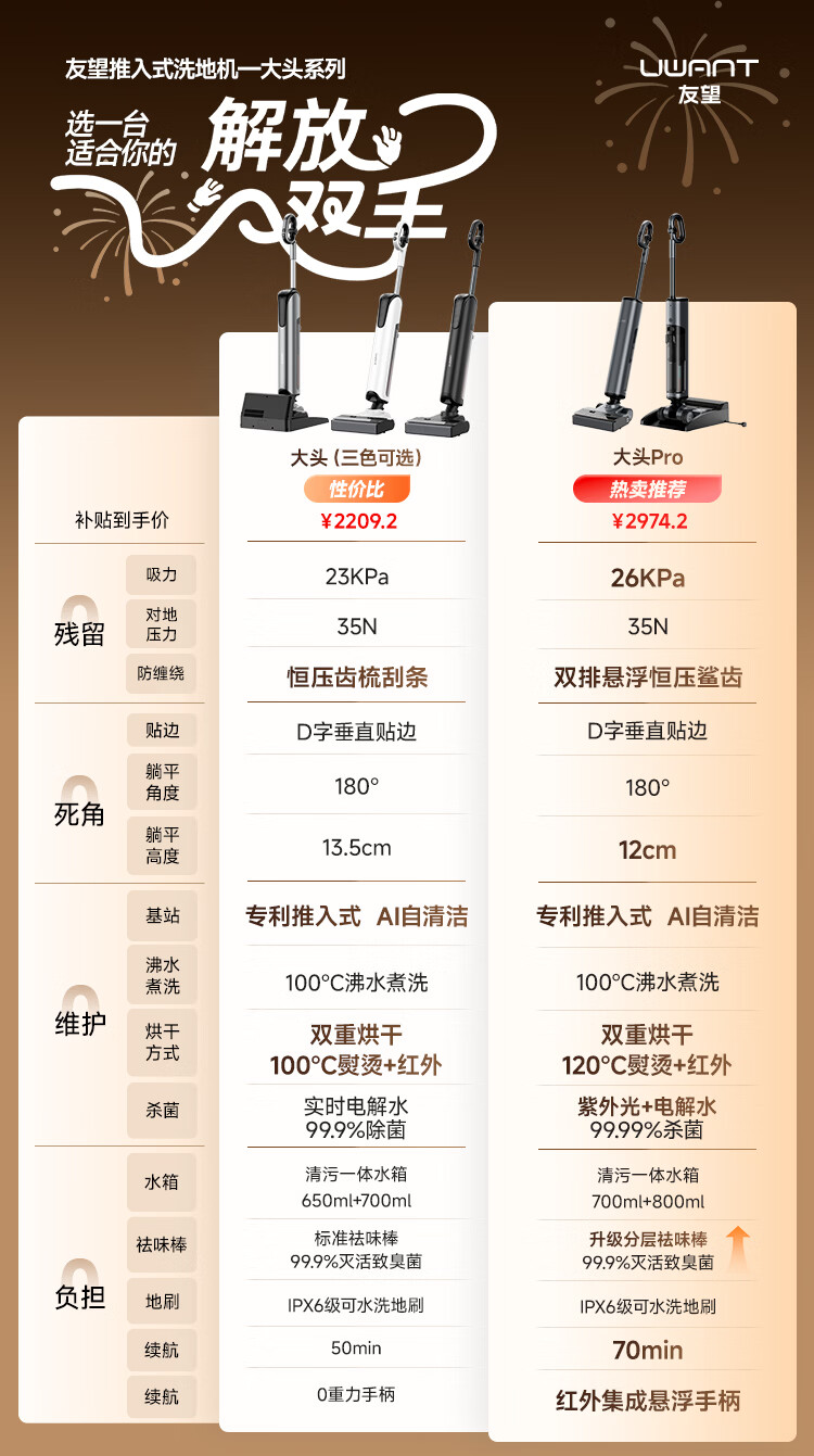 UWANT's new floor washing machine Big Head Pro is launched, the first D-shaped roller brush, washing, mopping and suction all-in-one automatic cleaning and mopping machine for household handheld electric mops