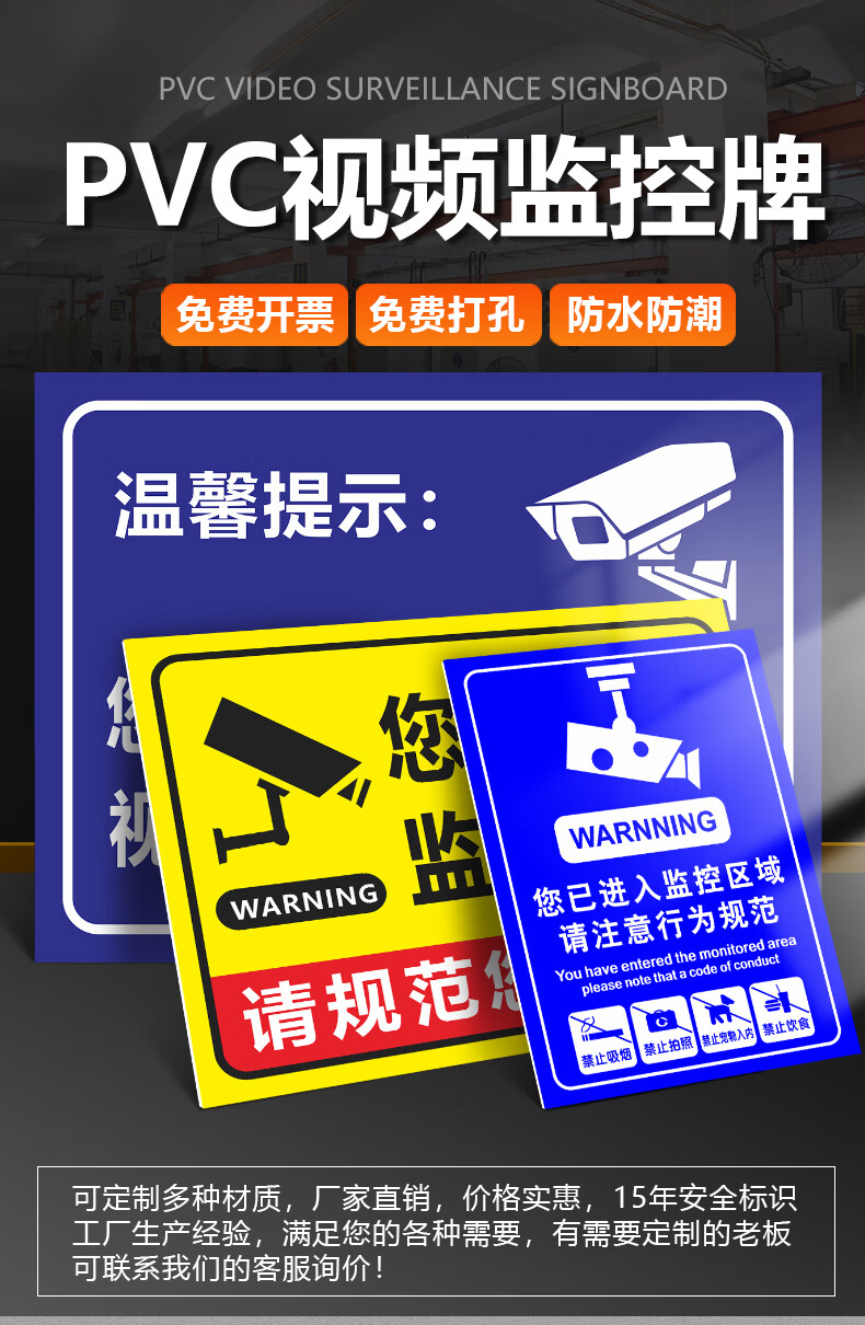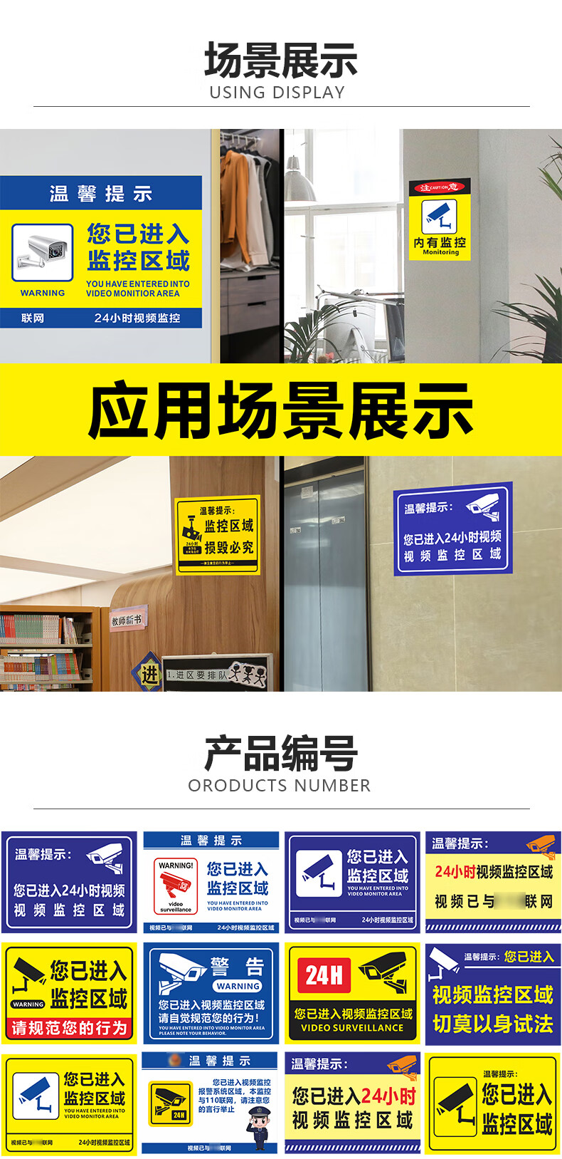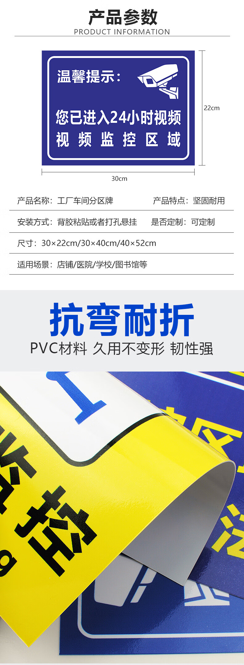 BELIK You have entered the 24-hour video surveillance area. The 22x30cm PVC board warm reminder sign contains surveillance warning signs and safety warning signs. JSBS26