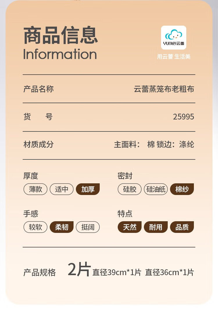 Yunlei old coarse cloth steamer cloth gauze steamed buns household thickened non-stick pot steamer cloth 2 pieces