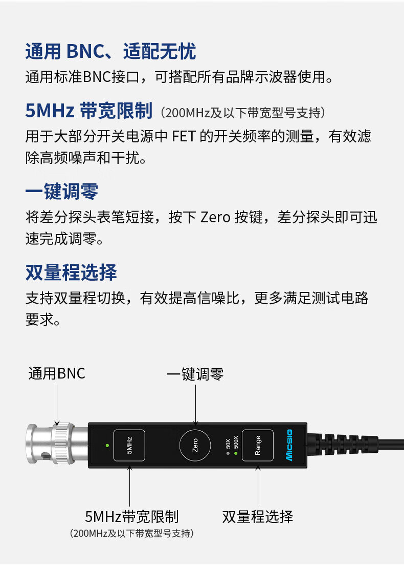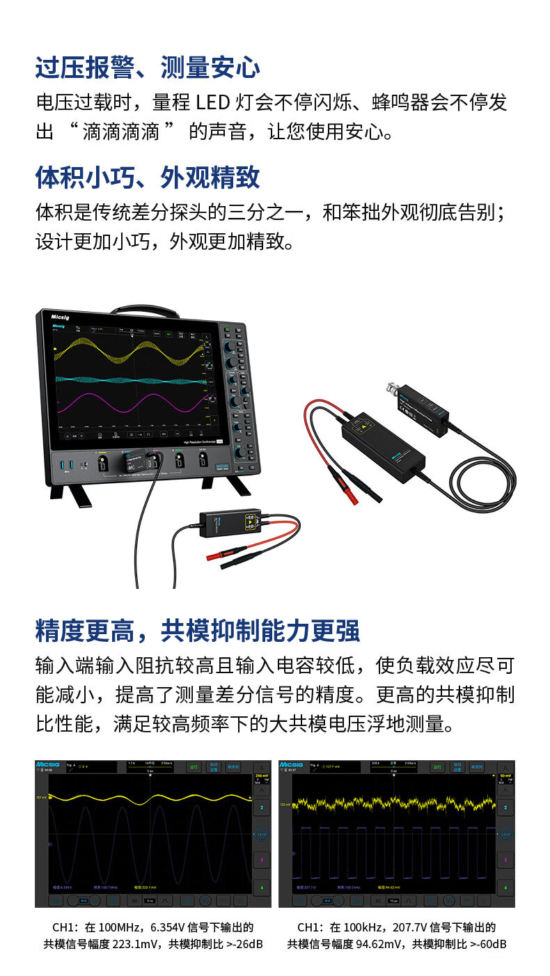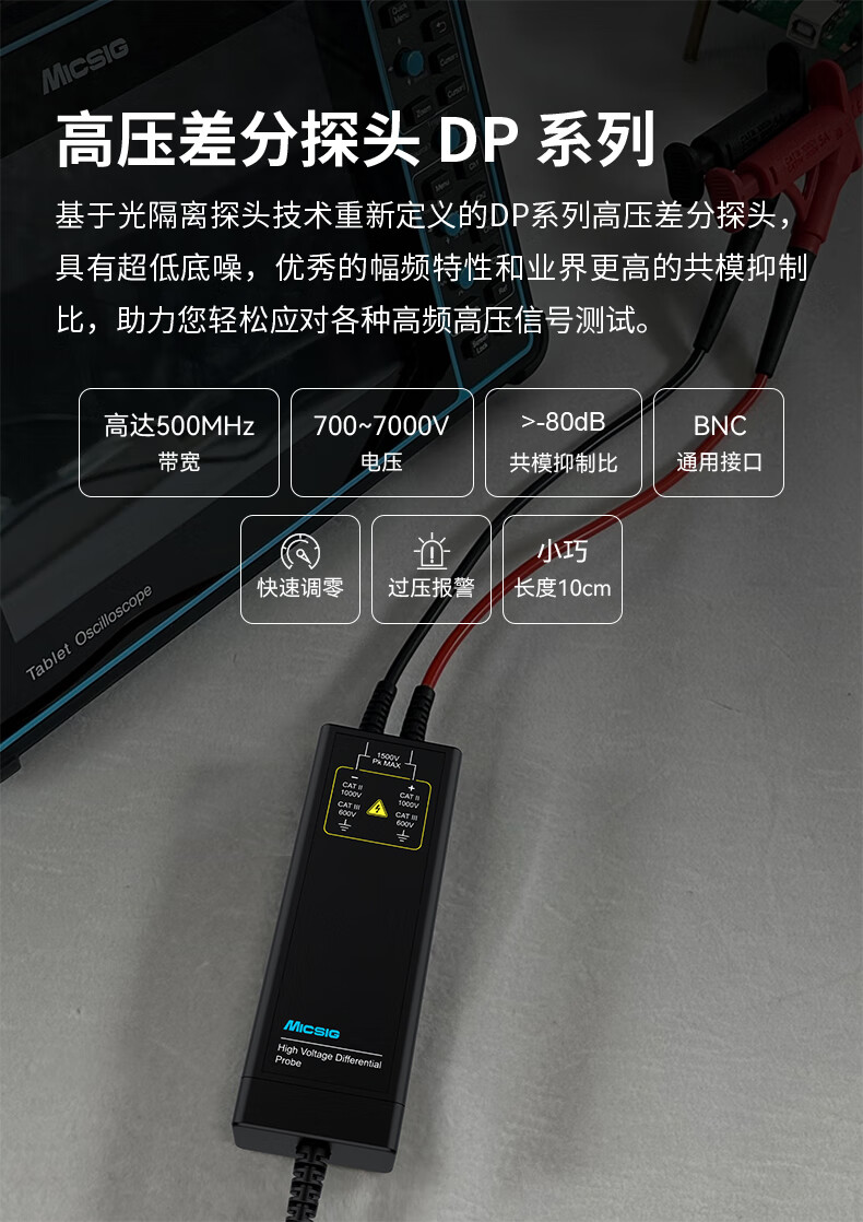 Maxine oscilloscope high voltage differential probe DP3000V measurable voltage bandwidth 100M dual range switching BNC interface