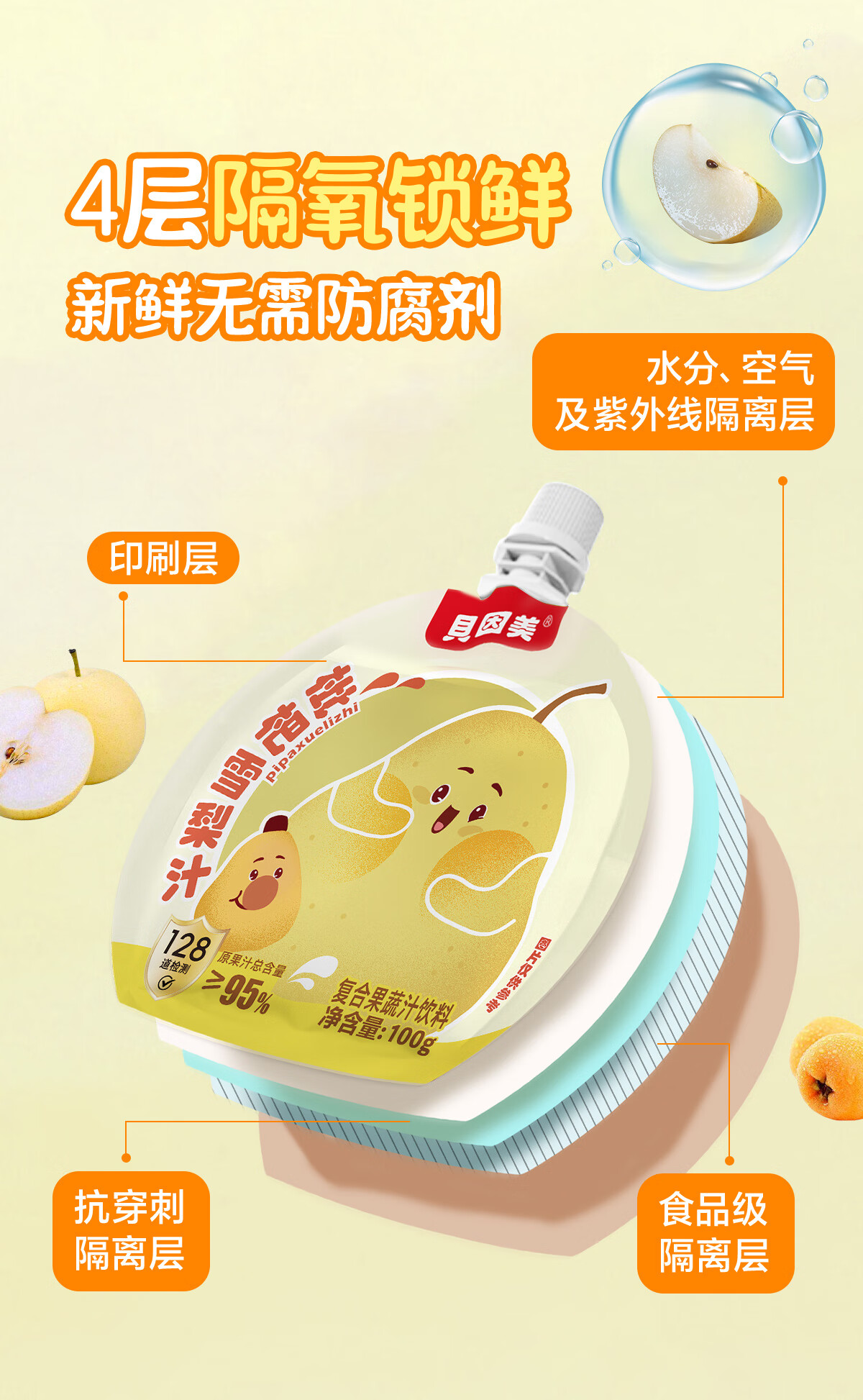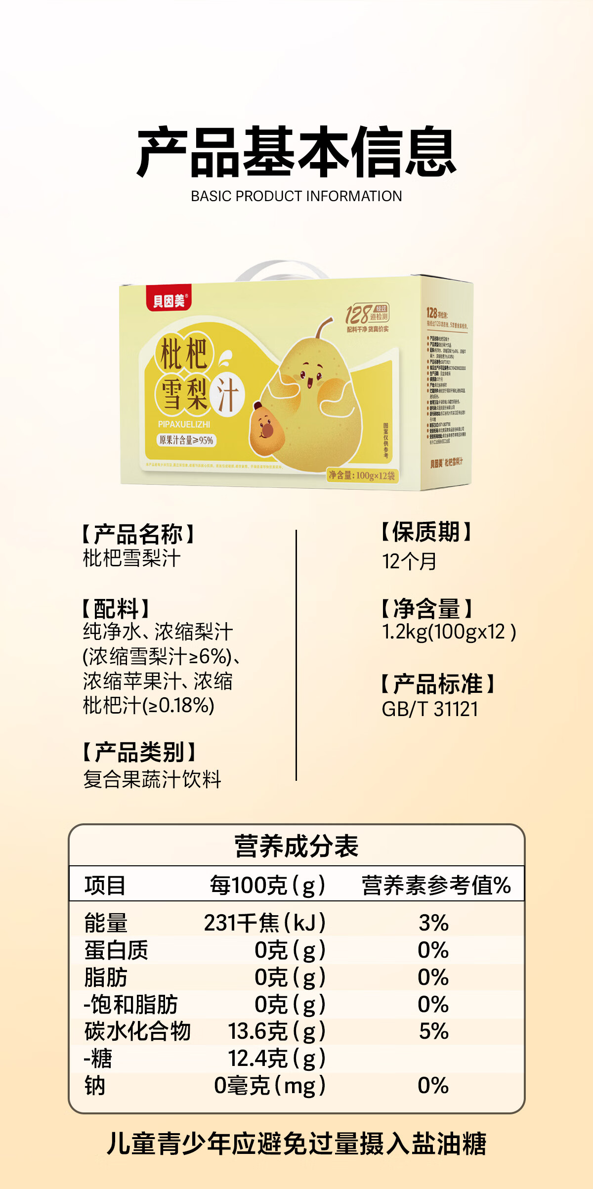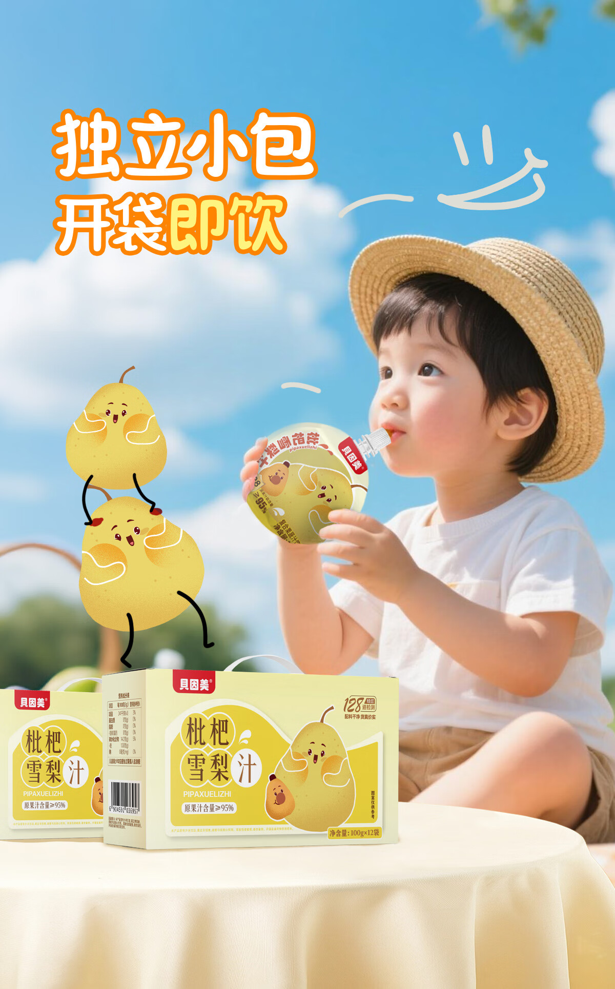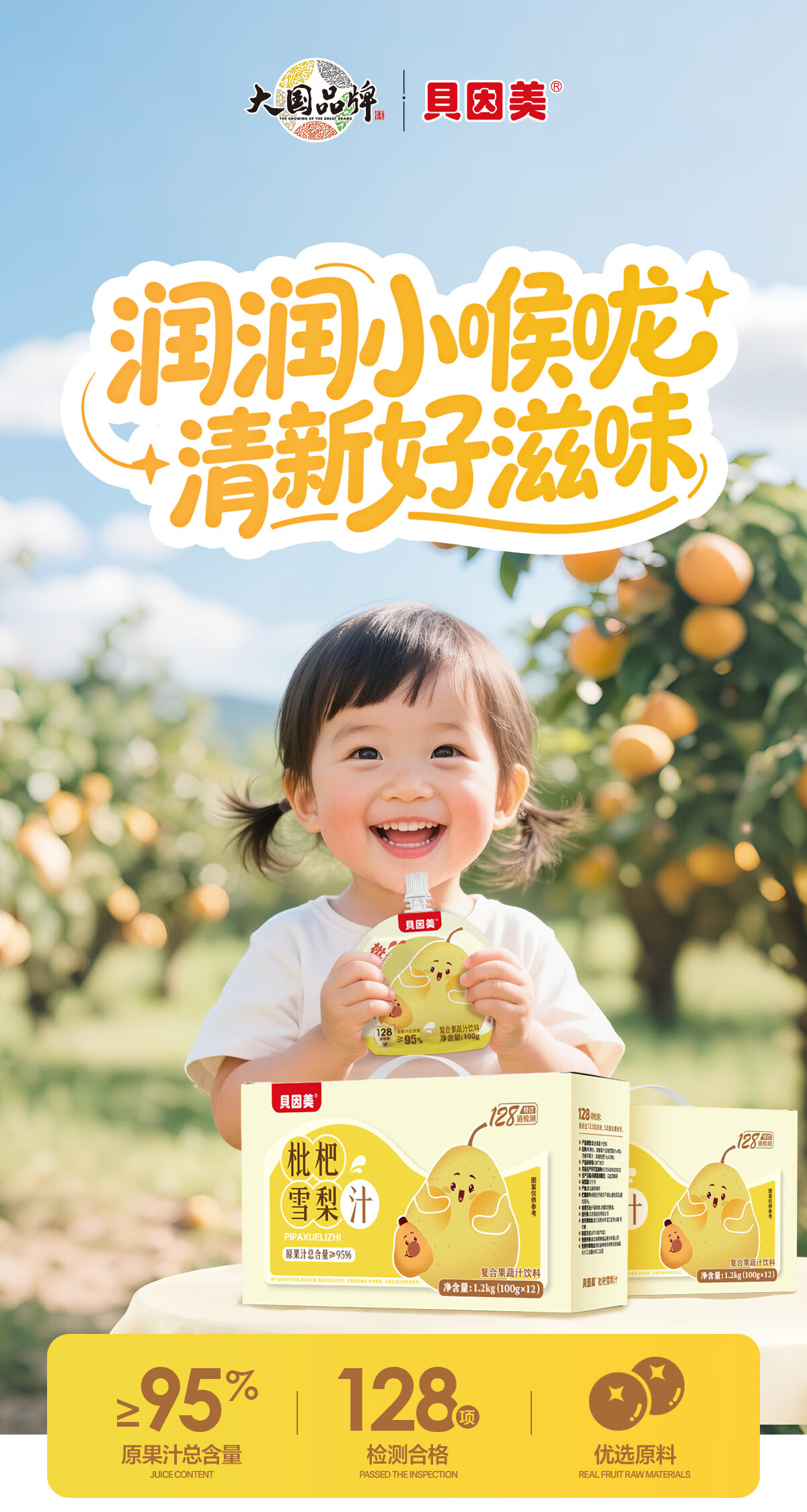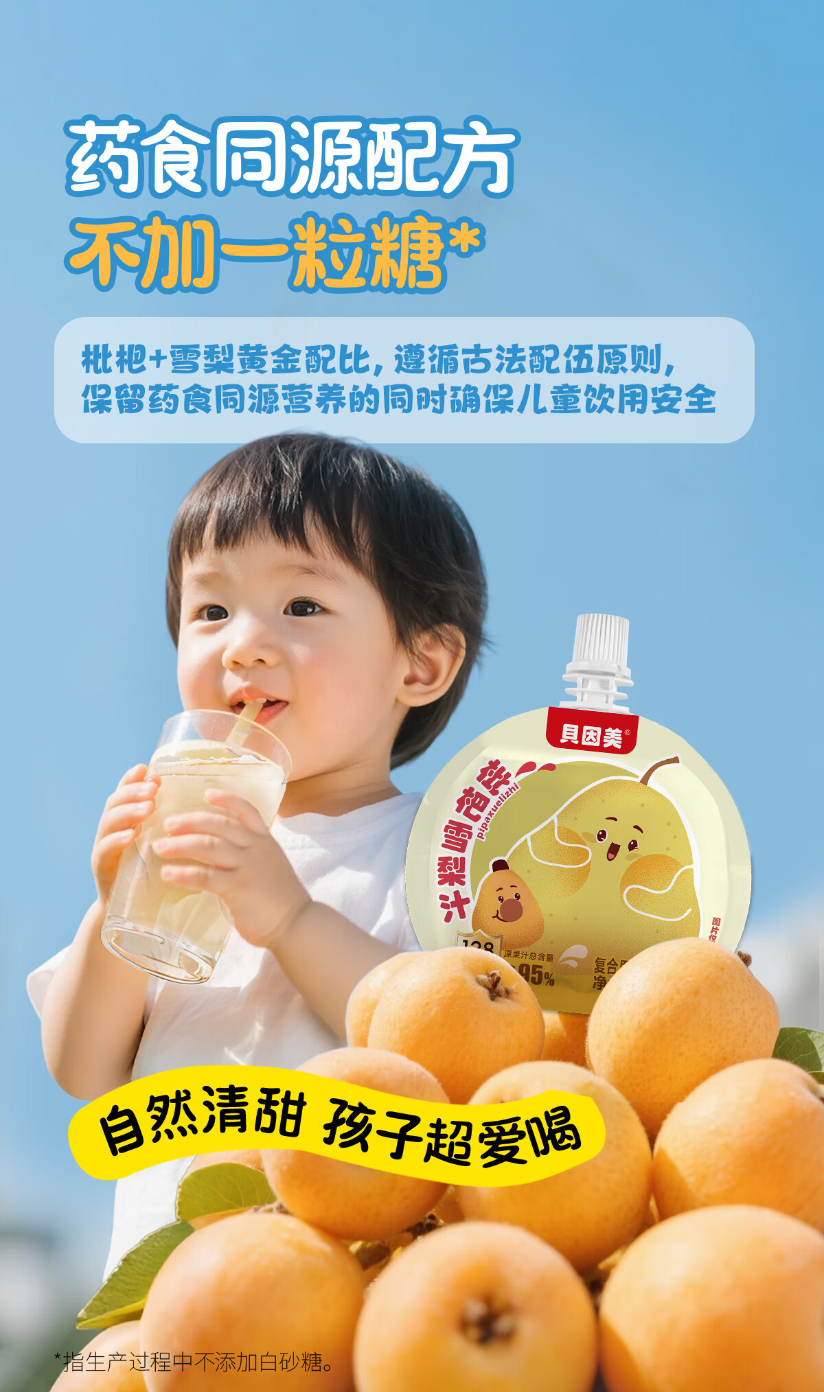 Beingmate loquat and pear juice 100g*12 bags, four major 0 additions, medicinal and food sources, children's juice gift box