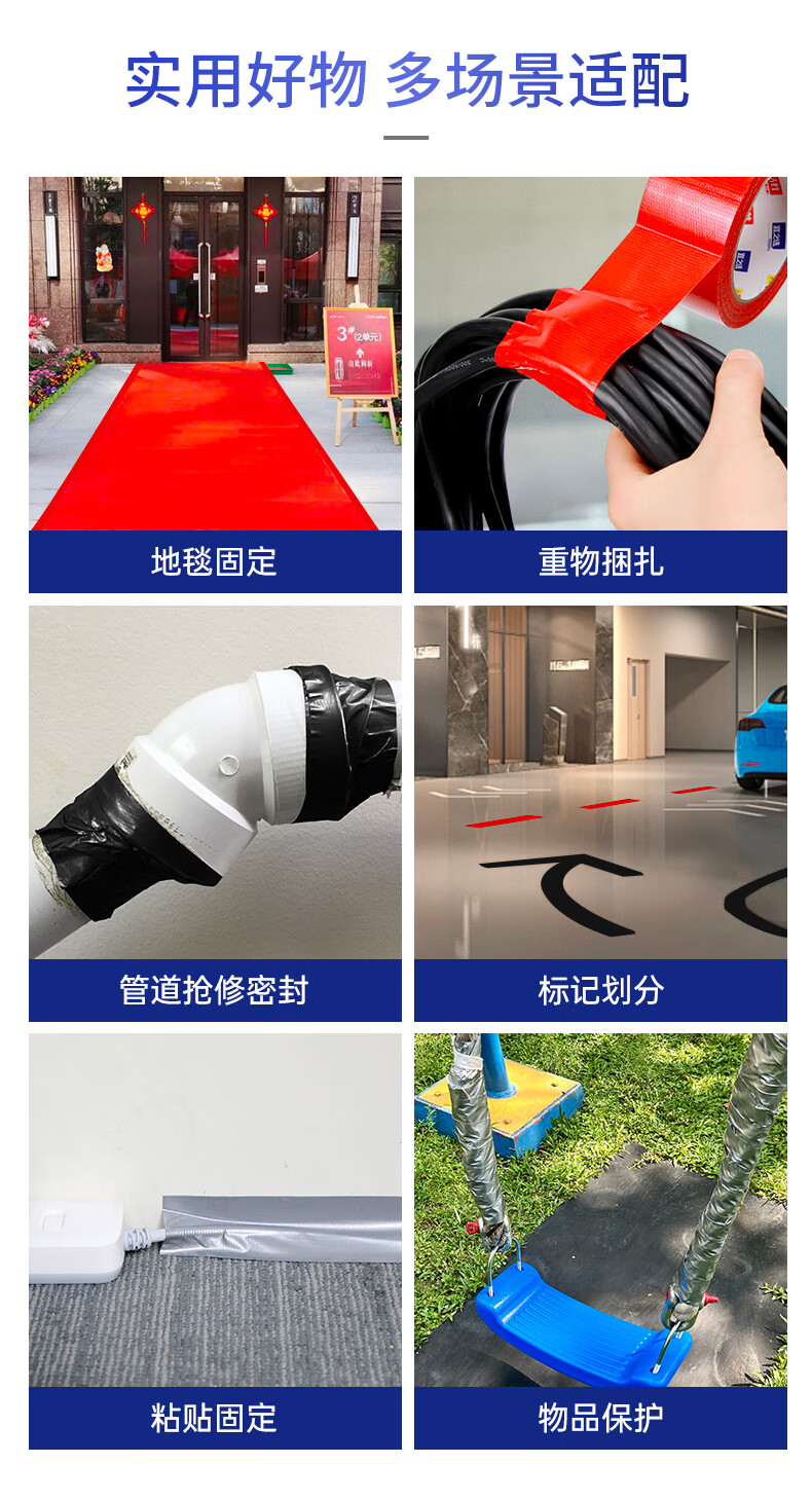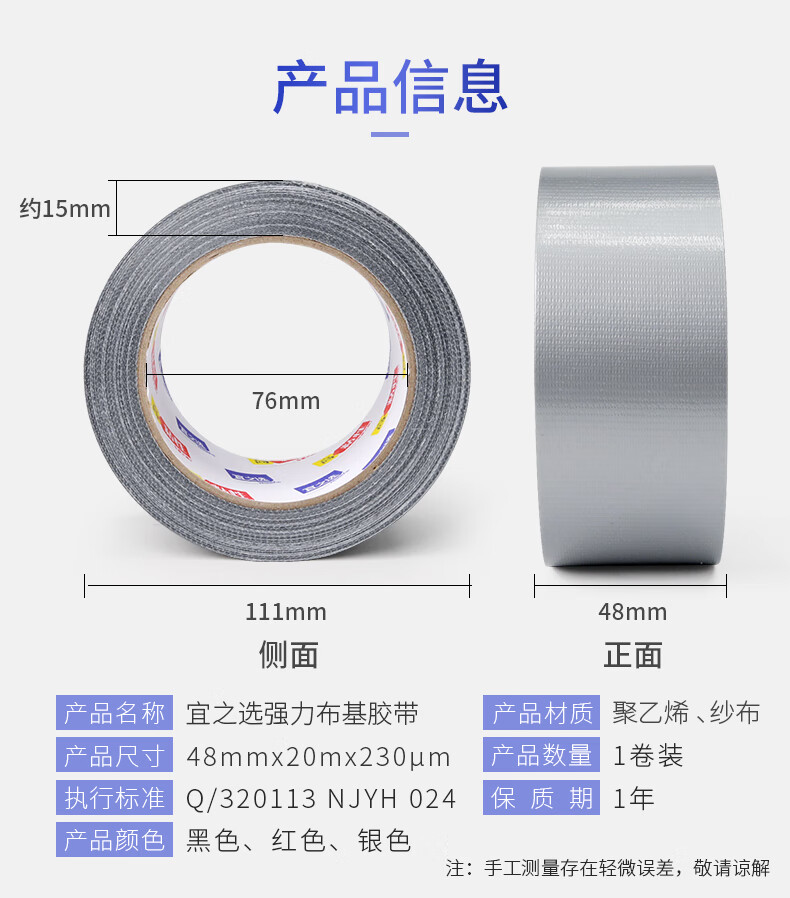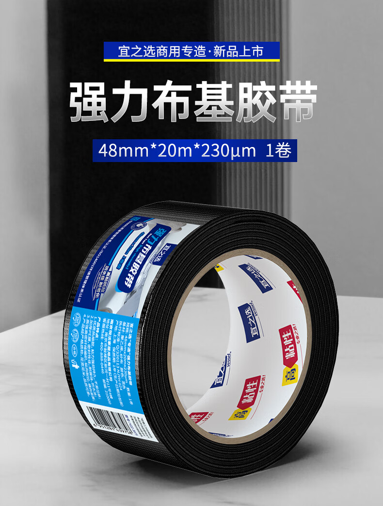 Yizhixuan strong cloth-based tape windproof window sealing strong glue 4.8cm*20m*230m high-viscosity carpet fixing black film and television glue light-shielding waterproof tape is not easy to leave marks
