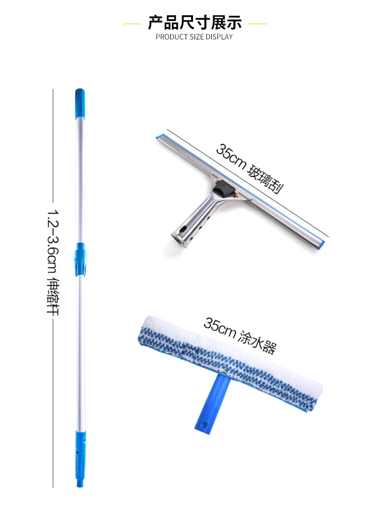 Kelibang glass scraper glass wiper set cleaning glass wiper extended telescopic rod glass scraper window cleaner water applicator glass wiper plate 3.6 meters / set KB2003