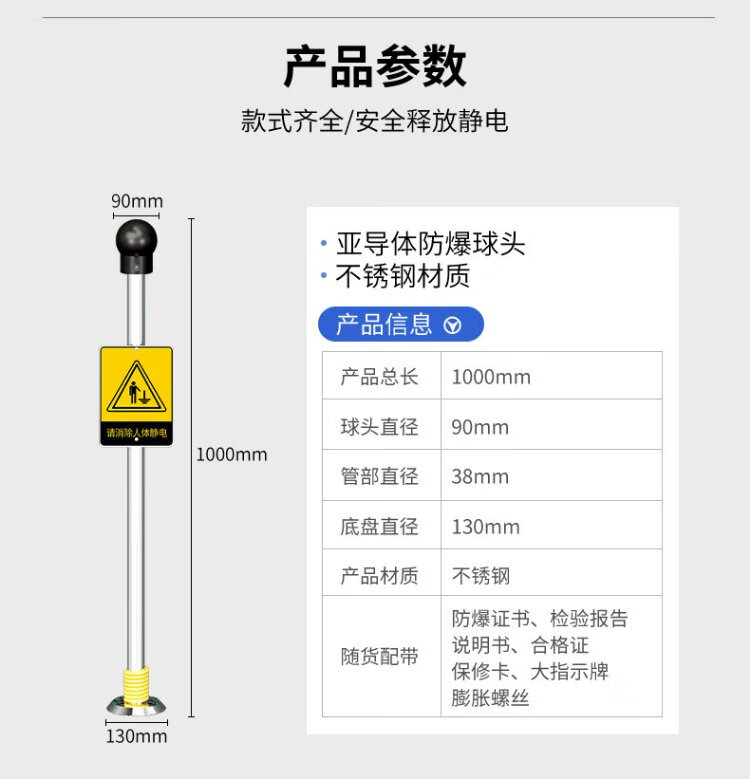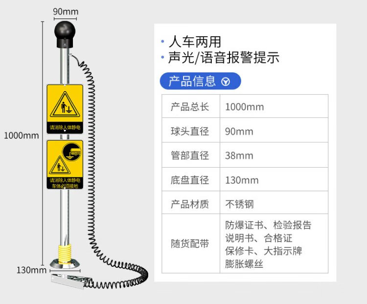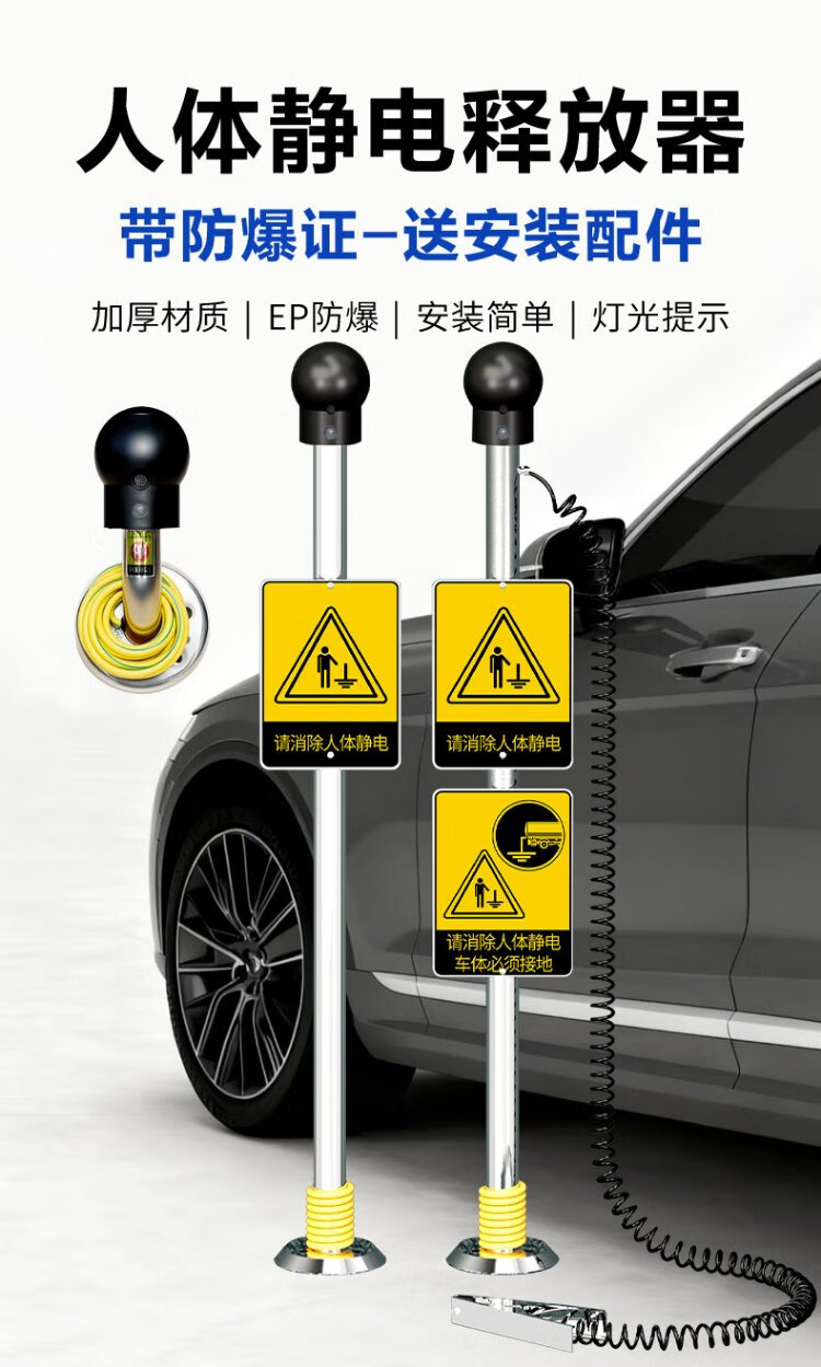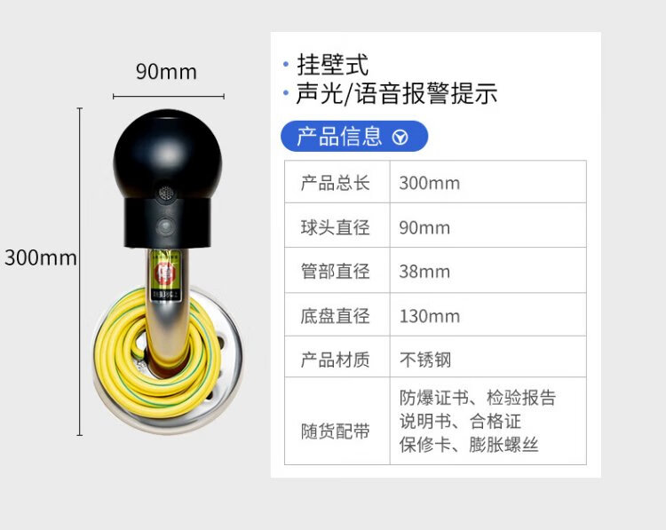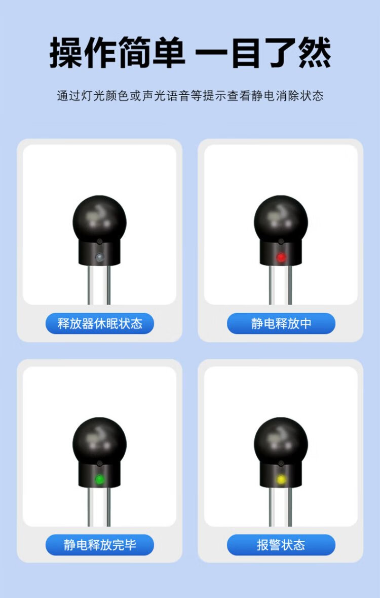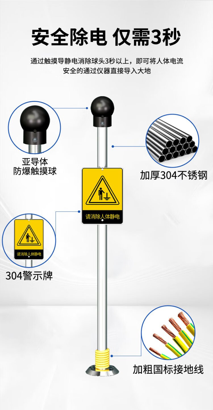 Mainotchi human body electrostatic release elimination ball explosion-proof sound and light alarm voice anti-static industrial electrostatic release pole instrument touch guide removal device (three-dimensional MNQ-voice sound and light)