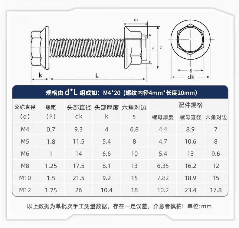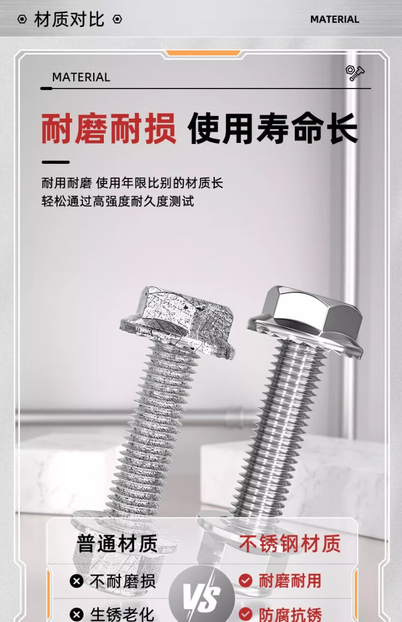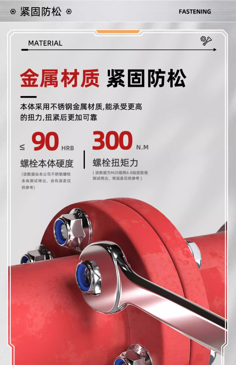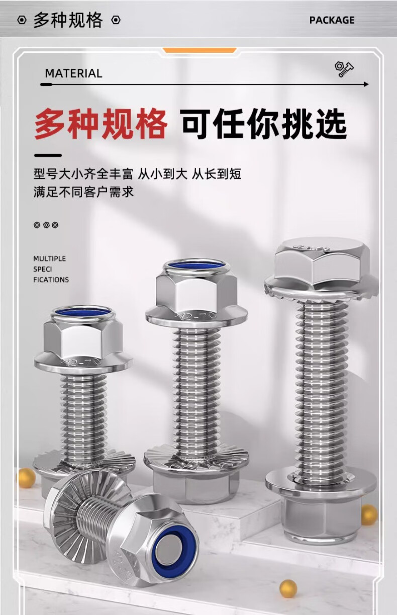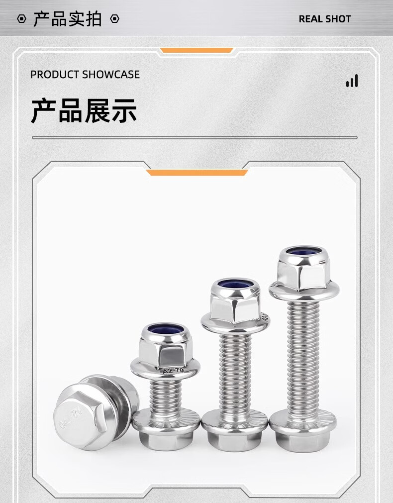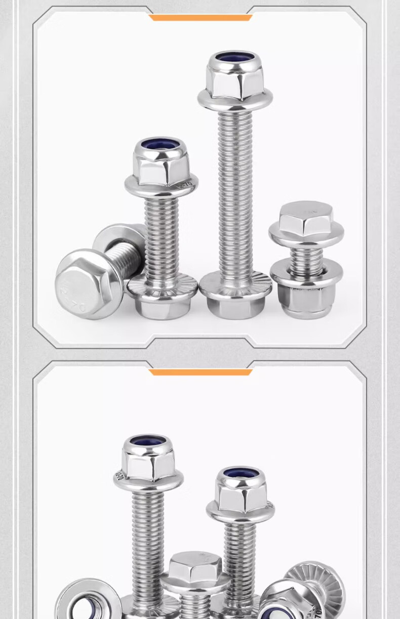 Fengji 304 stainless steel flange surface anti-slip external hexagonal screw bolt nylon anti-loosening nut combination 5M6M8-M12 M4*6-10 sets