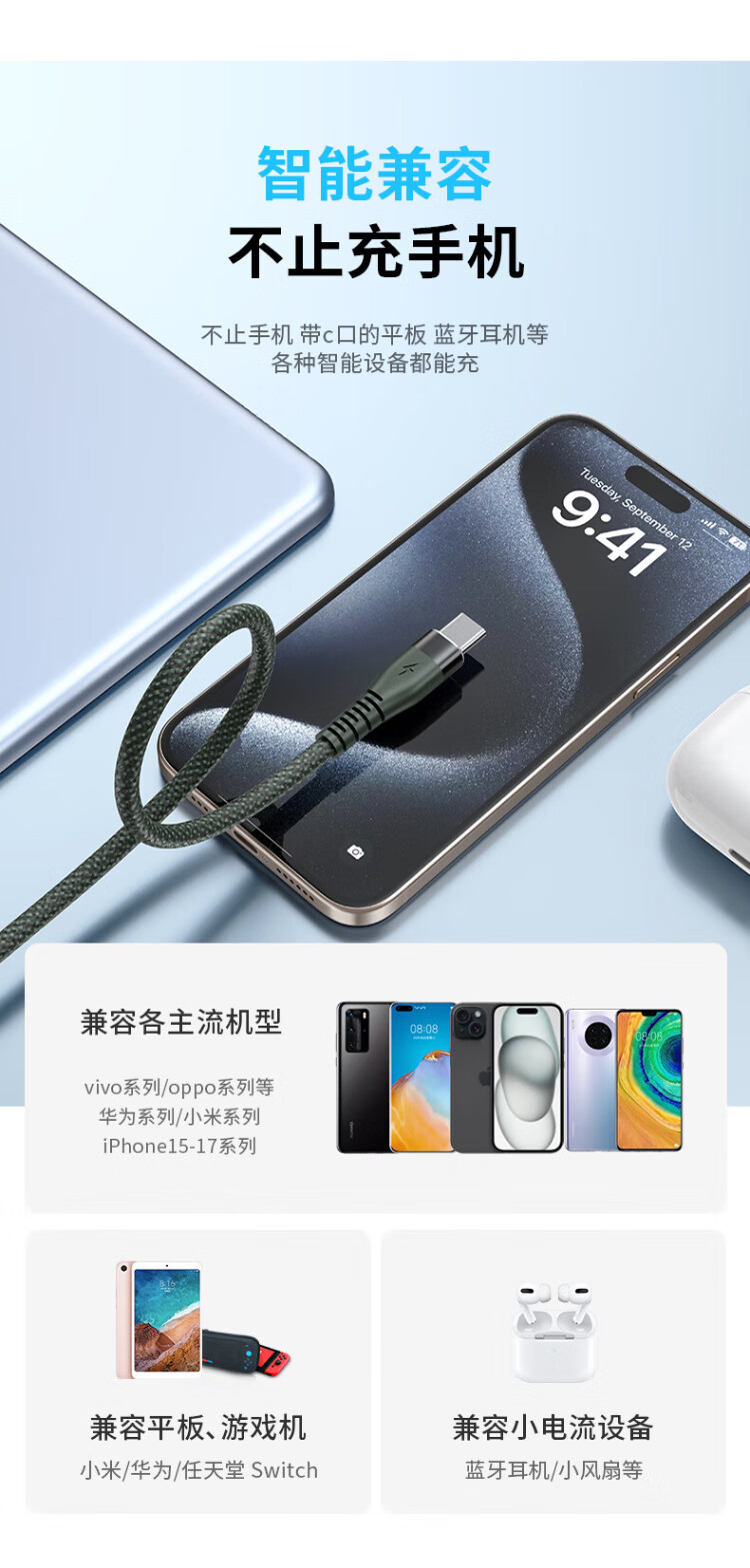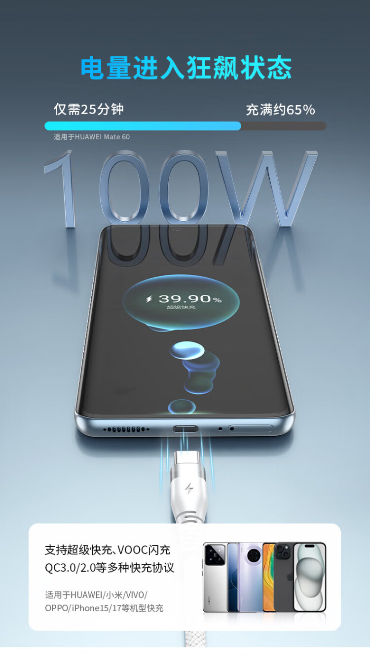 KY Kangyou data cable 6A fast charging charging cable 100W/88W/66W suitable for Apple 15-17 Xiaomi Huawei Honor tablet Pura80/Mate70/60 white 1.5 meters