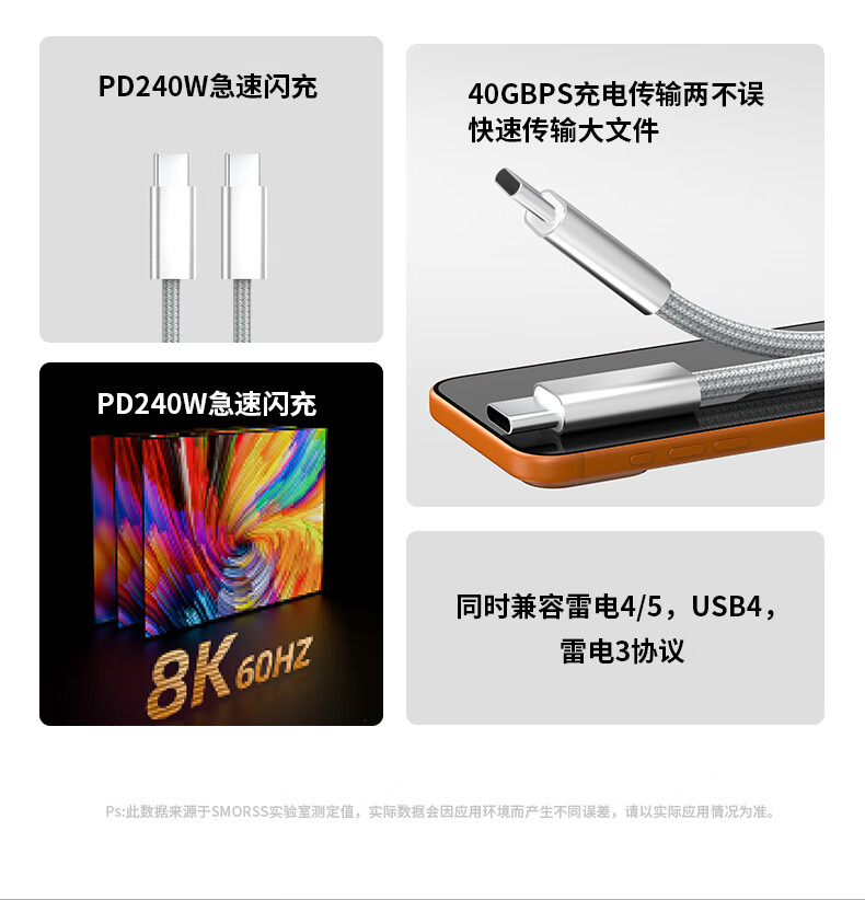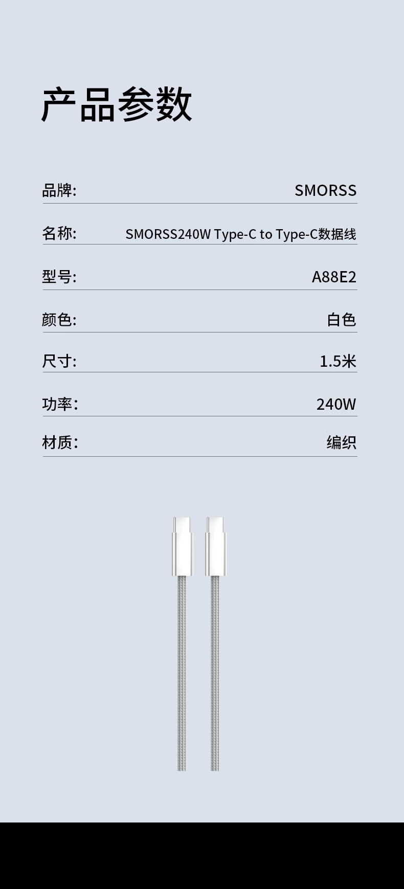 Smorss double-ended Type-C data cable 240W/120W/88W/66W/Mate70Pro/Pura Xiaomi 17 fast charging data transmission Huawei Xiaomi Apple charging cable 1.5 meters