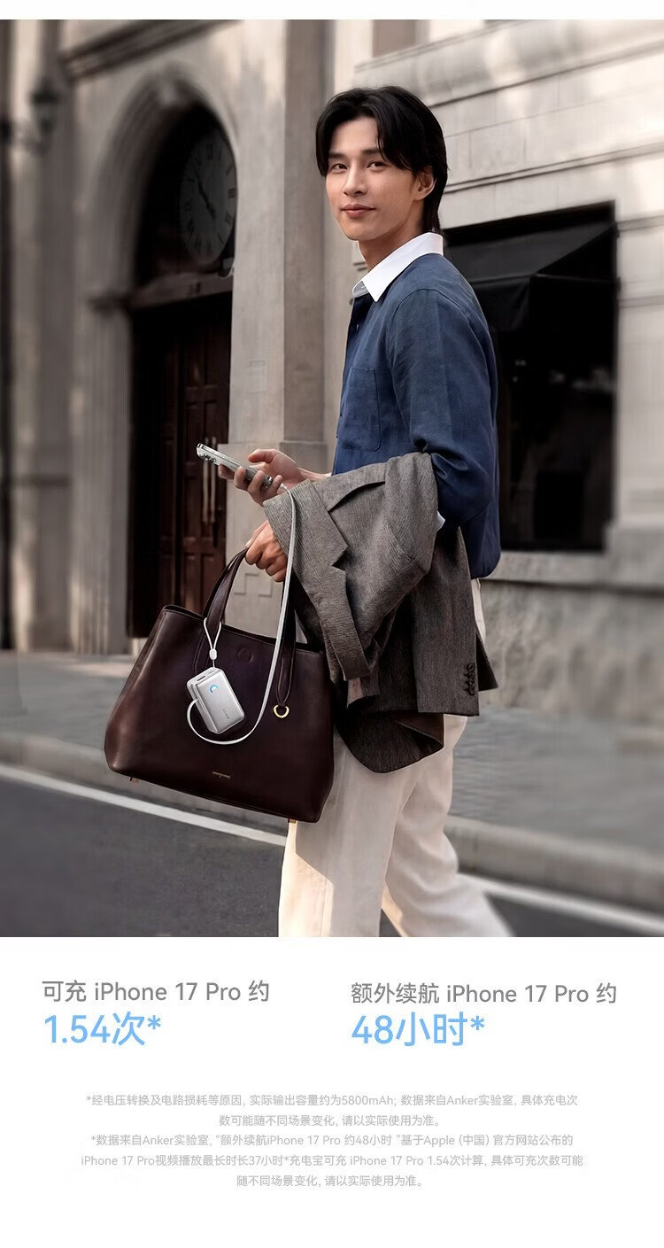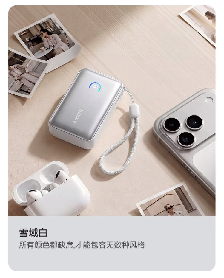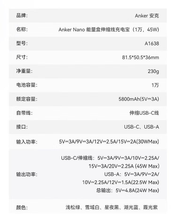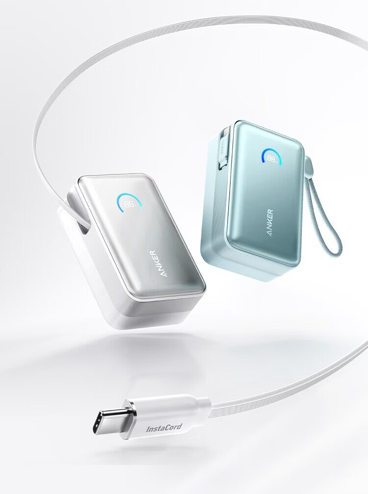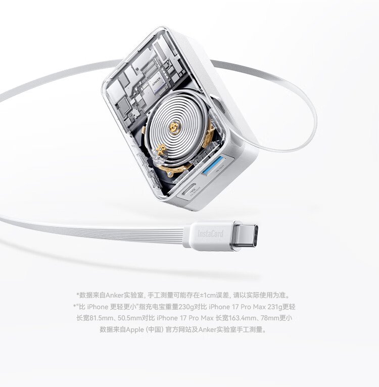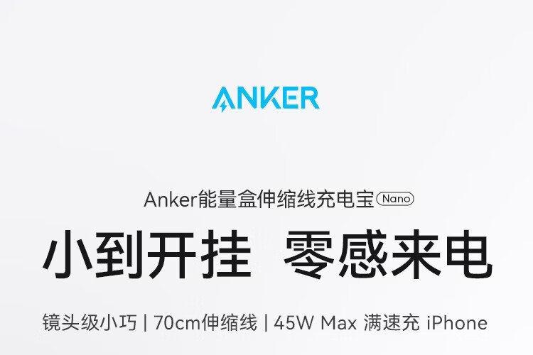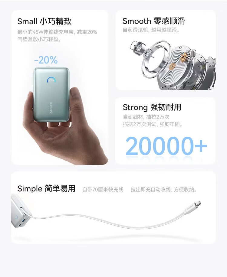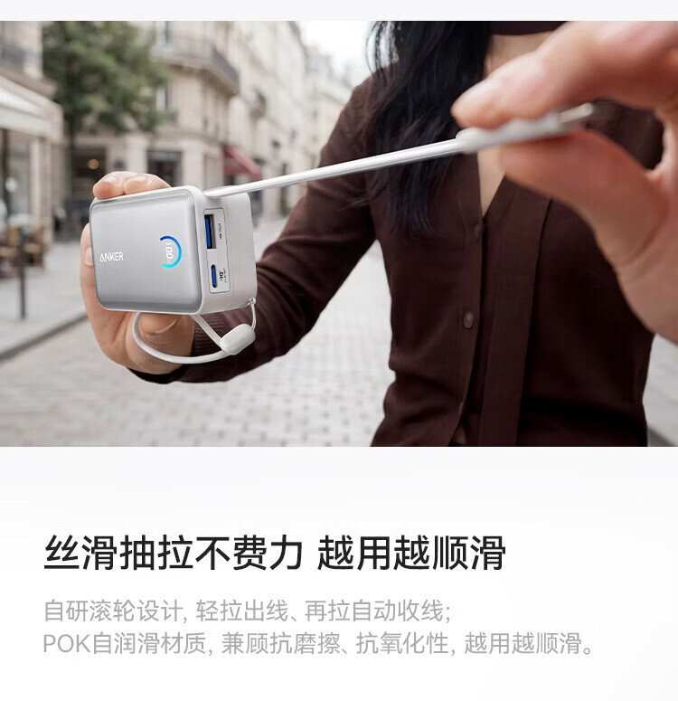 ANKER Energy Box 3C certified, can be used on airplanes, comes with retractable cable power bank, 10000 mAh, 45W fast charging, compact, portable power bank, Android Apple, black