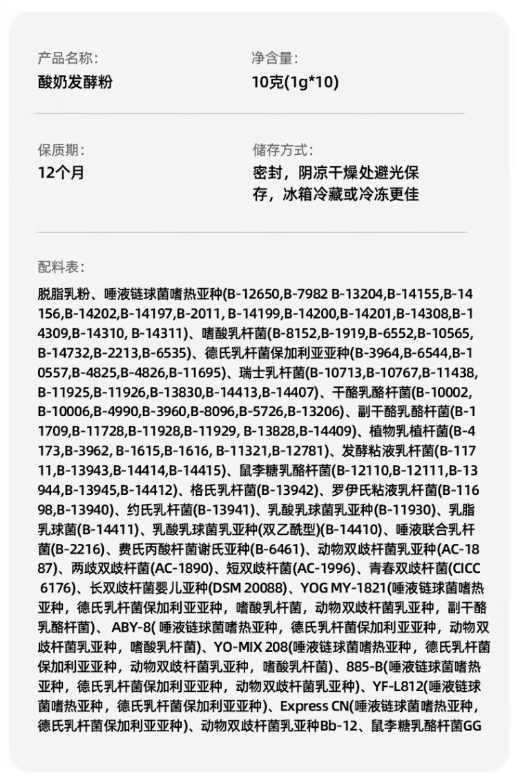 Chuanxiu yogurt fermentation bacteria 100 bacteria 10g lactic acid bacteria home-made yogurt probiotic fermentation powder yogurt bacteria powder