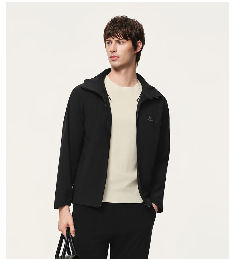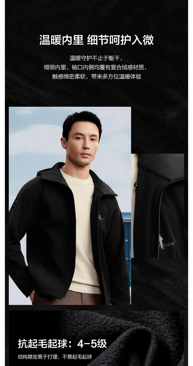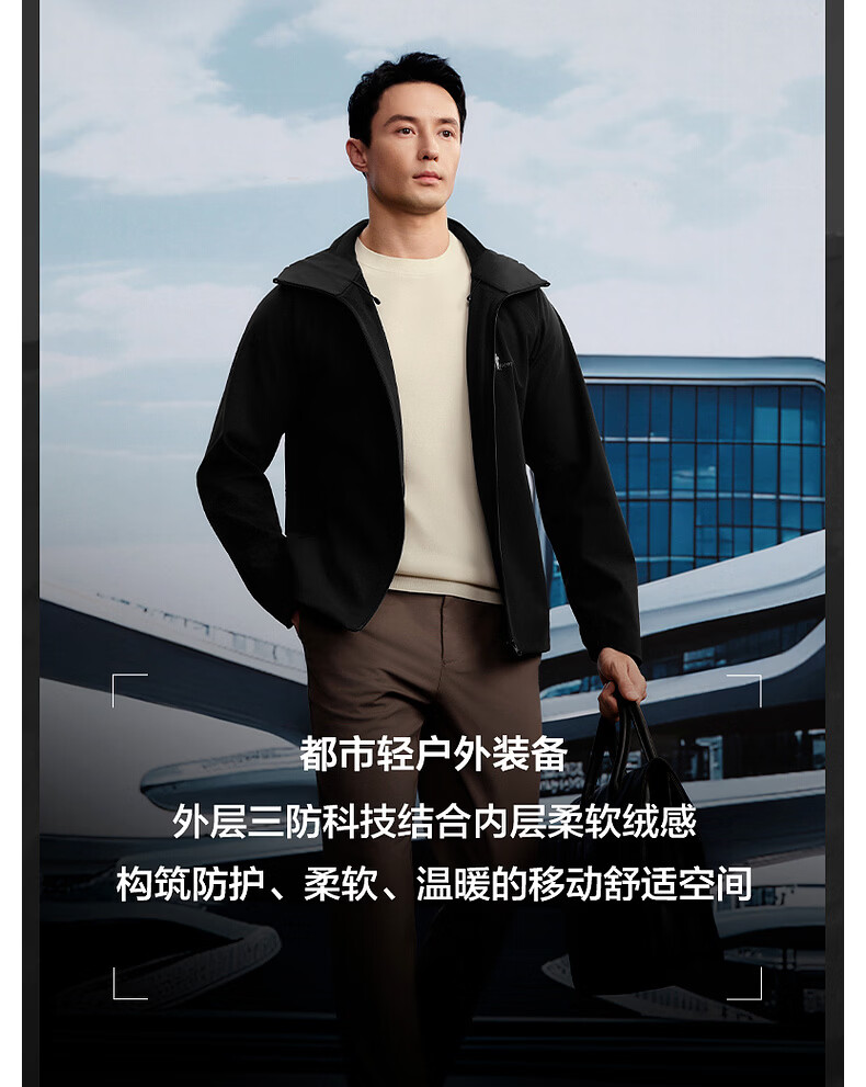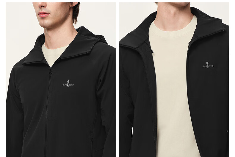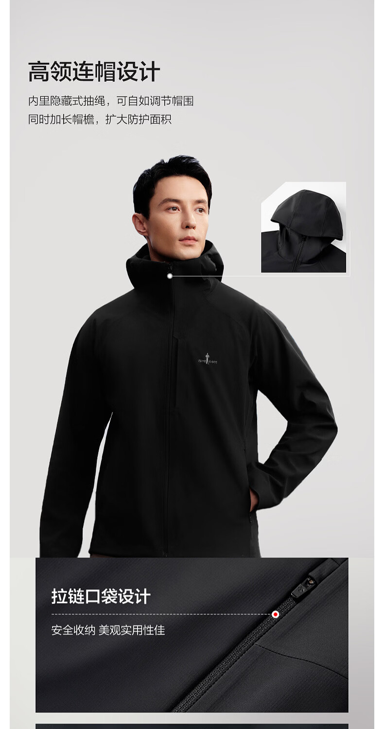 Biyinlefen three-proof performance fabric green soft shell spring and autumn men's outdoor commuting velvet knitted jacket hooded jacket