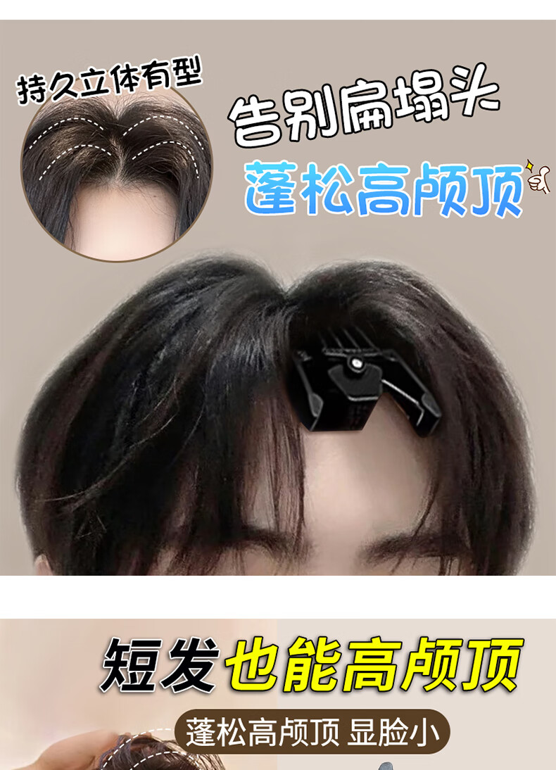 GECOMO's skull-increasing artifact, hair root naturally fluffy clip, men's eight-character bangs clip, seamless hair clip, hair positioning clip, headgear