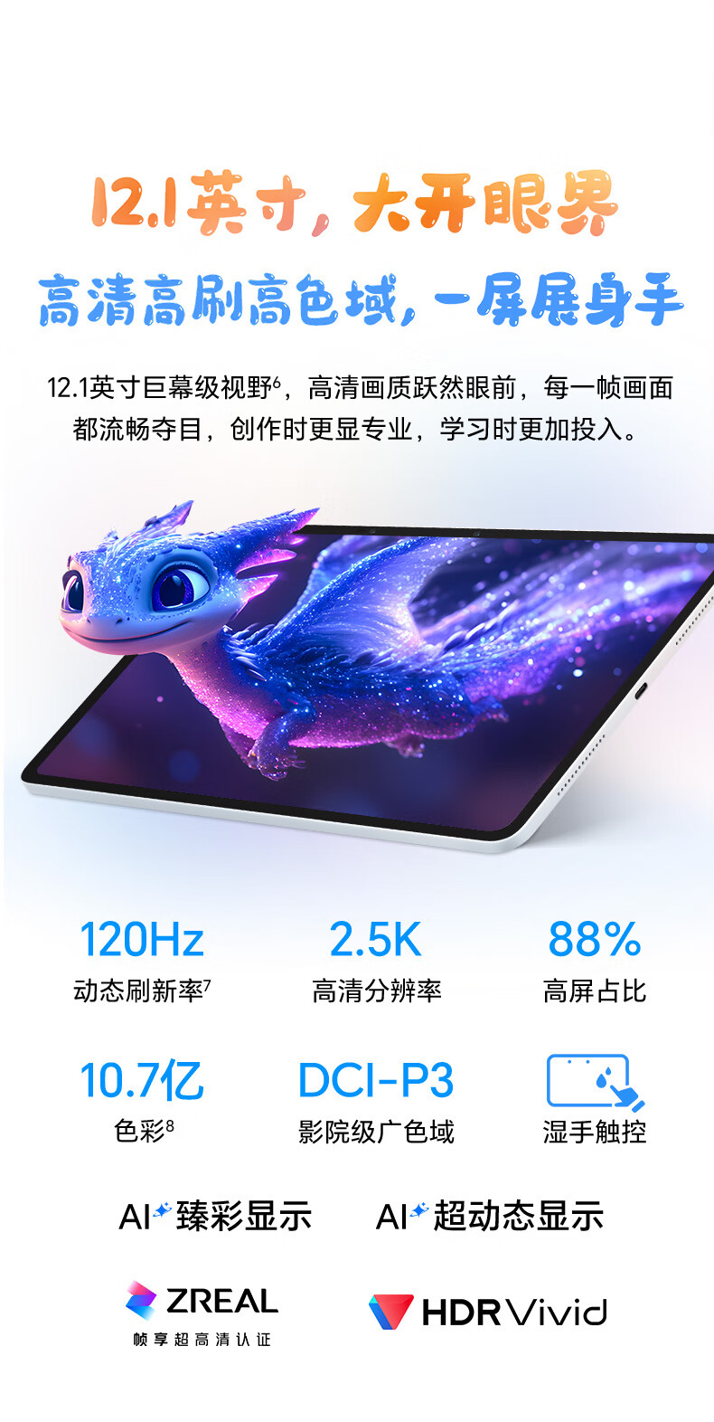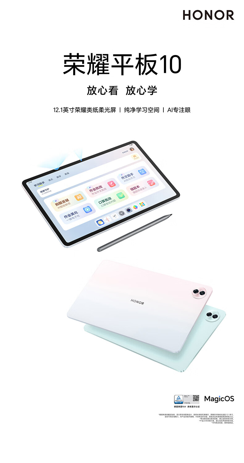 Quasi-new product Honor Tablet 10 National subsidy 12.1-inch 2.5K thin and light high-brush eye protection screen Snapdragon 7Gen3 learning tablet learning machine 8+128GB Sunrise Impression