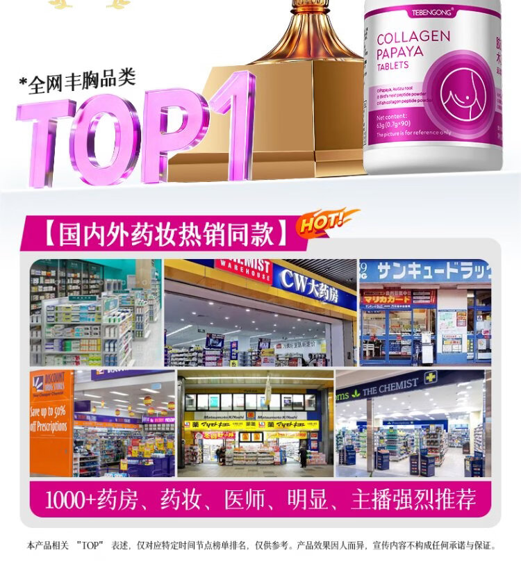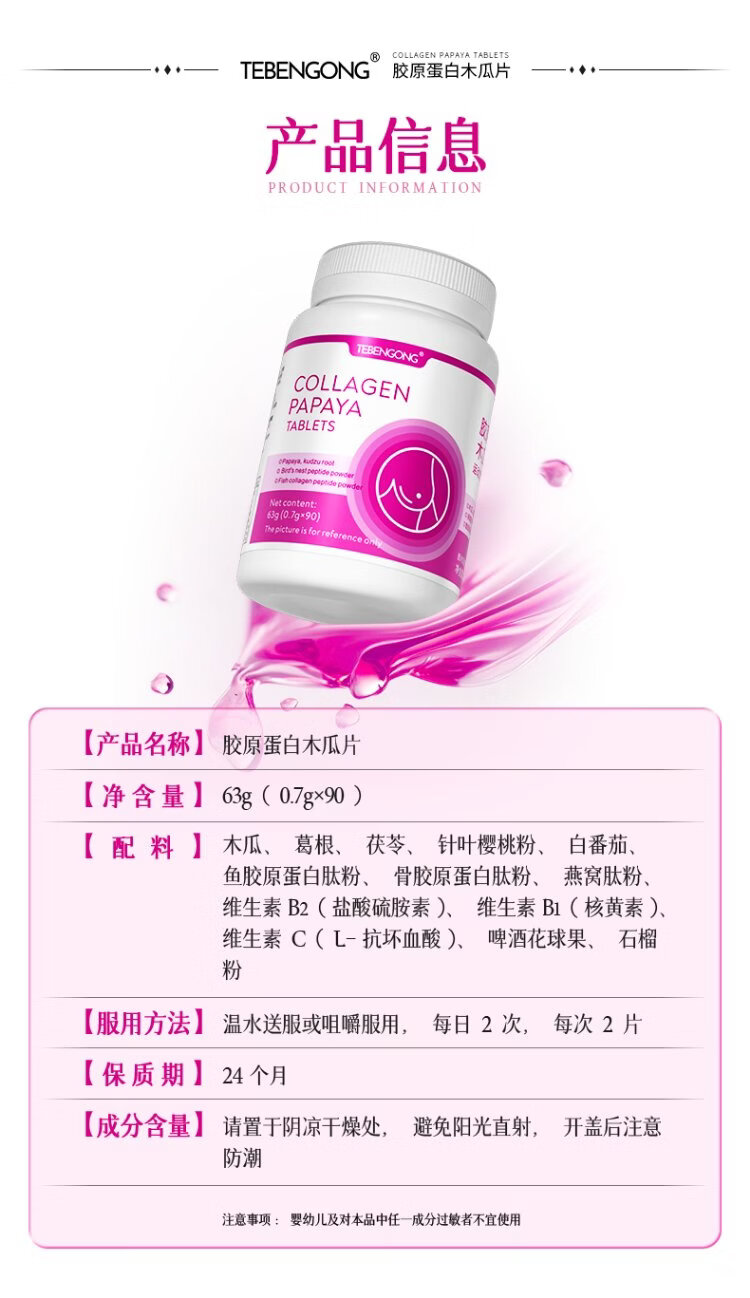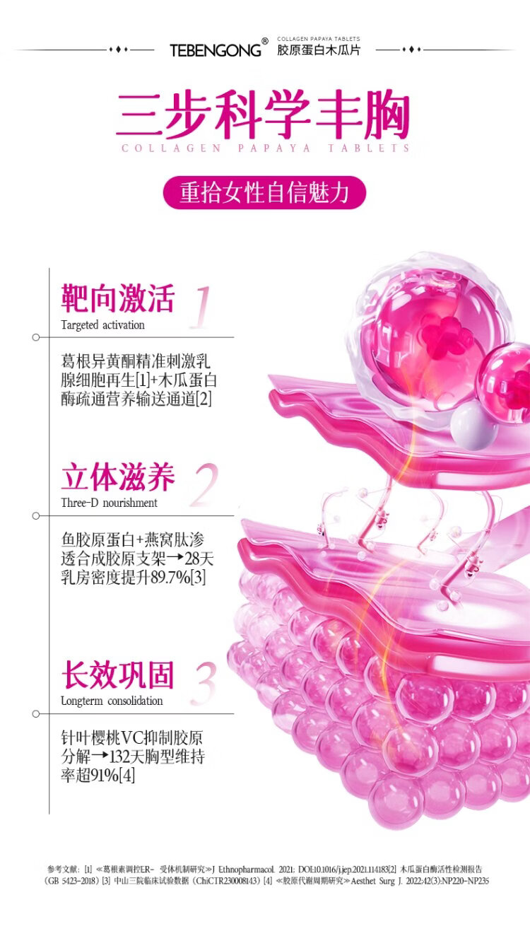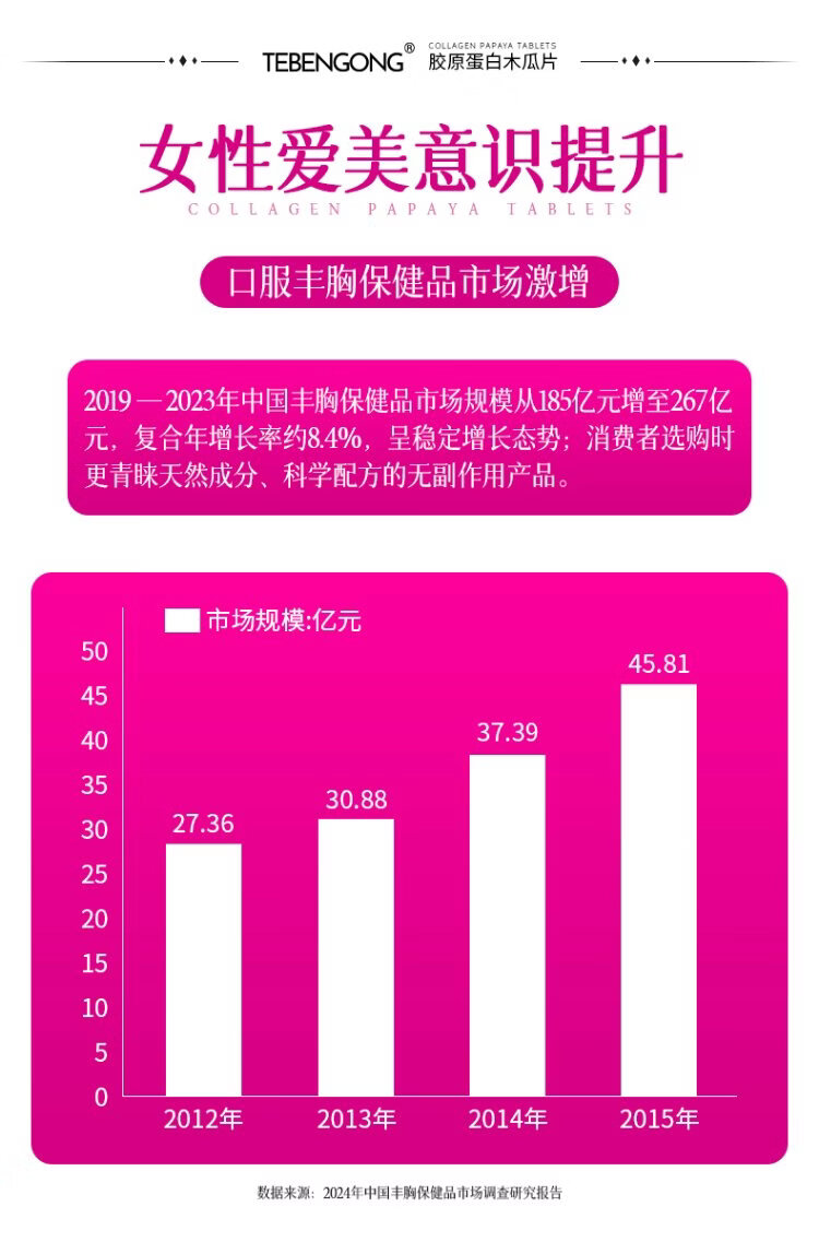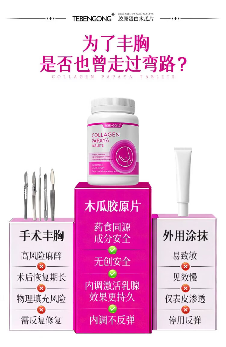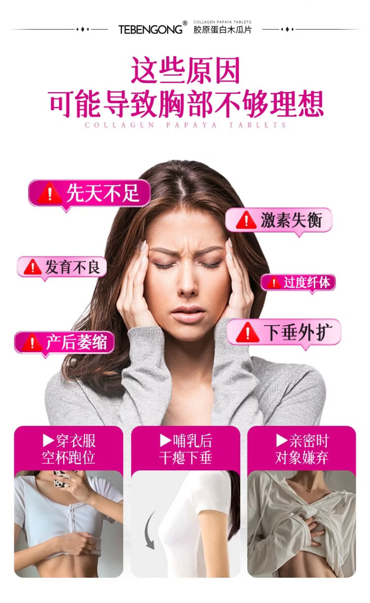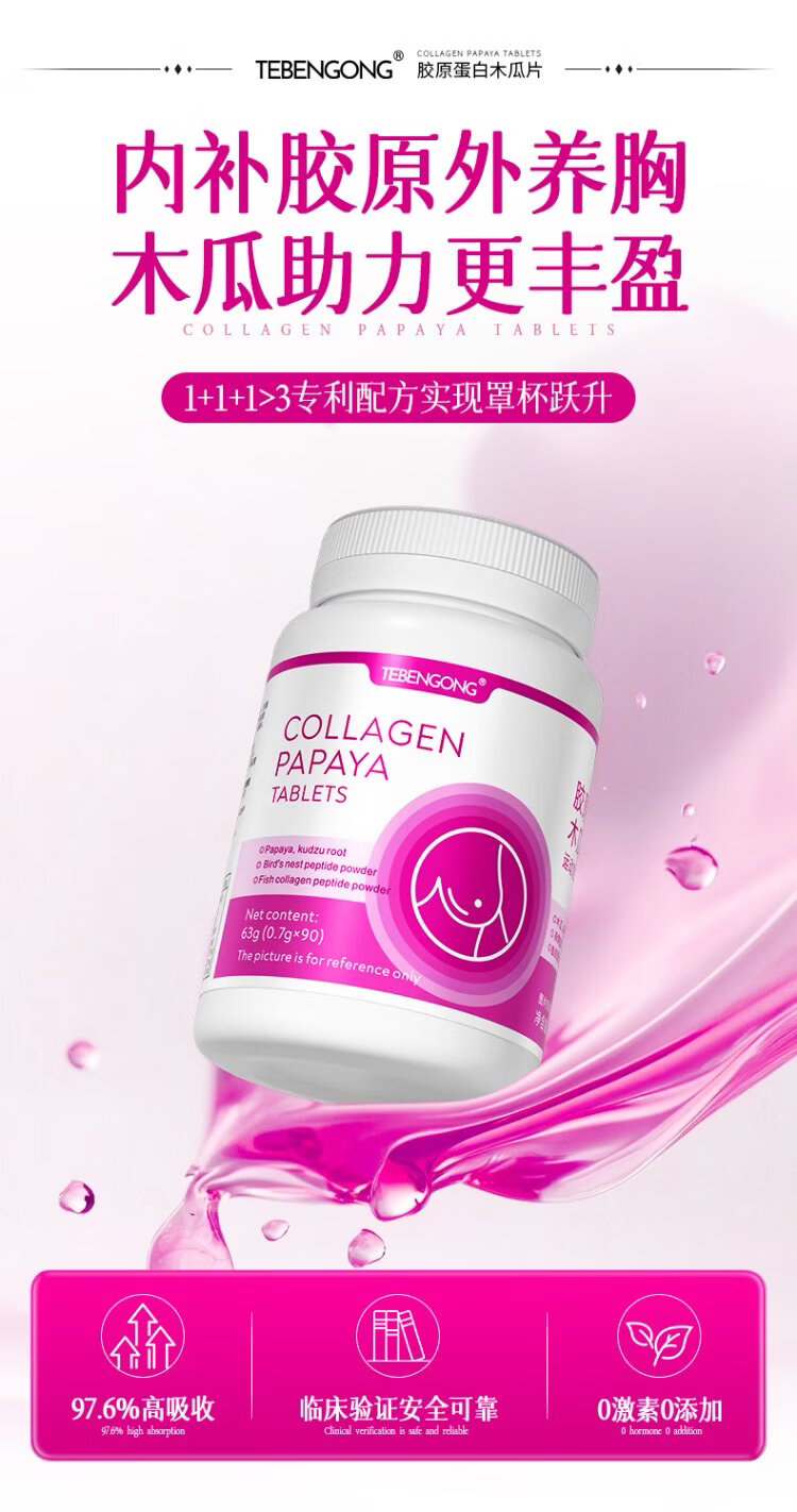 TEBENGONG Papaya Pueraria Collagen Peptide Breast Enlargement Product Rapidly Increase Postpartum Breast Sagging and Loose Breast Conditioning Capsules