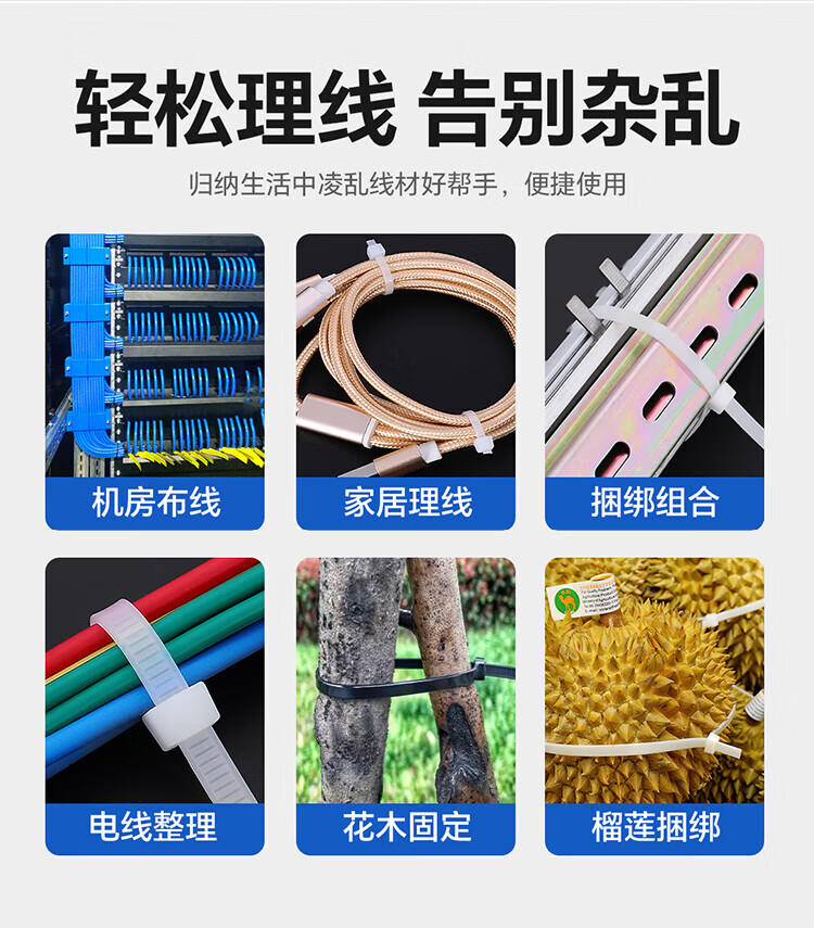 Hauskop Nylon Cable Tie National Standard 4.8*300mm Computer Installation Gardening Cable Management Belt Self-locking Cable Desktop Management Flame-Retardant Wire Harness Wire Bundling Tape White 100 Pieces/Pack