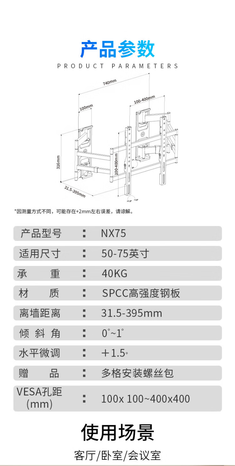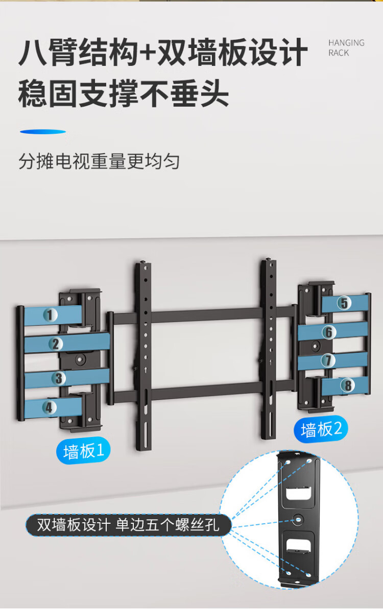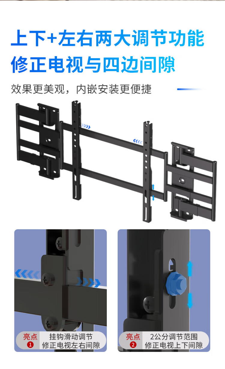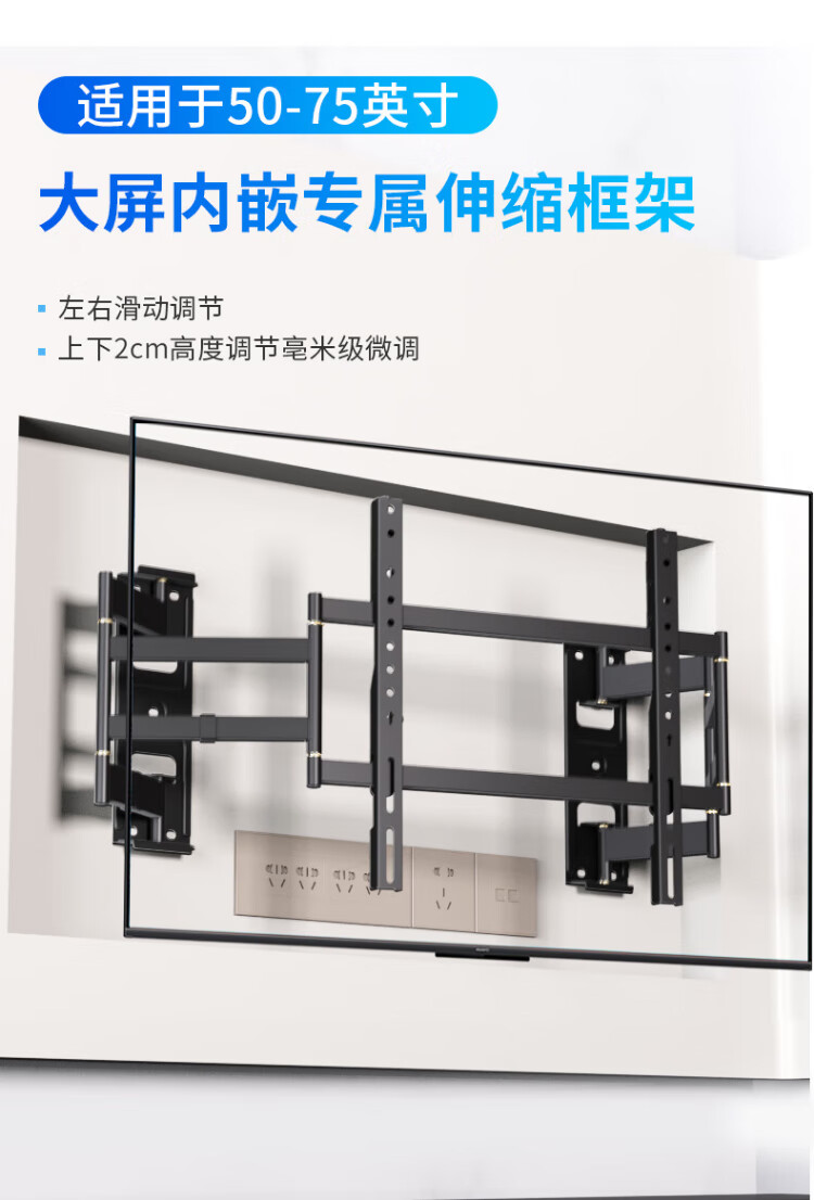 KALOC TV hanger ultra-thin built-in niche double-arm TV bracket wall-mounted telescopic rotating adapter 50-75 inches Hisense Xiaomi Skyworth TCL Thunderbird NX75