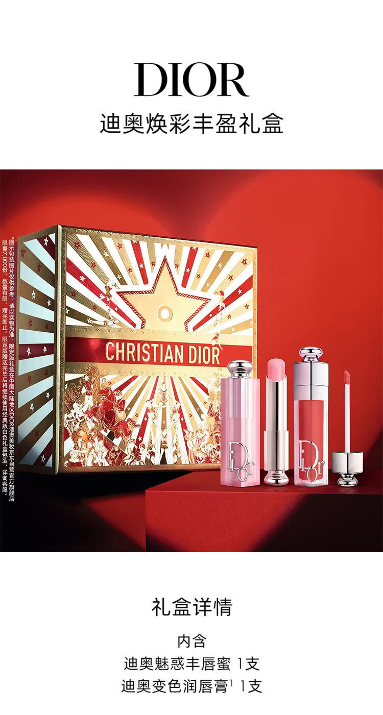 Dior DIOR Glowing and Plumping Gift Box (Lip Balm 001 + Lip Plumping Gloss 018) Set Birthday Gift New Year's Gift for Women
