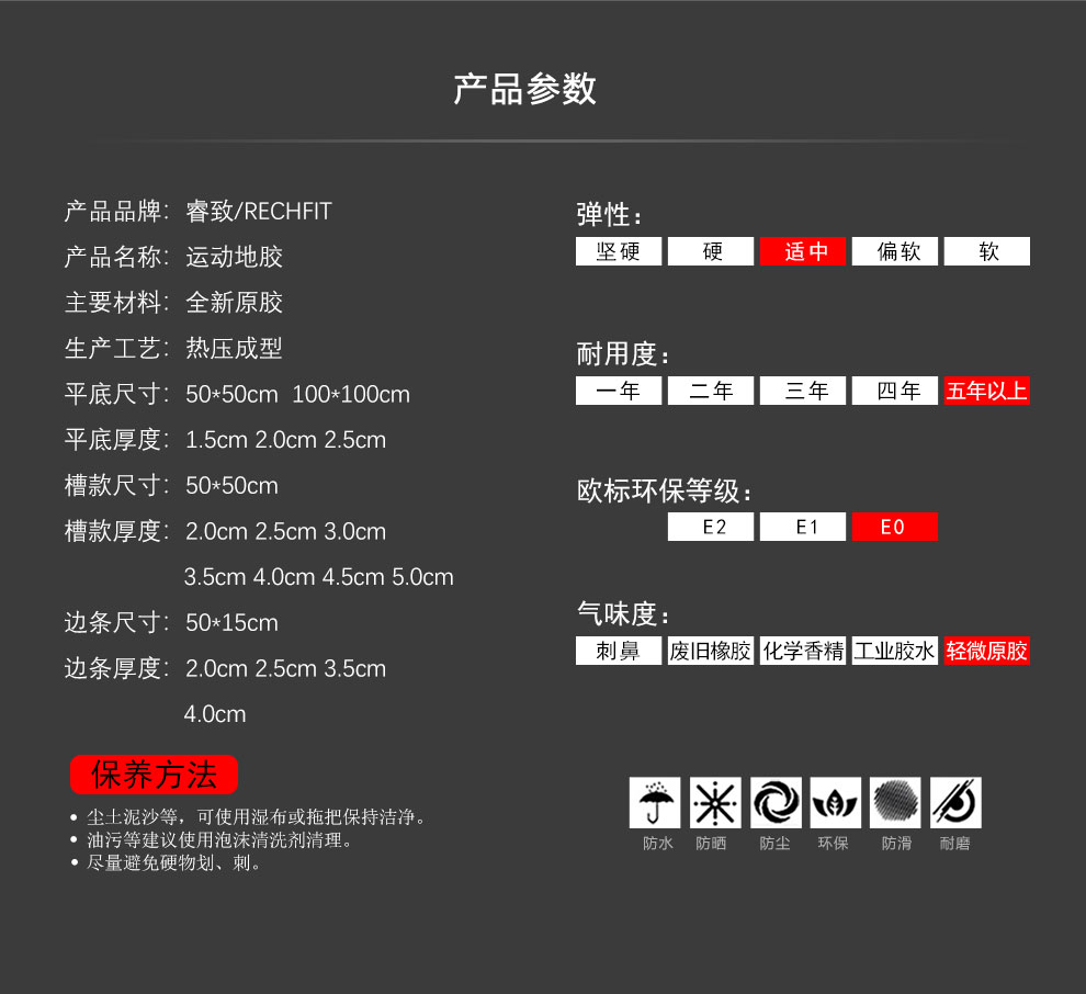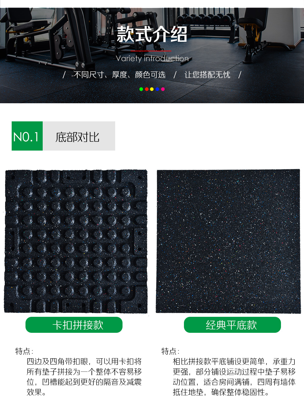 RECHFIT gym rubber floor mats, shock-absorbing, soundproofing, anti-slip, anti-smashing, cushioning floor fitness floor mats, sports floor rubber