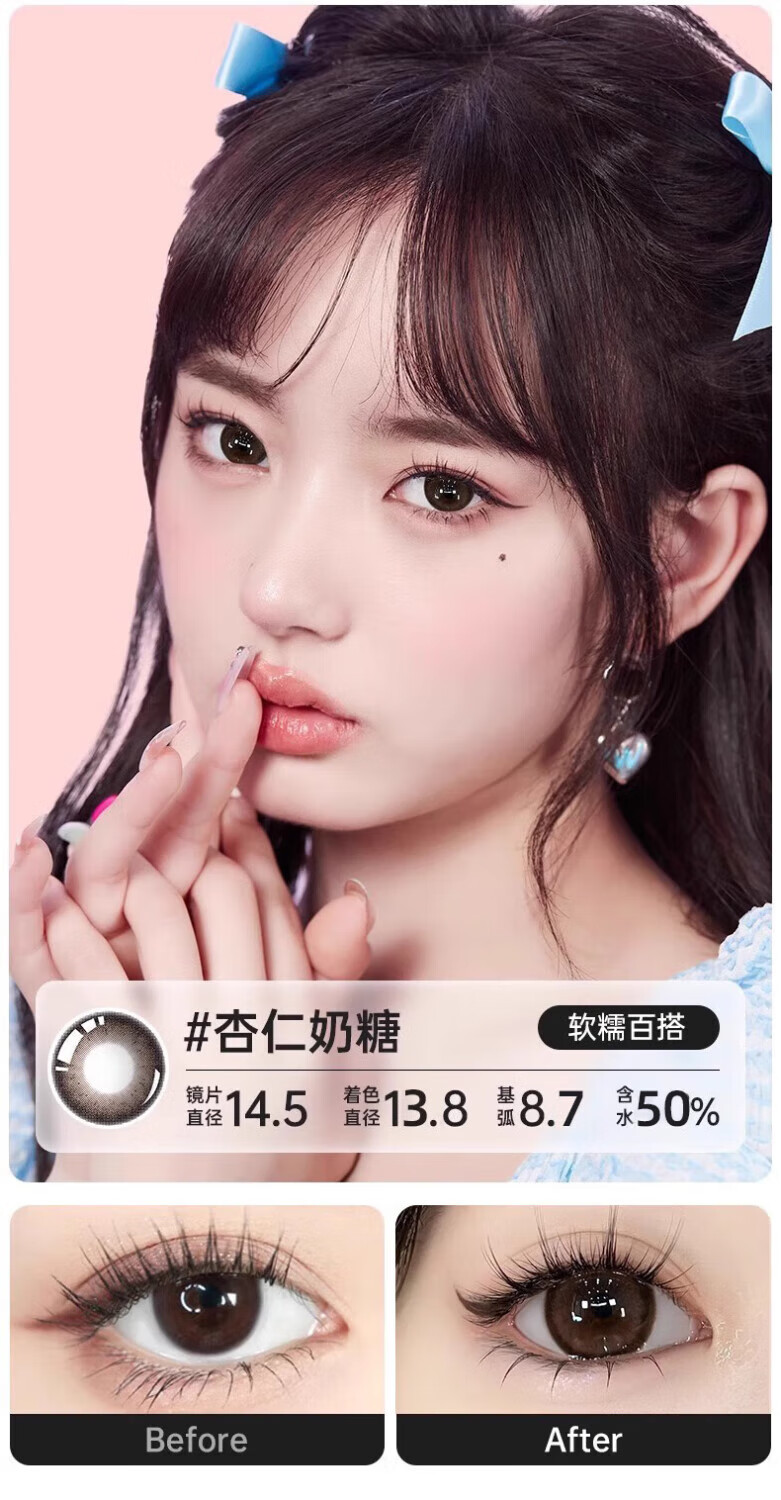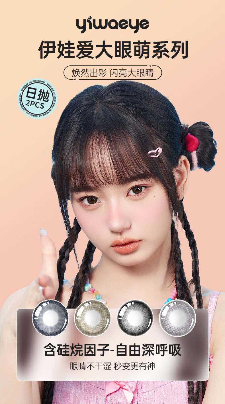 Yiwaeye (yiwaeye) Yiwaeye Big Eyes Cute Daily Disposable Color Contact Lenses 30 Pieces Almond Milk Candy 100 Degrees