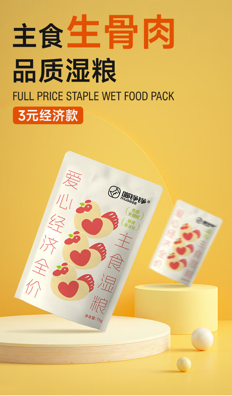 Meow Zhengzheng full price staple food wet food raw bone and meat meal package kitten adult cat meal pet nutrition soup package love 75g*15 package