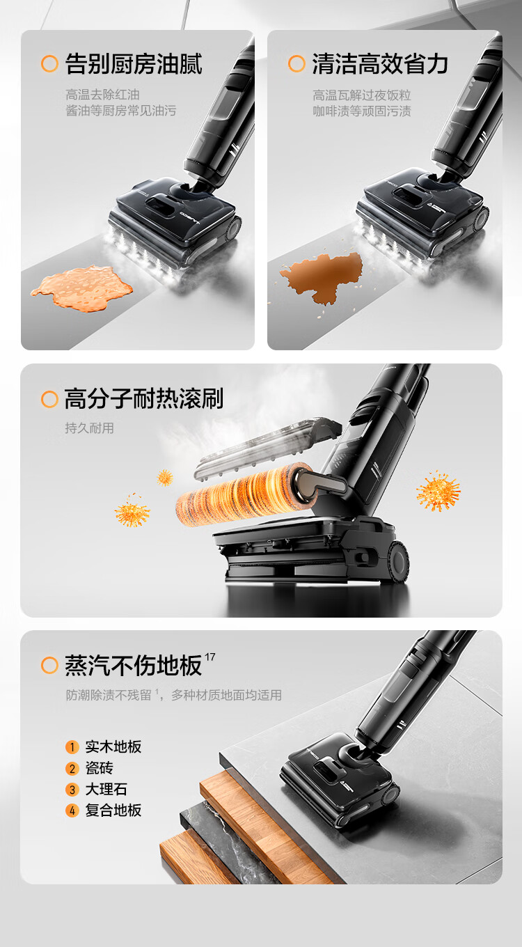 Timkovone Stretch Steam Combo160 steam 1 machine 5-use flat floor scrubber 0 tangle suction and mopping all-in-one automatic cleaning mopping vacuum cleaner sweeping robot