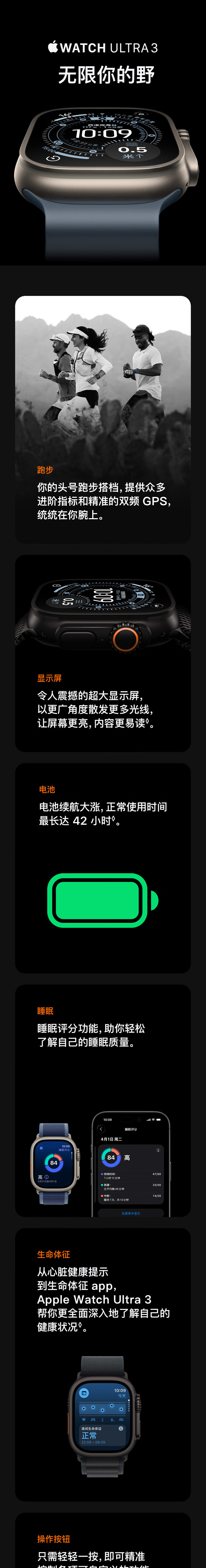 Apple/Apple Watch Ultra3 Smart Watch GPS+ Cellular Model 49mm Primary Color Titanium Case Iron Anchor Blue Ocean Strap-China Unicom Subsidy