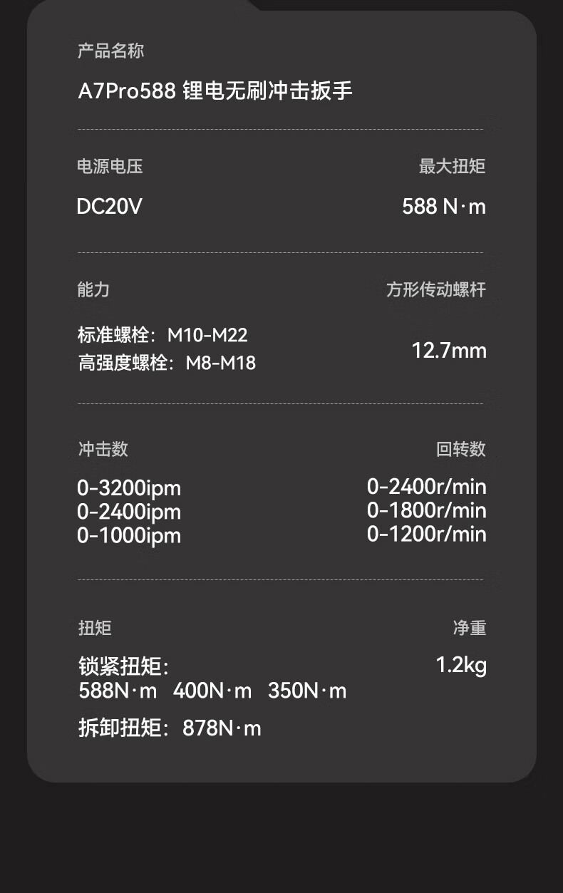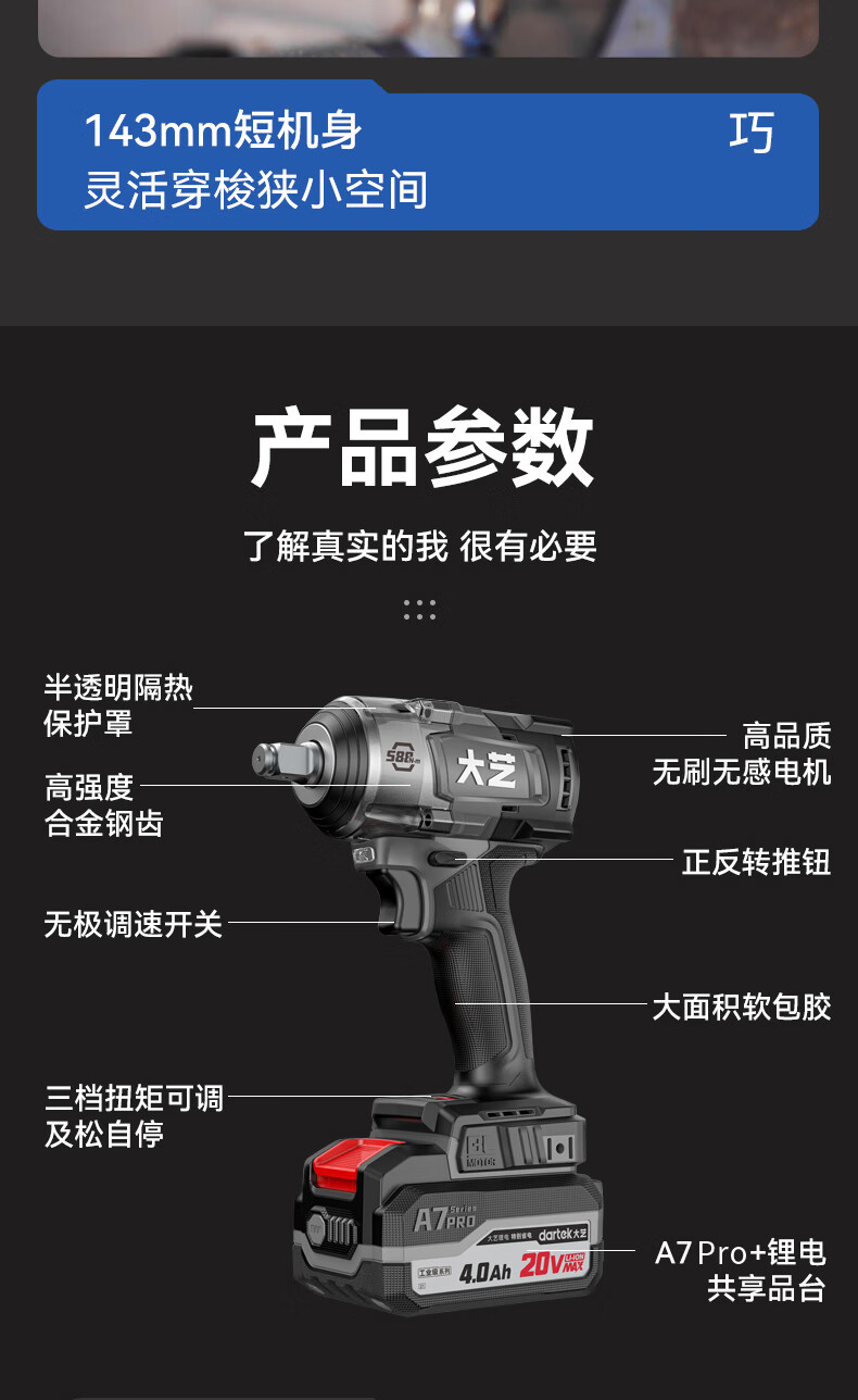 Dayi Electric Wrench High Torque A7Pro588 Lithium Brushless 20V Impact Charging Wrench Jingdong Self-operated Flagship Store