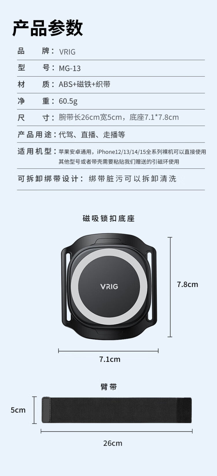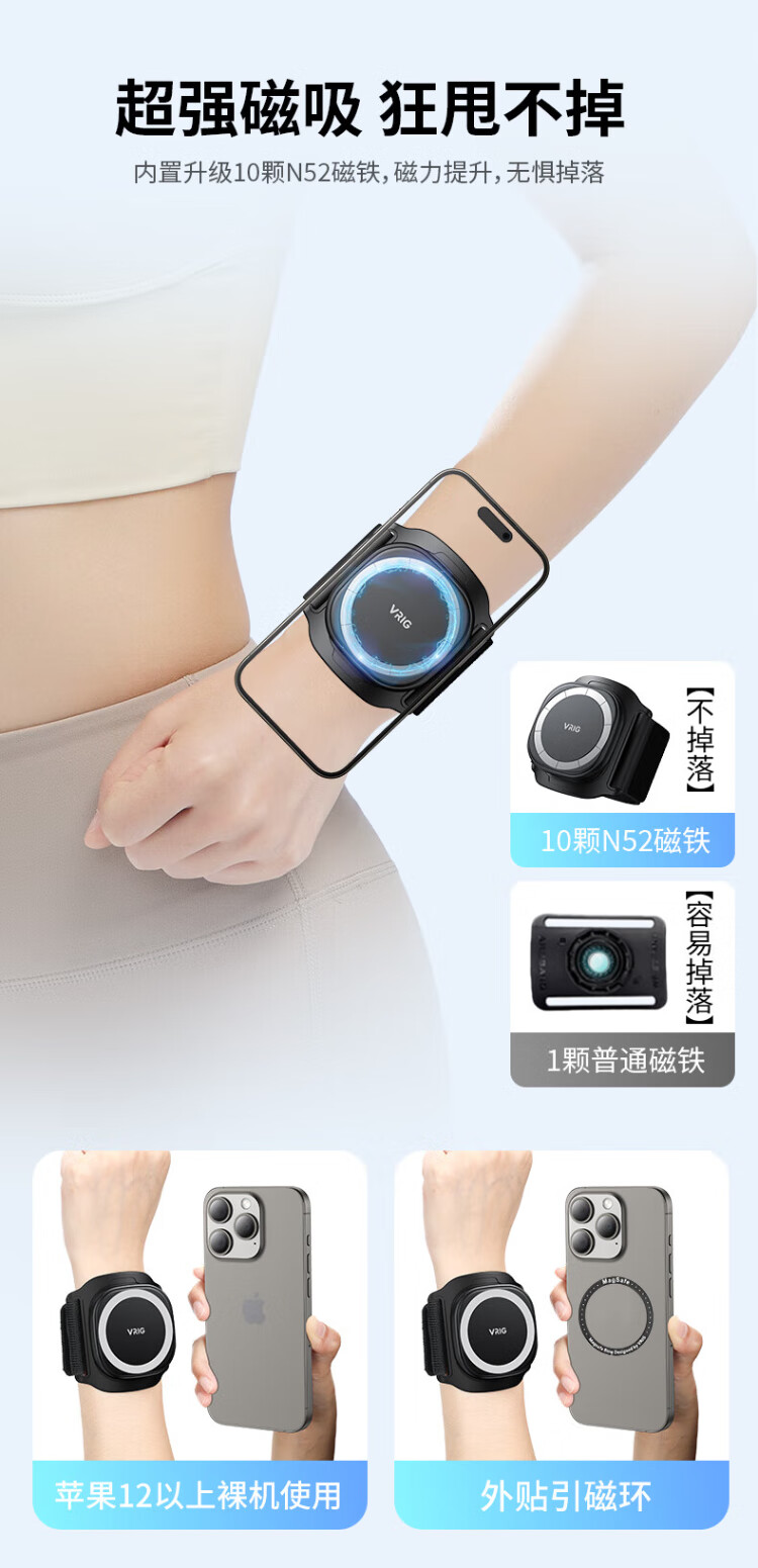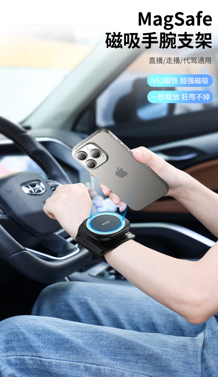VRIG MG-13 magnetic wrist holder Didi driving mobile phone holder MagSafe wrist strap holder driver navigation mobile phone holder Internet celebrity live broadcast hand holder equipment