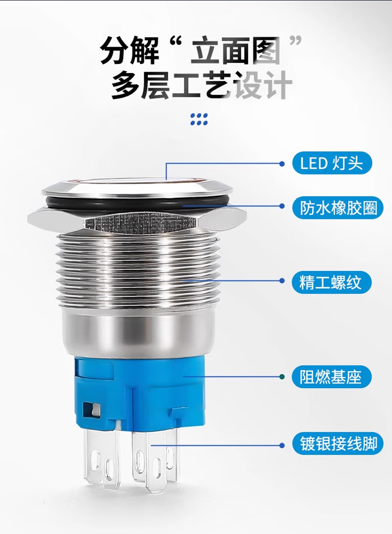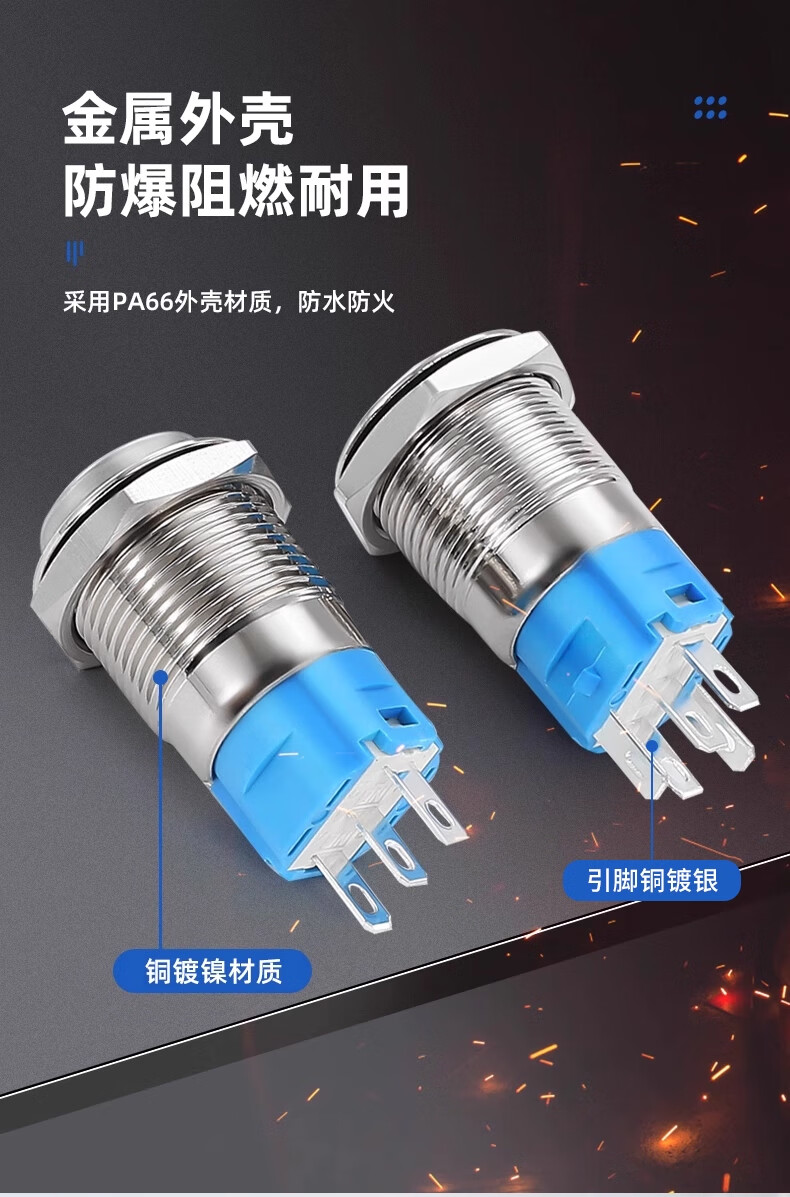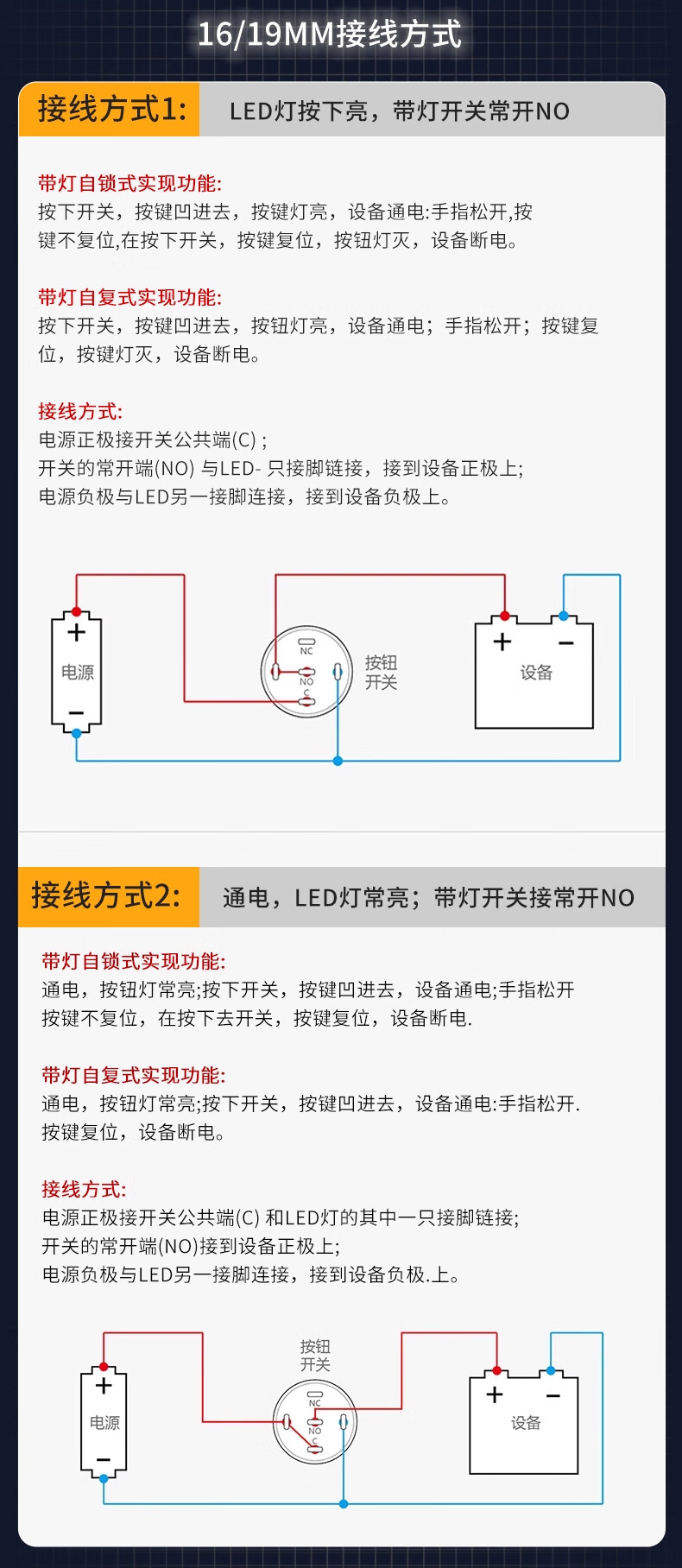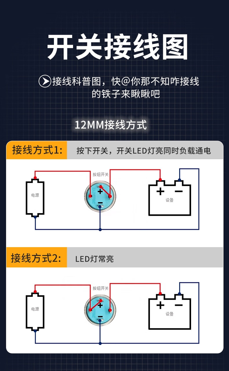 ZAVE metal button switch 19MM flat head power green light 12-24V with wire self-locking