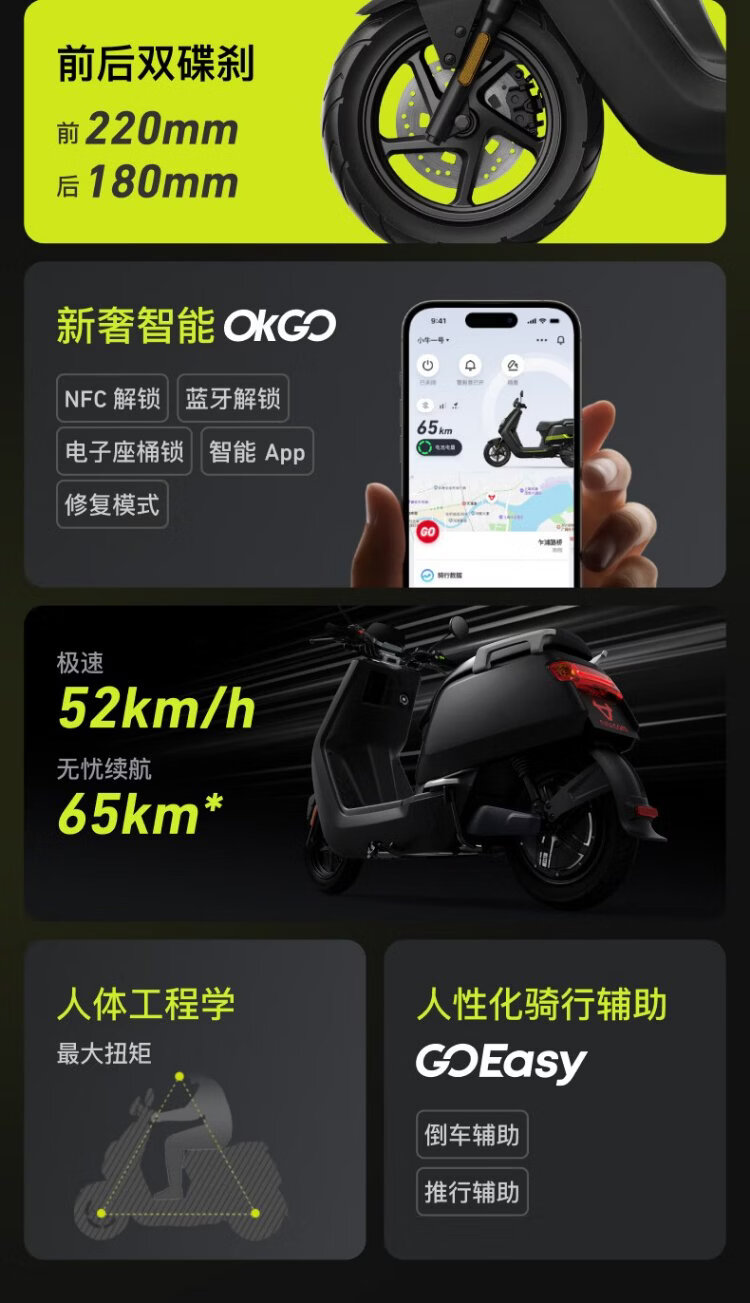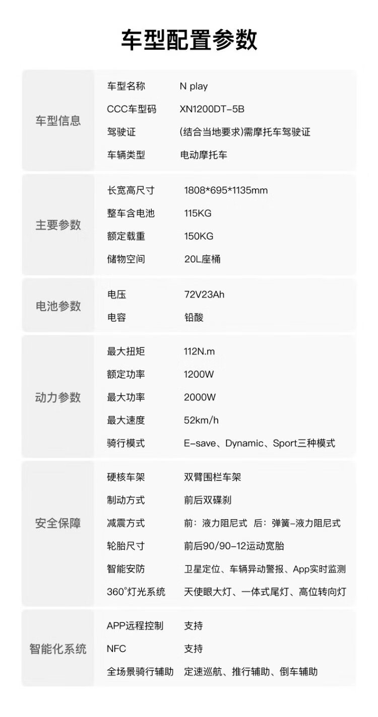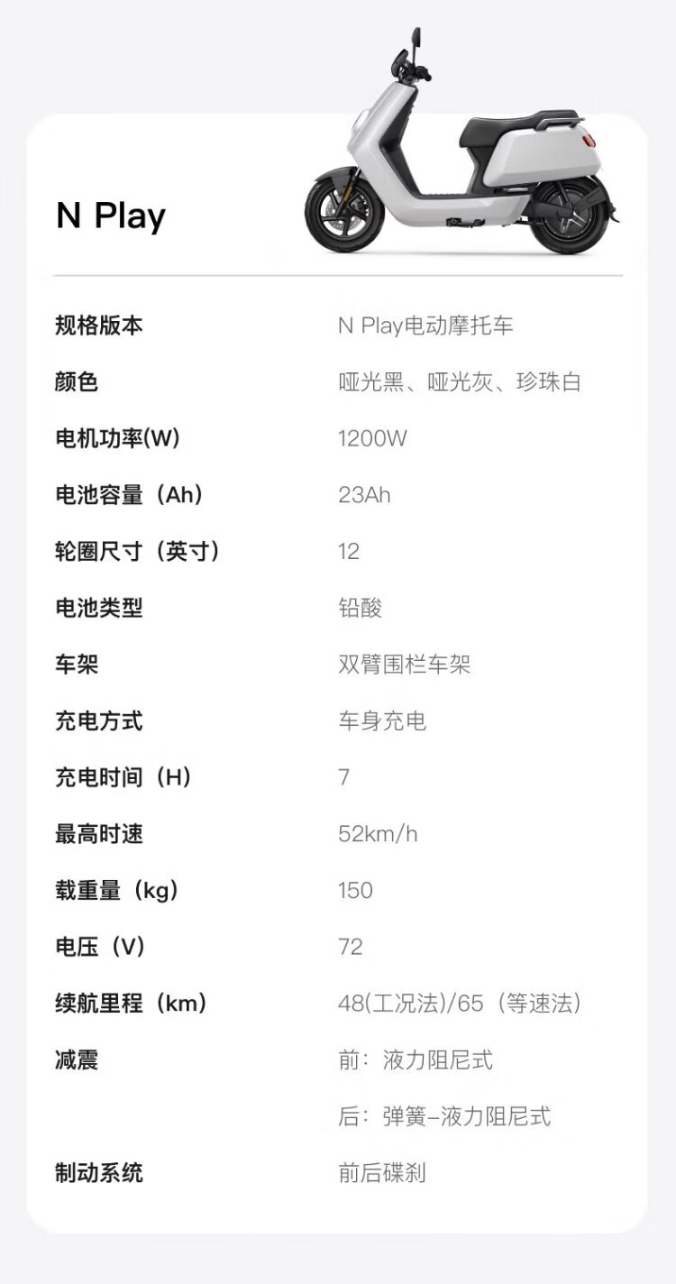 XIAONIU NPlay electric motorcycle lead-acid battery, smart long-range commuting scooter, complete vehicle delivered to home - no service fee N1S Pearl White