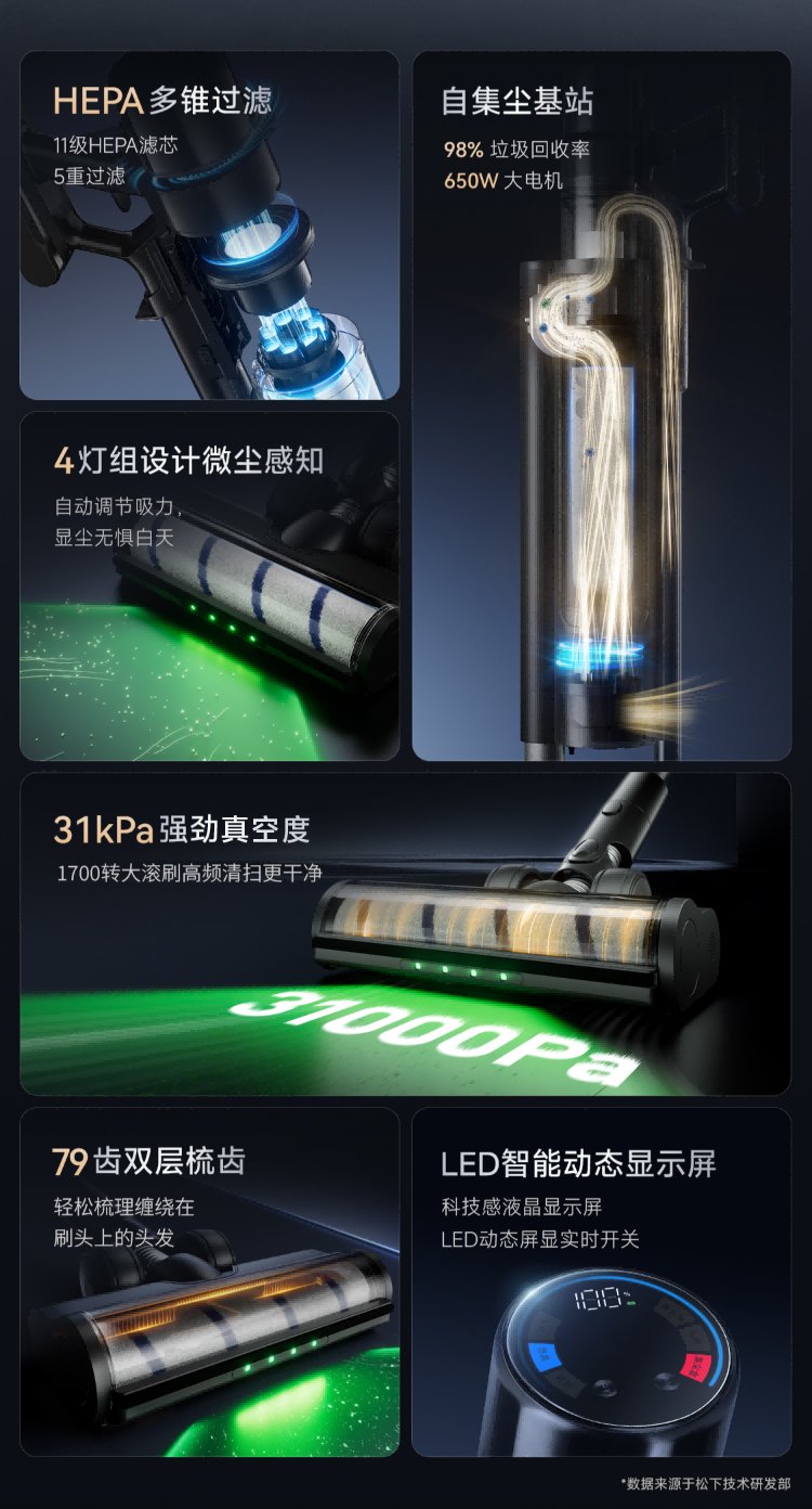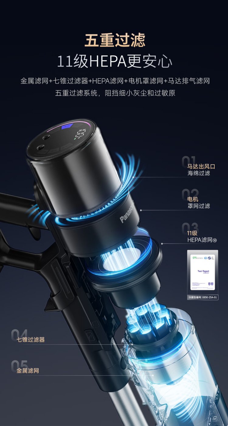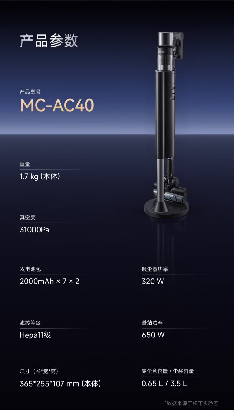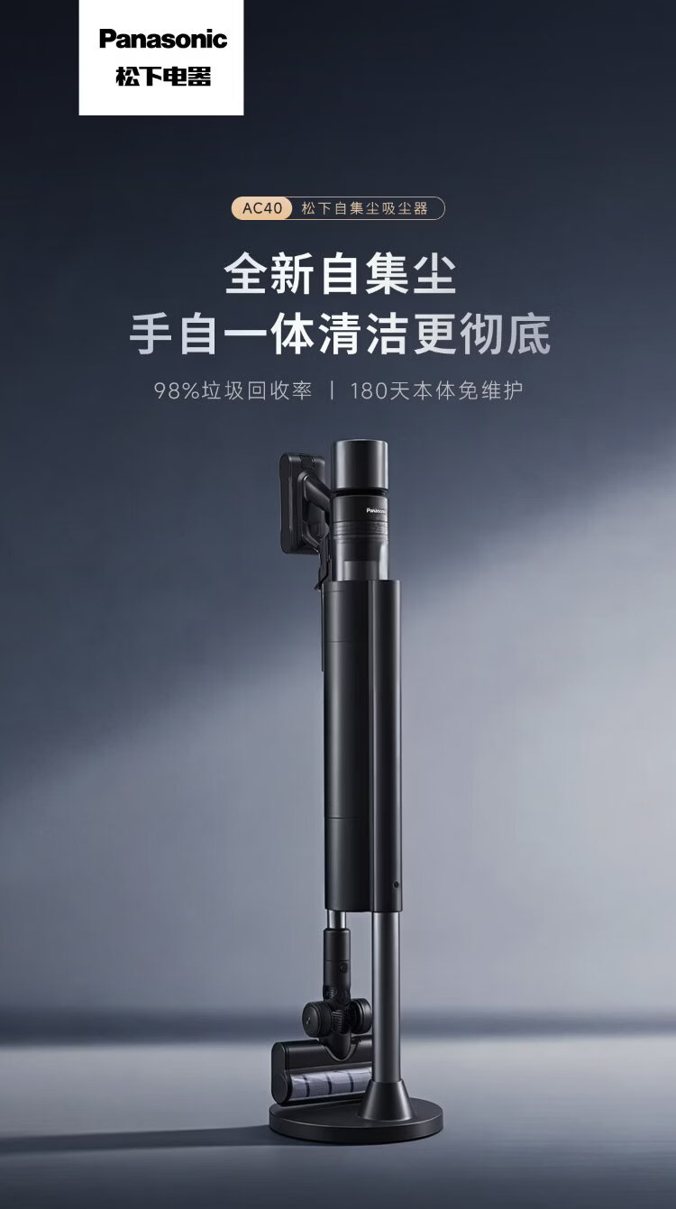 Panasonic dust removal artifact automatic dust collection vacuum cleaner household large suction wireless handheld cat and dog hair suction green light display dust MC-AC40K 90-day base station free of trash