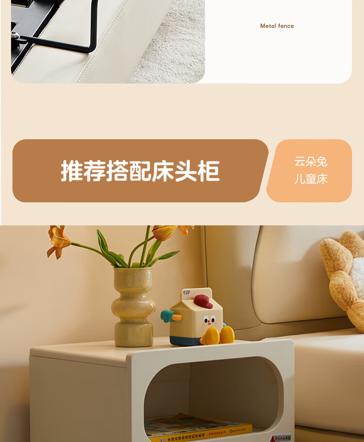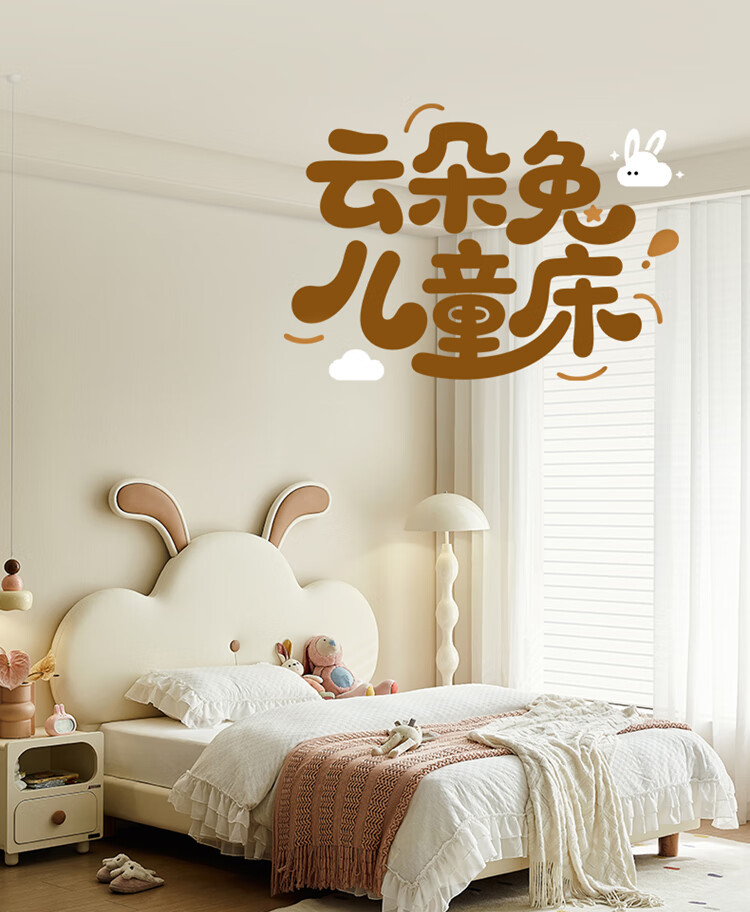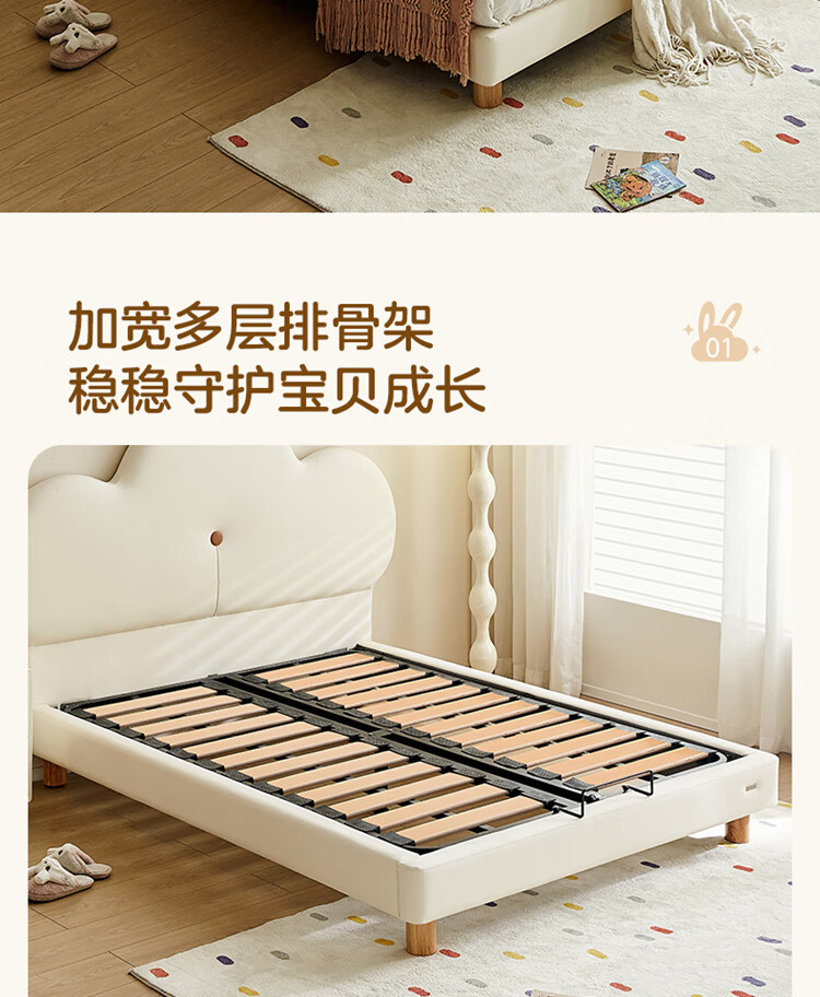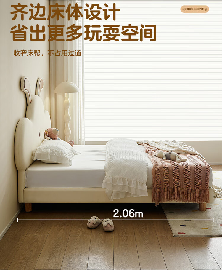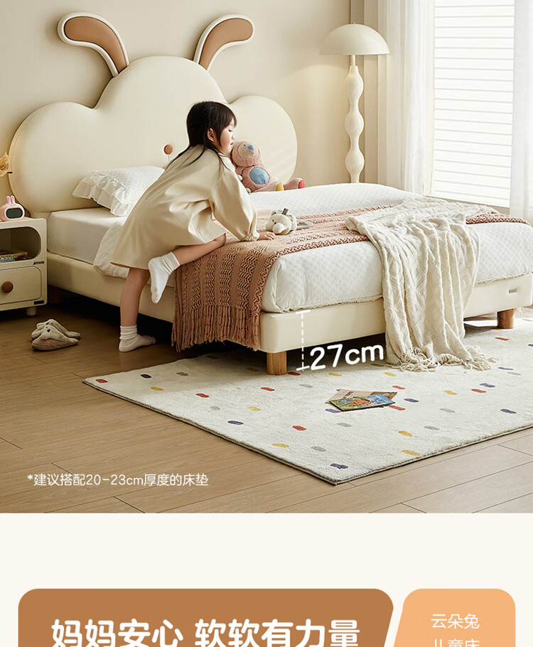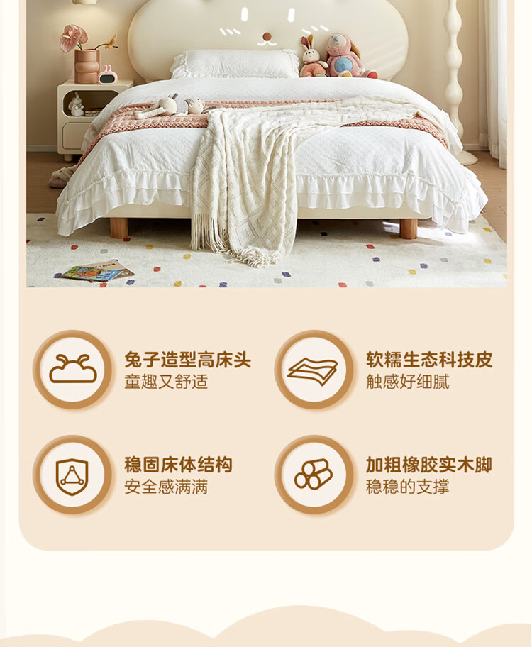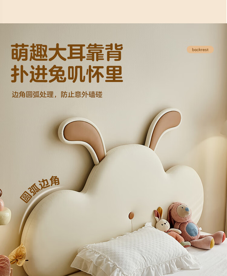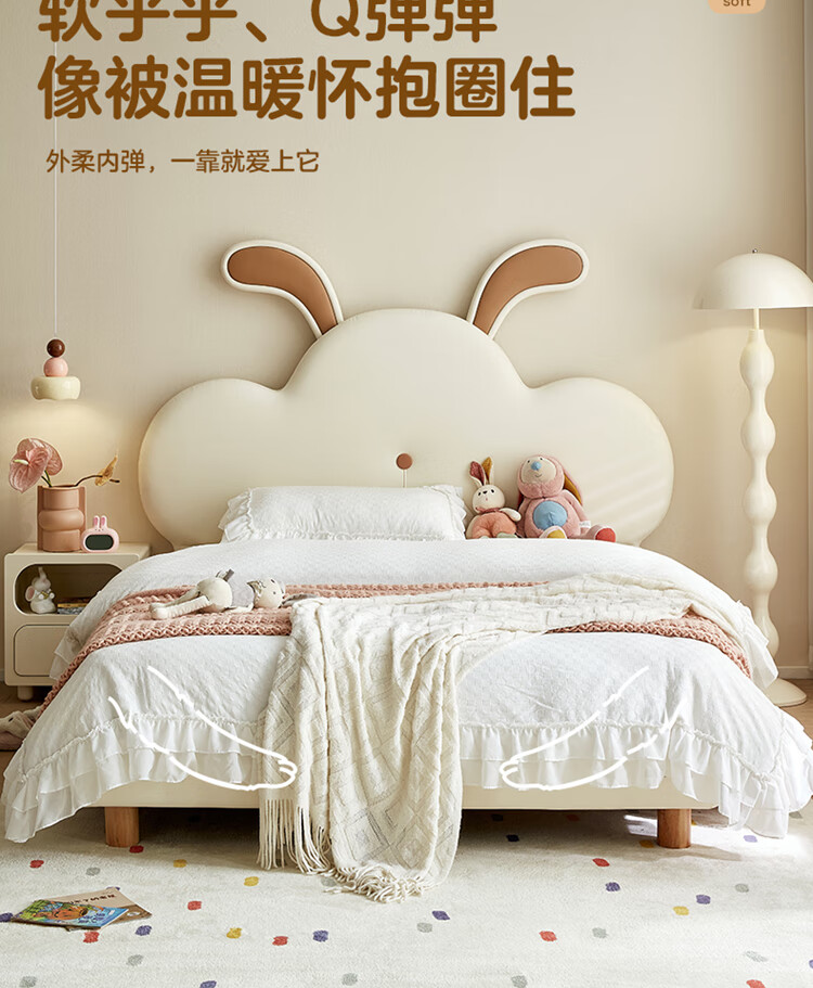 Quanyou Home Cream Style Soft Backrest Children's Bed Girls' 1.5m x 2m Small Apartment Second Bedroom Single Bed Princess Bed