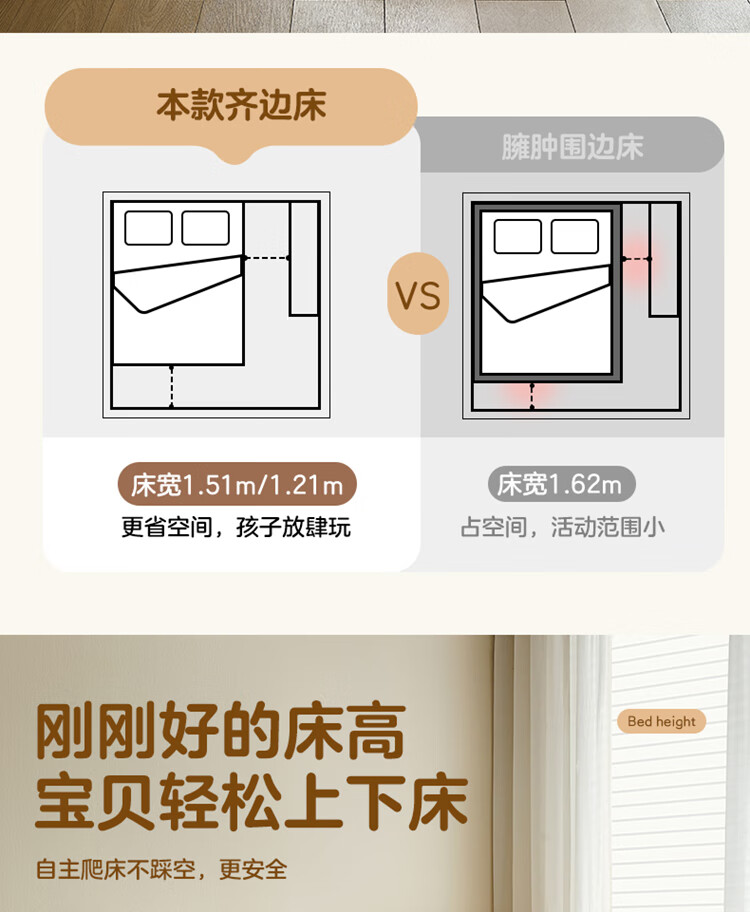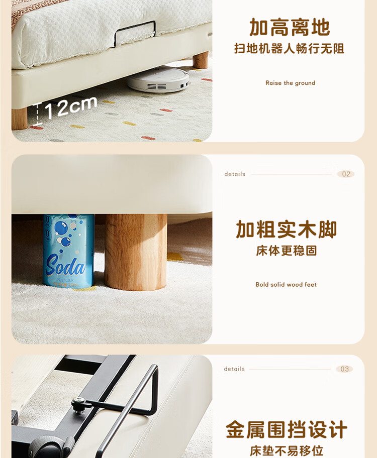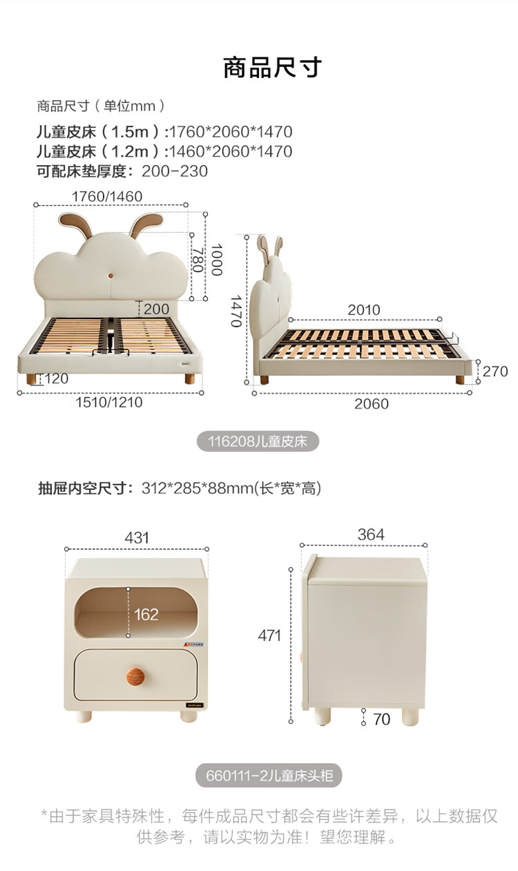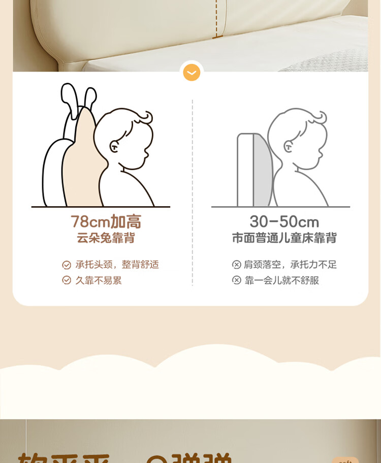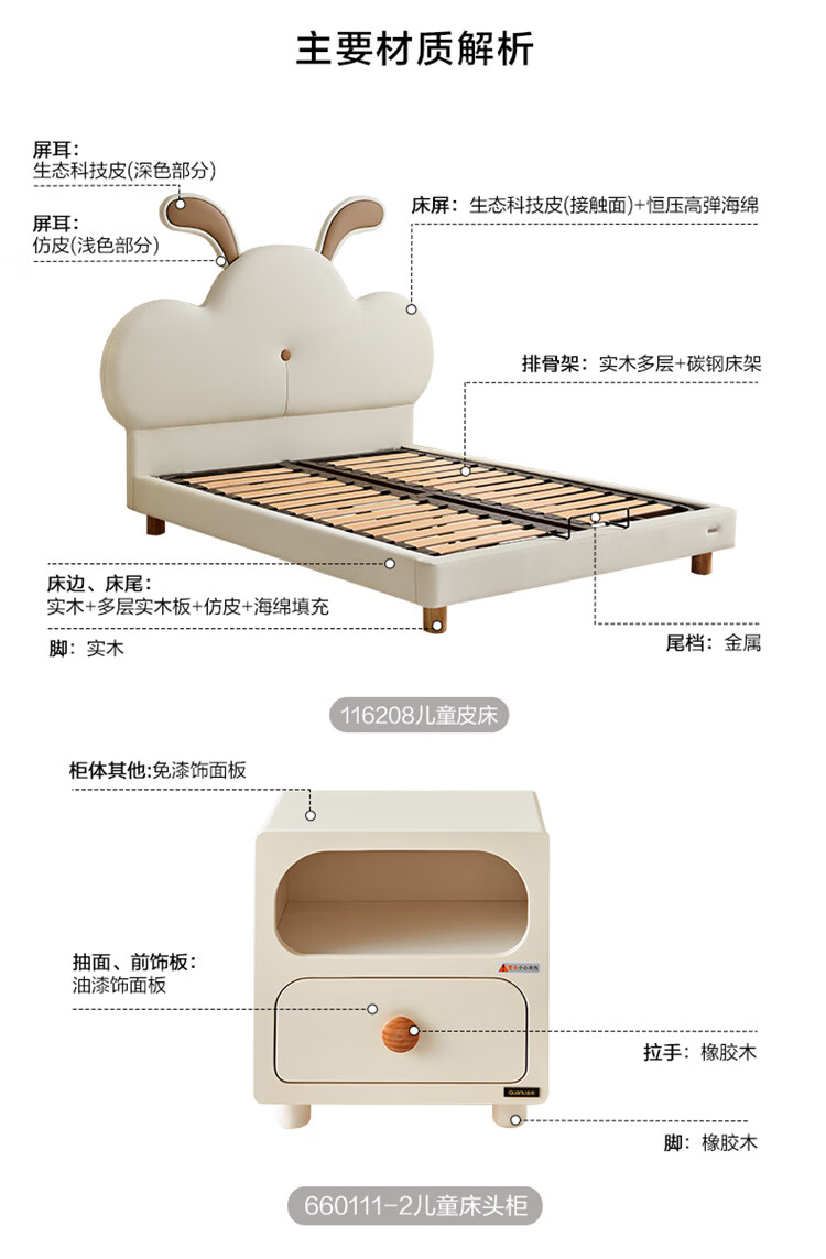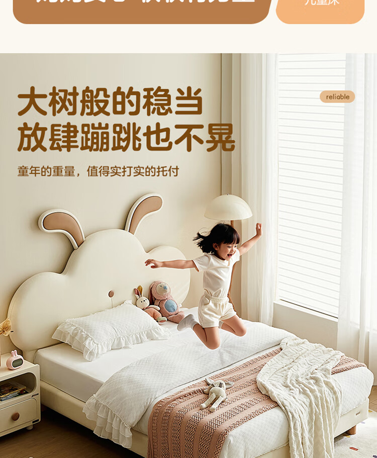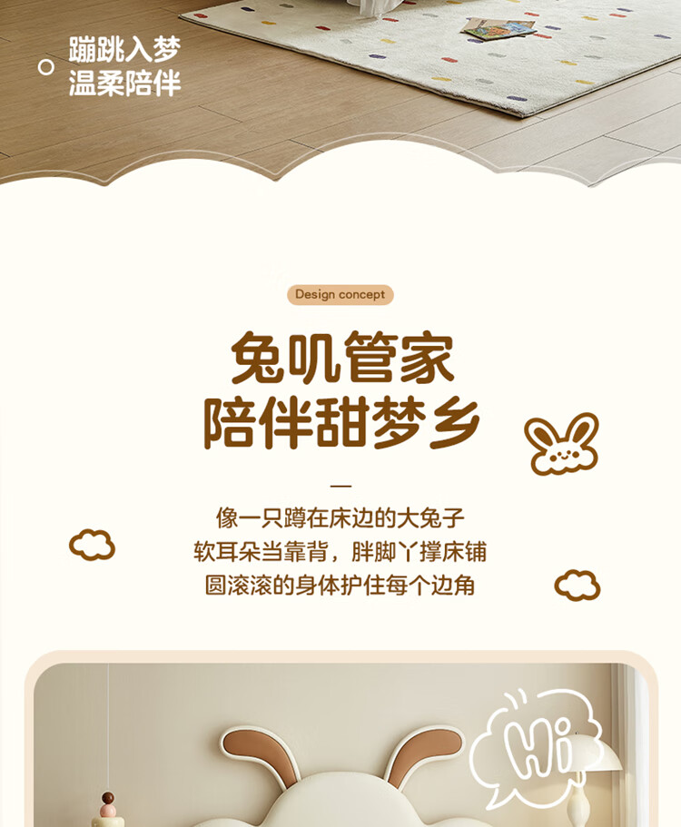 Quanyou Home Cream Style Soft Backrest Children's Bed Girls' 1.5m x 2m Small Apartment Second Bedroom Single Bed Princess Bed