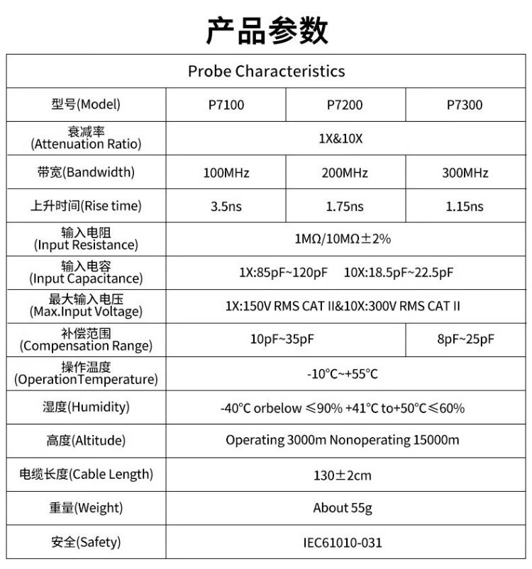 YPIO EER Pioneer YPIONEER oscilloscope probe P7100 bandwidth 100MHz attenuation 10X voltage 300V single package