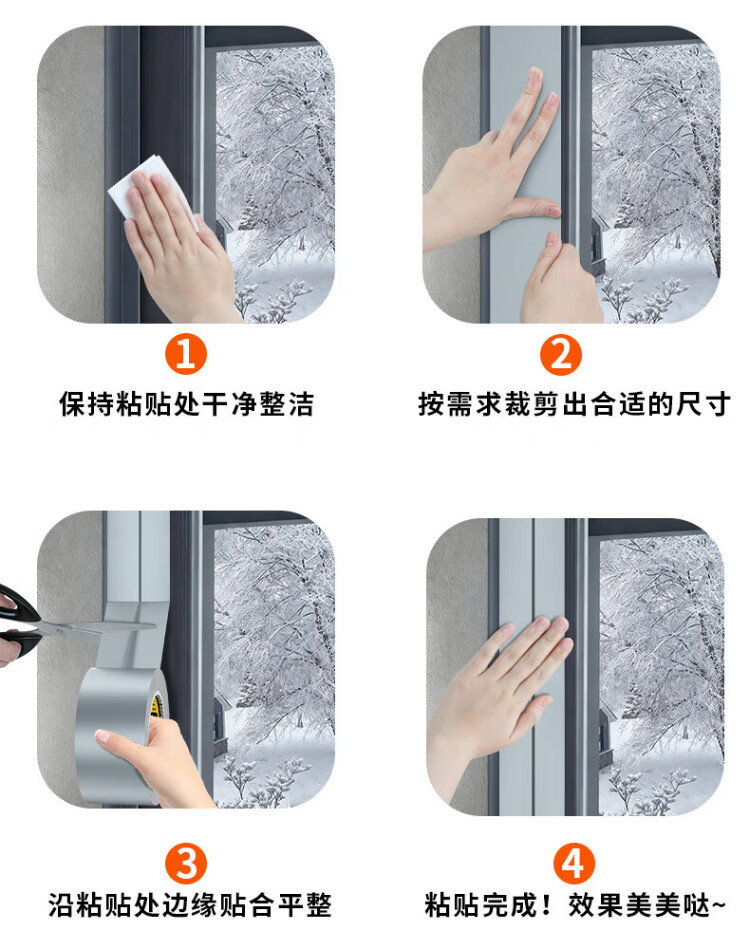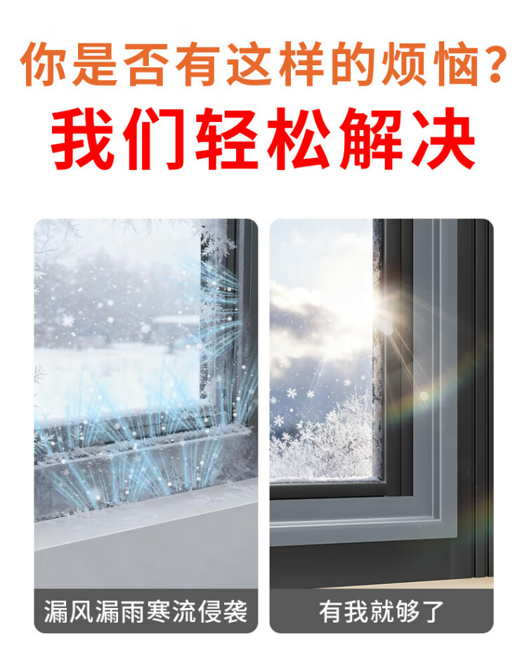Mileqi Windproof Tape for Doors and Windows Gap, No Glue Sealing Window Artifact, Winter Seal Strip, Anti-leak Wind Warm Film, Seamless Waterproof and Coldproof, 100mm wide*50m long, white, 1 roll