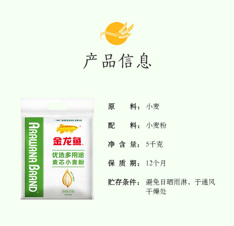 Arowana flour, medium-gluten flour, multi-purpose wheat core flour 10 catties, flour, household steamed buns, dumplings, steamed buns, hand-rolled noodles