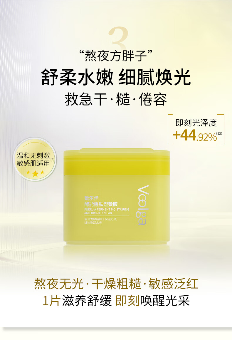 Fuljia Huang Fatty Trial Pack Enzyme Awakening Wet Mask 1 bag (contains 3 pieces) hydrating repair makeup pre-makeup pads