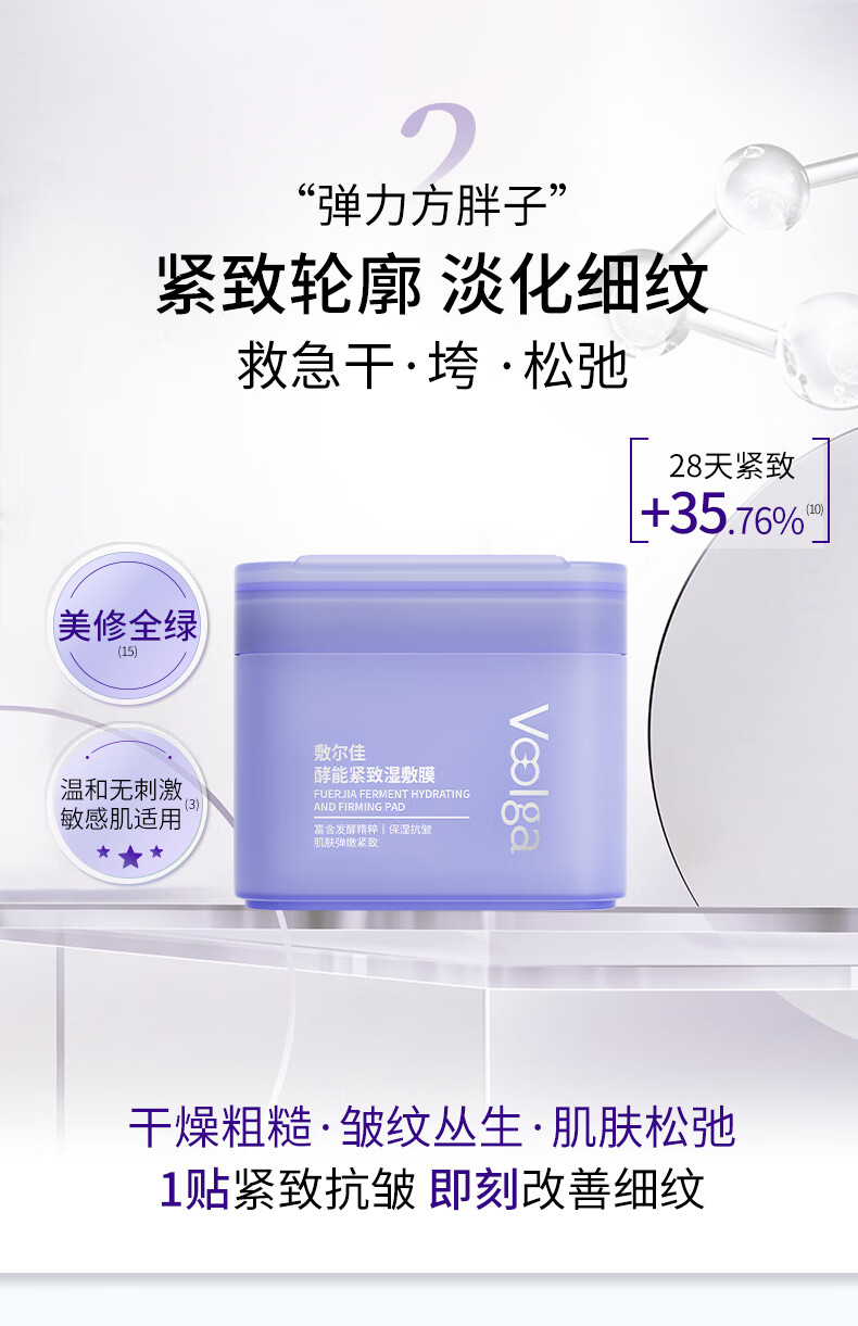 Fuljia Purple Fatty Trial Pack, Enzyme Firming Wet Mask 1 bag (contains 3 pieces), hydrating, repairing and makeup pre-makeup pads