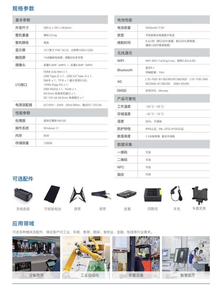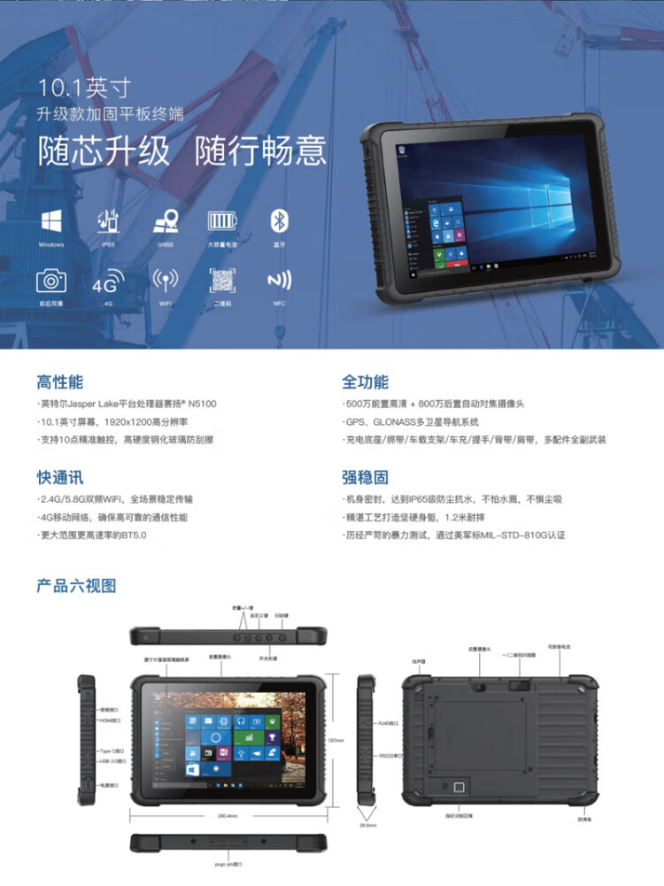 Yidao EM-I16J 10.1-inch win11 industrial tablet computer windows11 three-proof tablet computer mes industrial control tablet computer car tablet