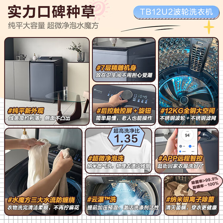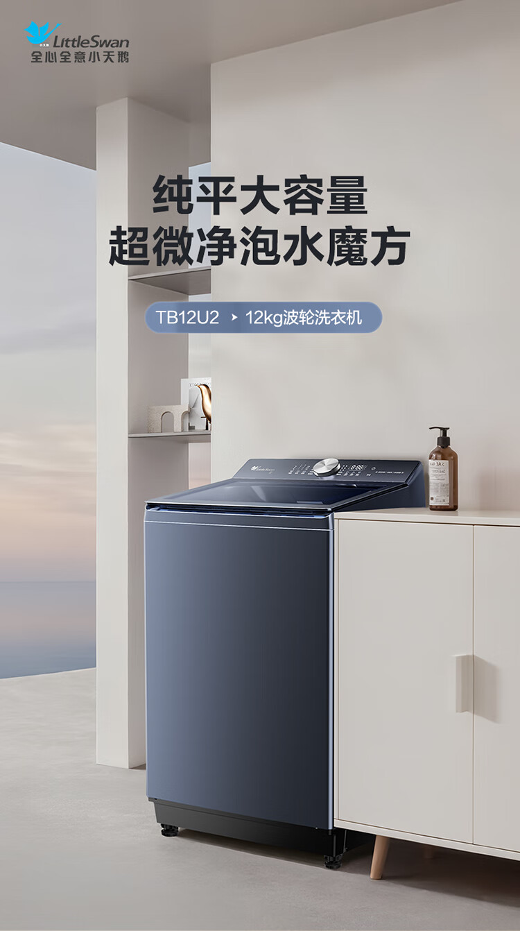 LittleSwan pulsator washing machine fully automatic household 12KG large capacity flat screen water magic cube anti-winding ultra-fine bubble cleaner TB12U2 trade-in national subsidy JD.com self-operated